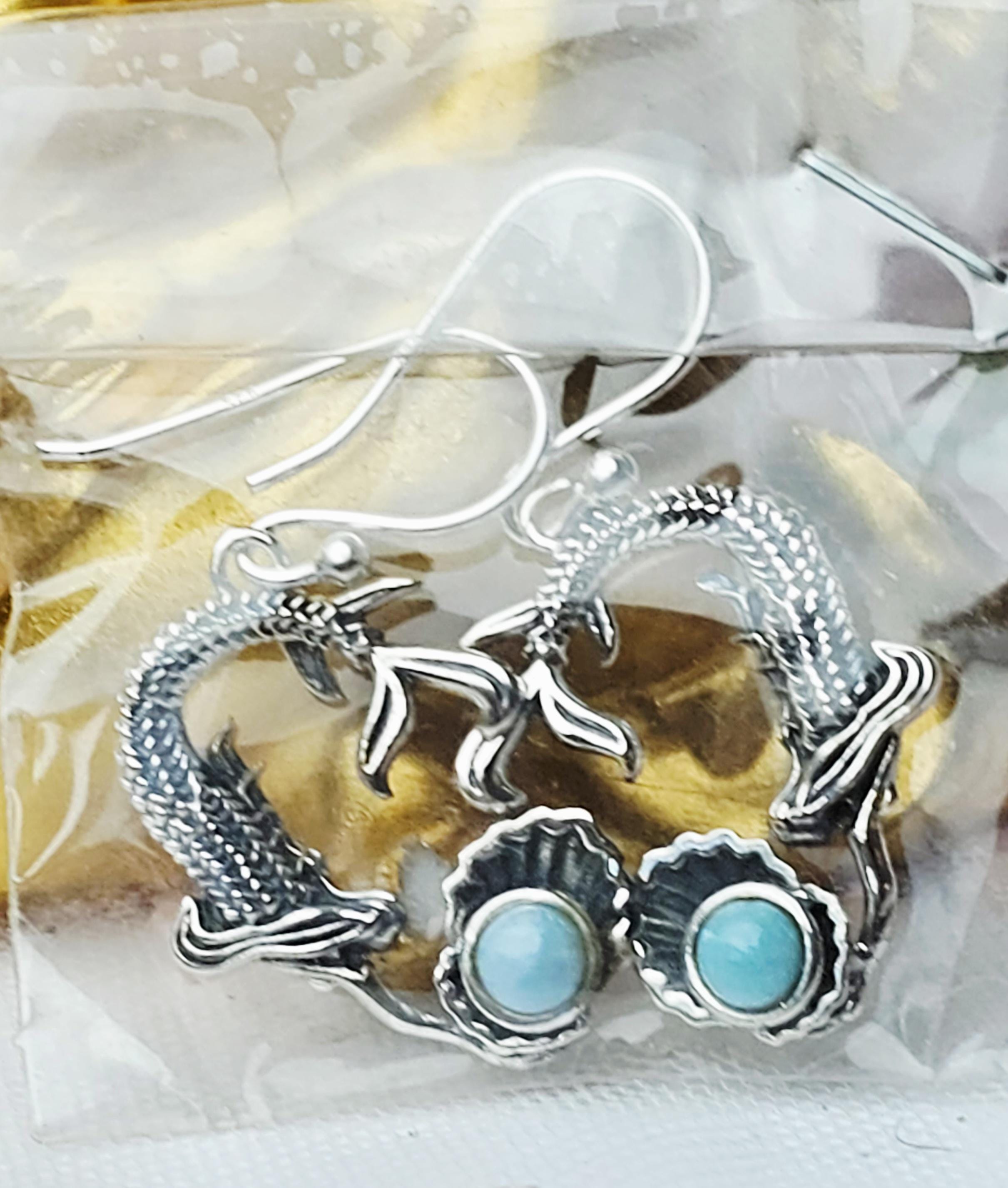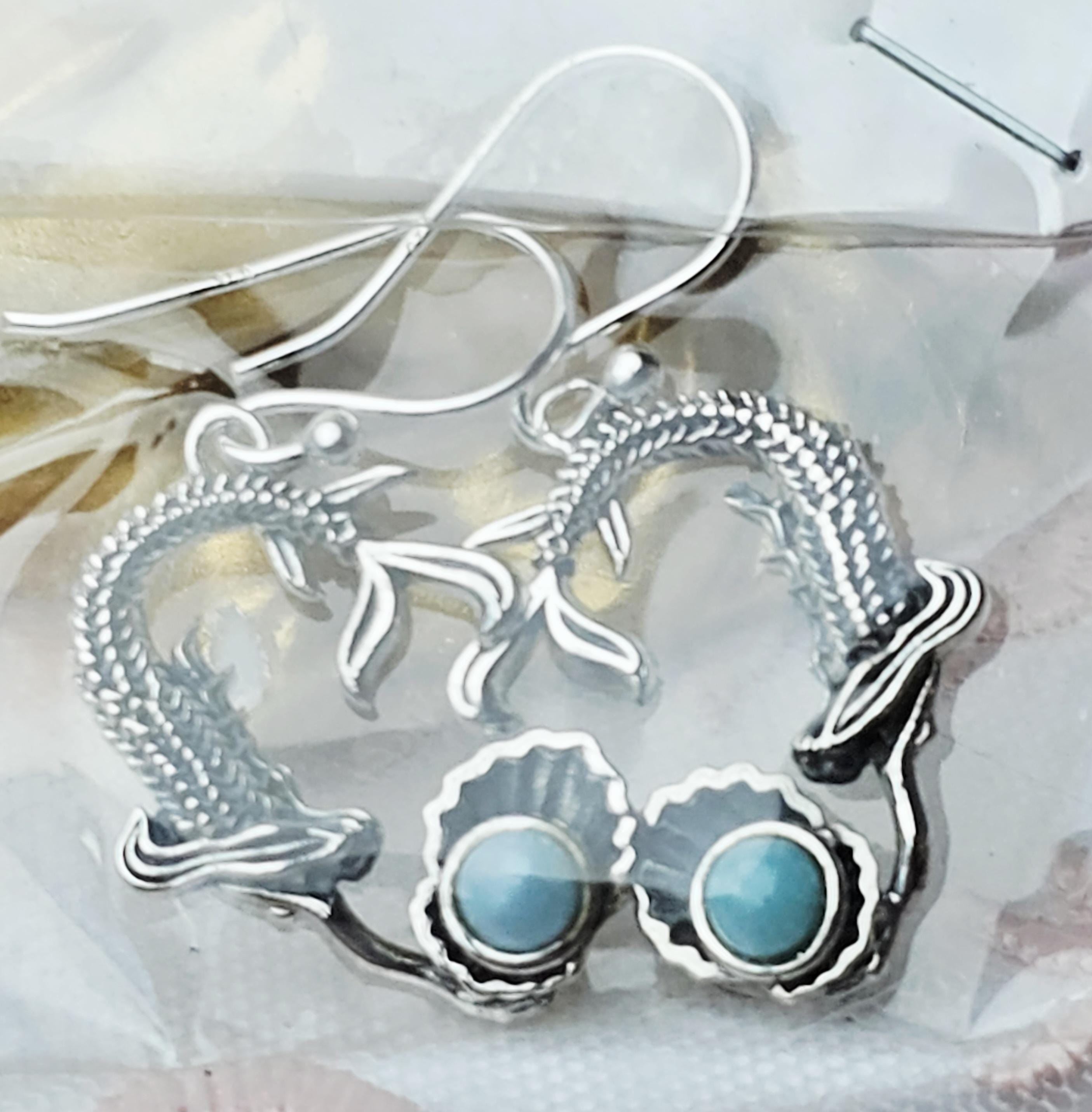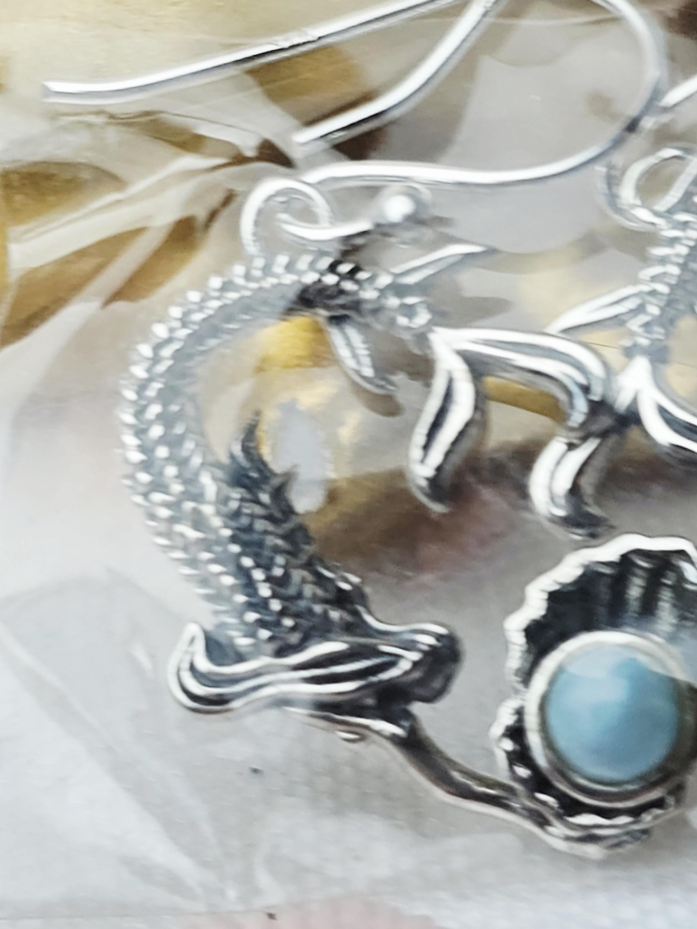 Handmade Larimar Mermaid Earrings, , Natural Larimar Stone, From Dominican Republic, Mermaid Pendant