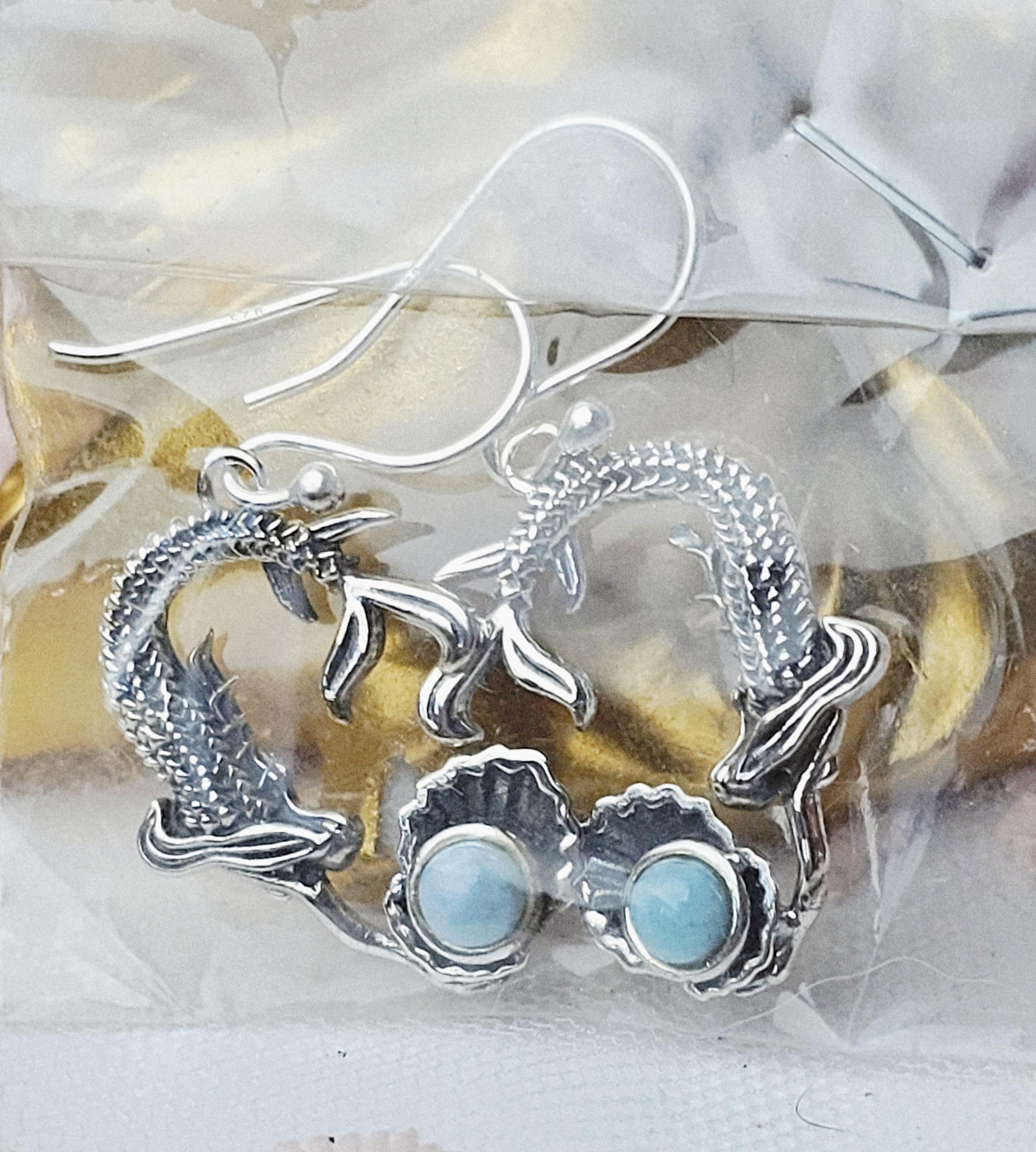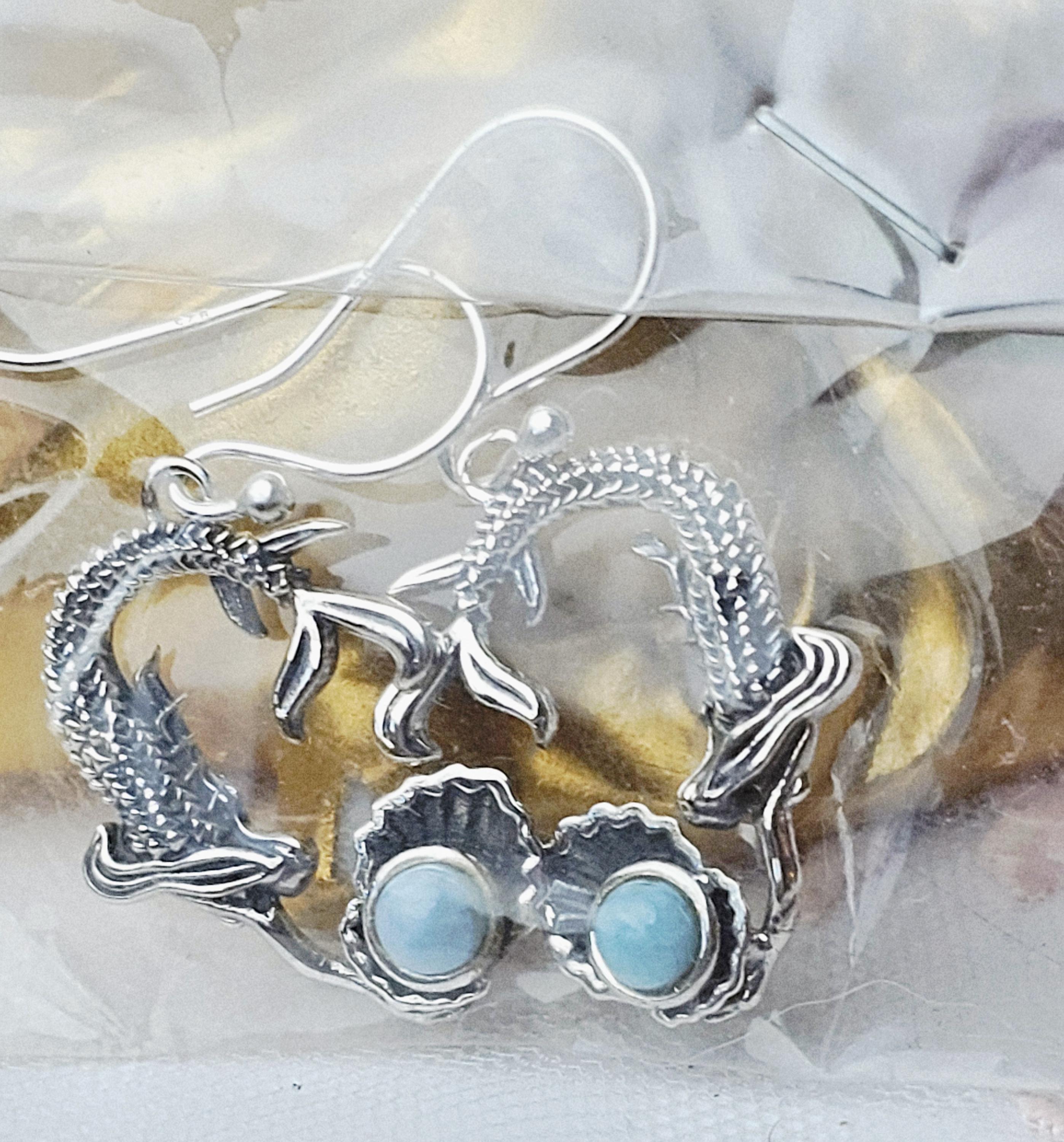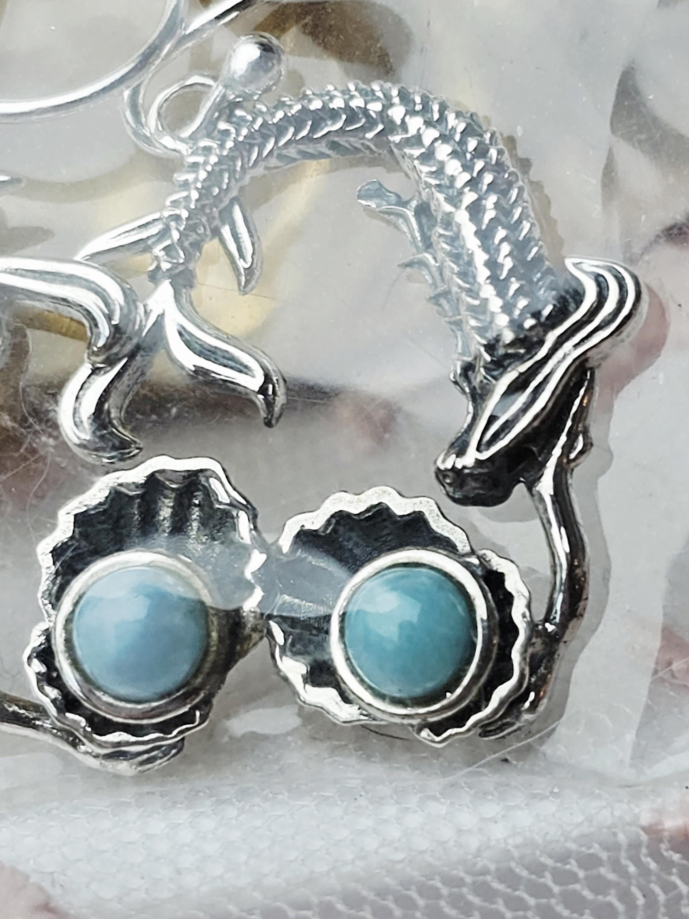 Handmade Larimar Mermaid Earrings, , Natural Larimar Stone, From Dominican Republic, Mermaid Pendant