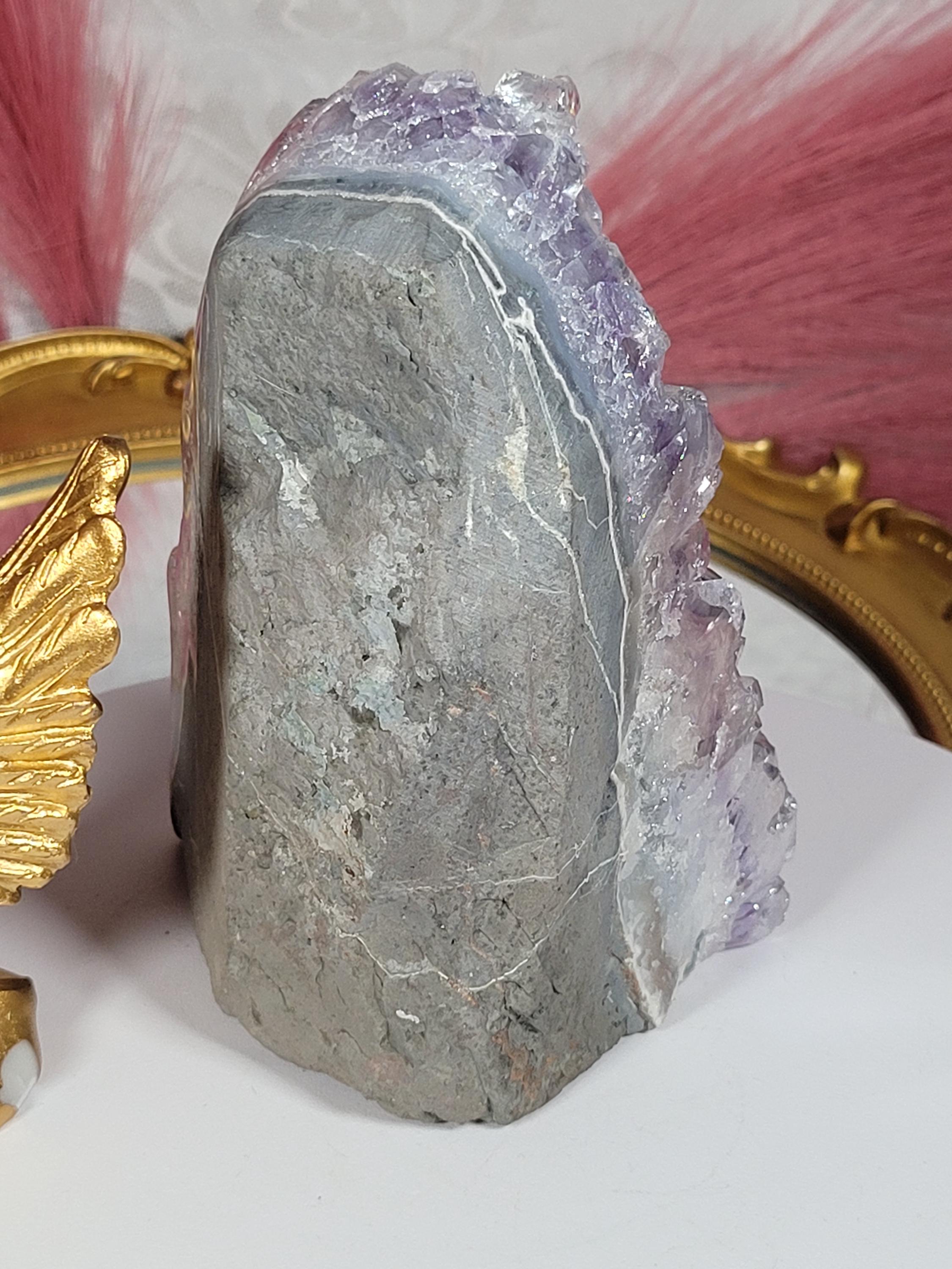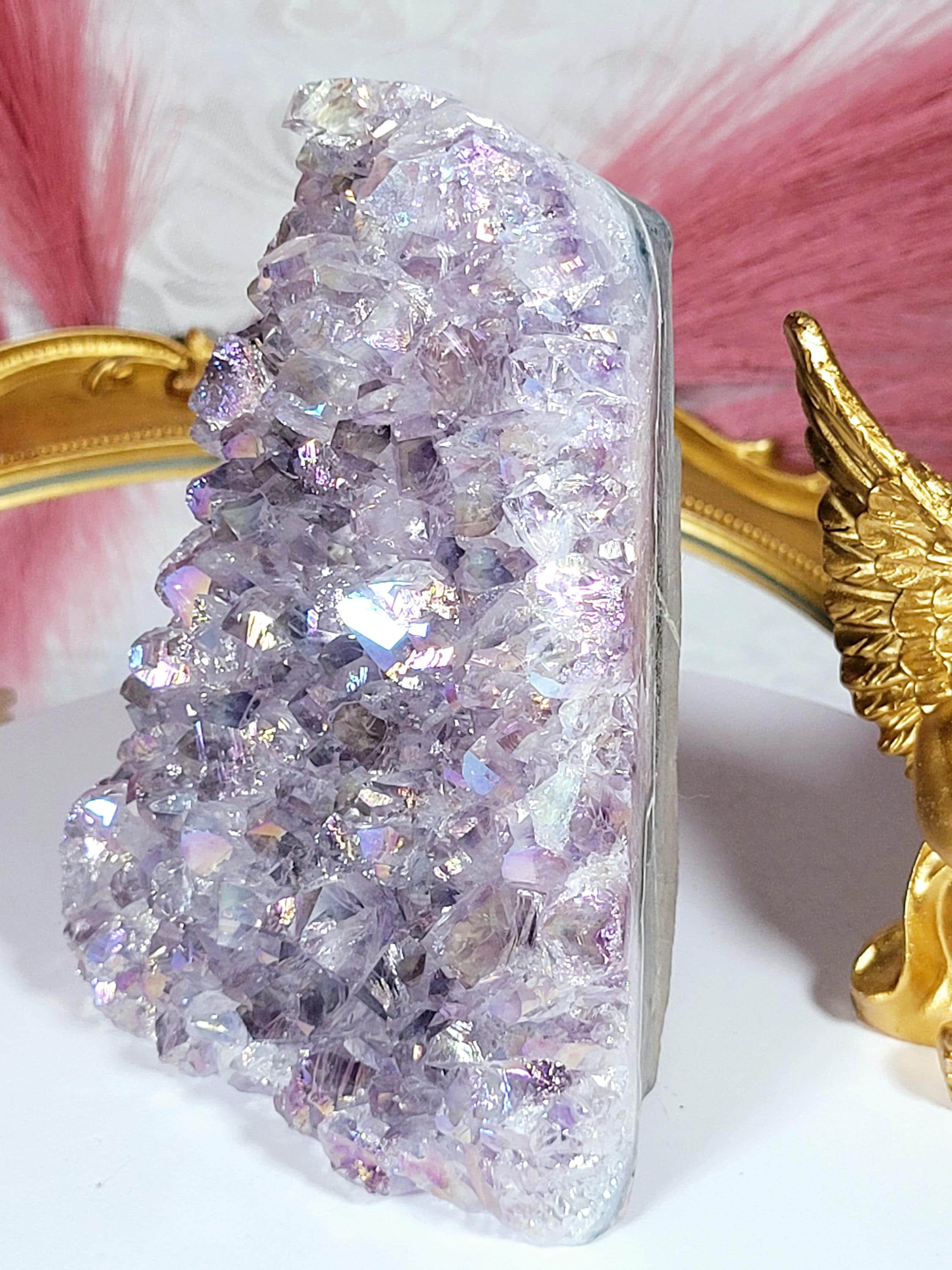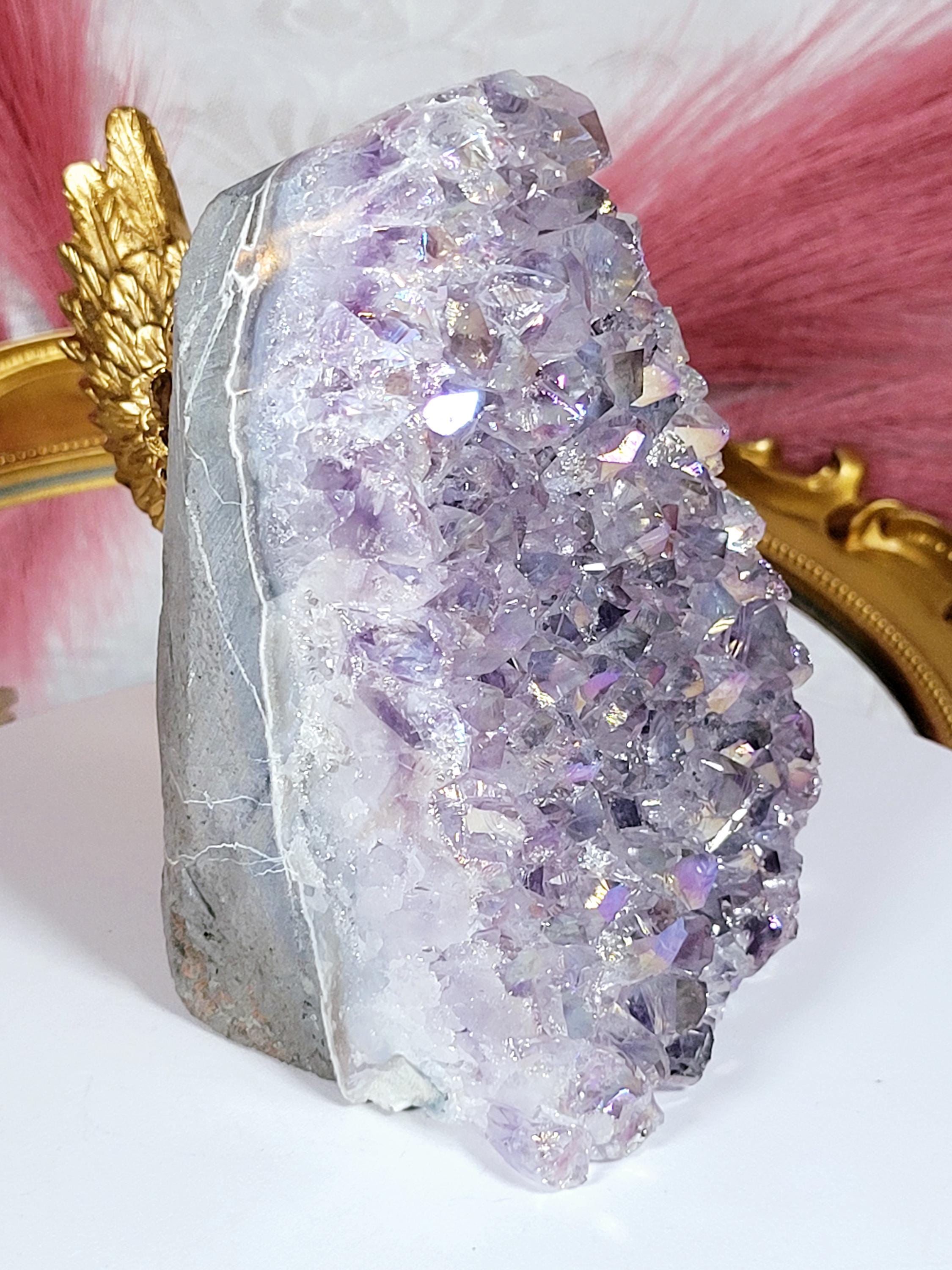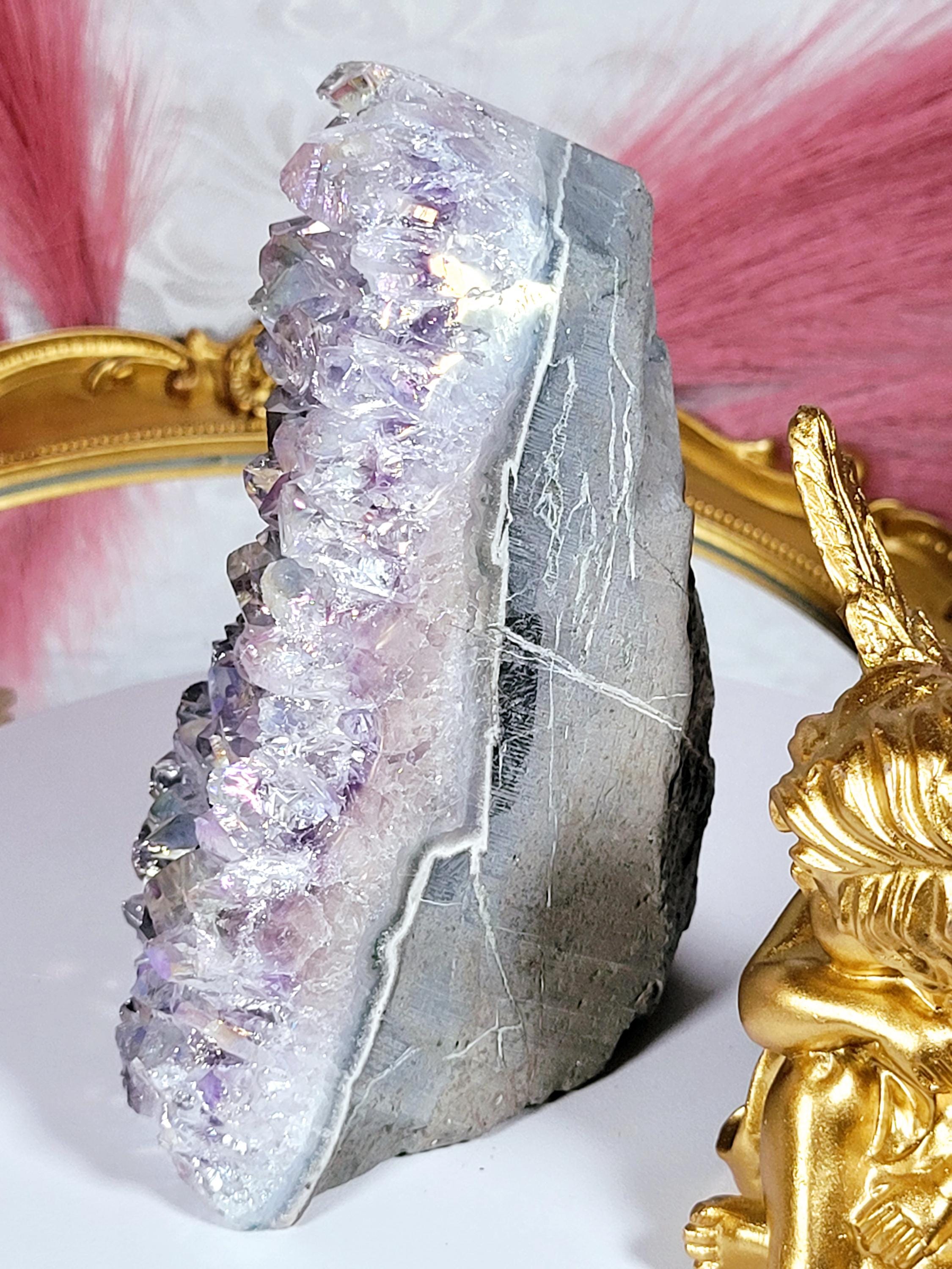 Angel Aura Amethyst Statement Piece with beautiful rainbows throughtout.