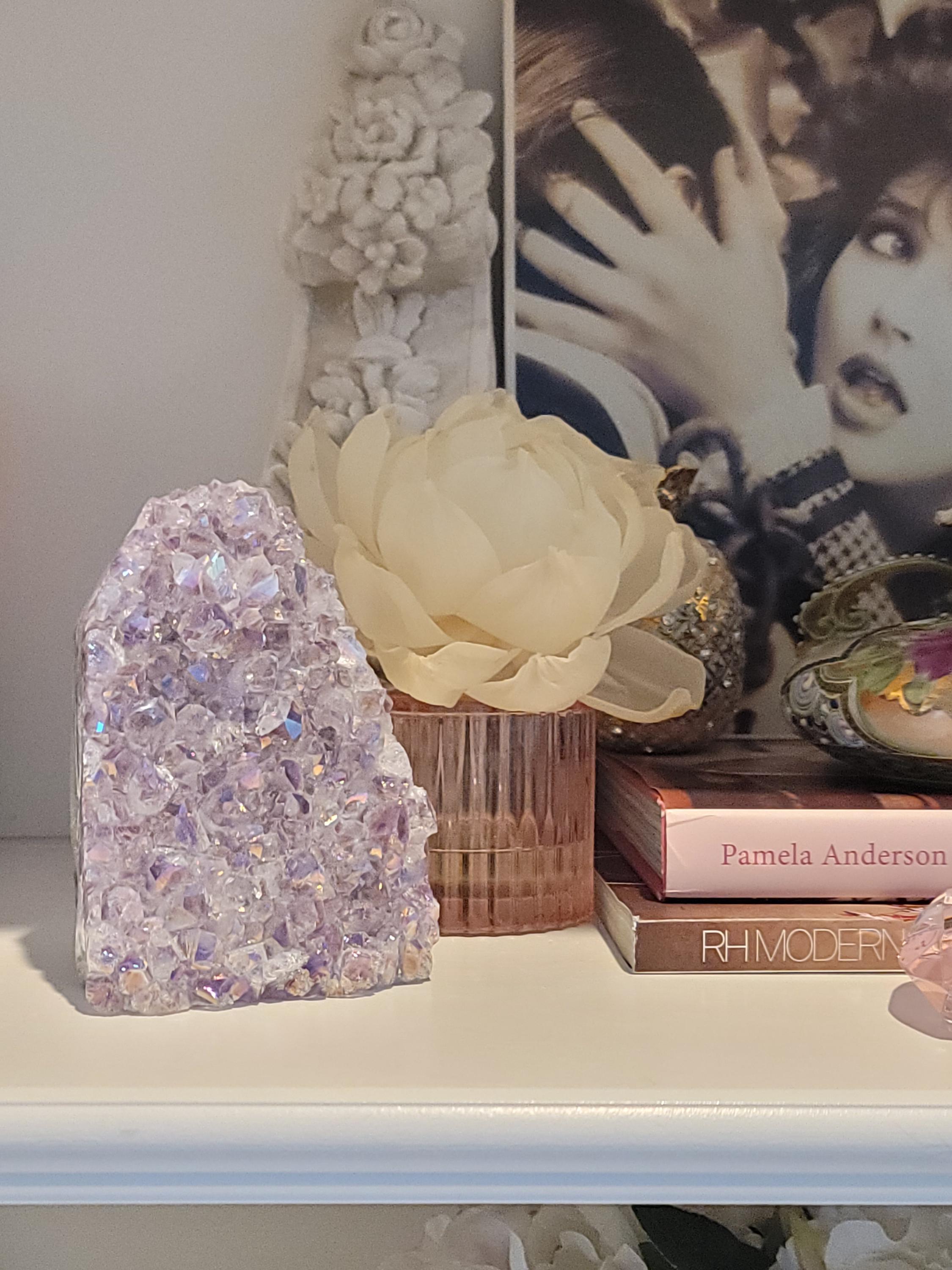 It fills the home with peaceful energy. It's a lavender delight. This powerful crystal is a wonderful gift for everyone on every occasion. Great for Shabby Chic Decor or romantic designs.