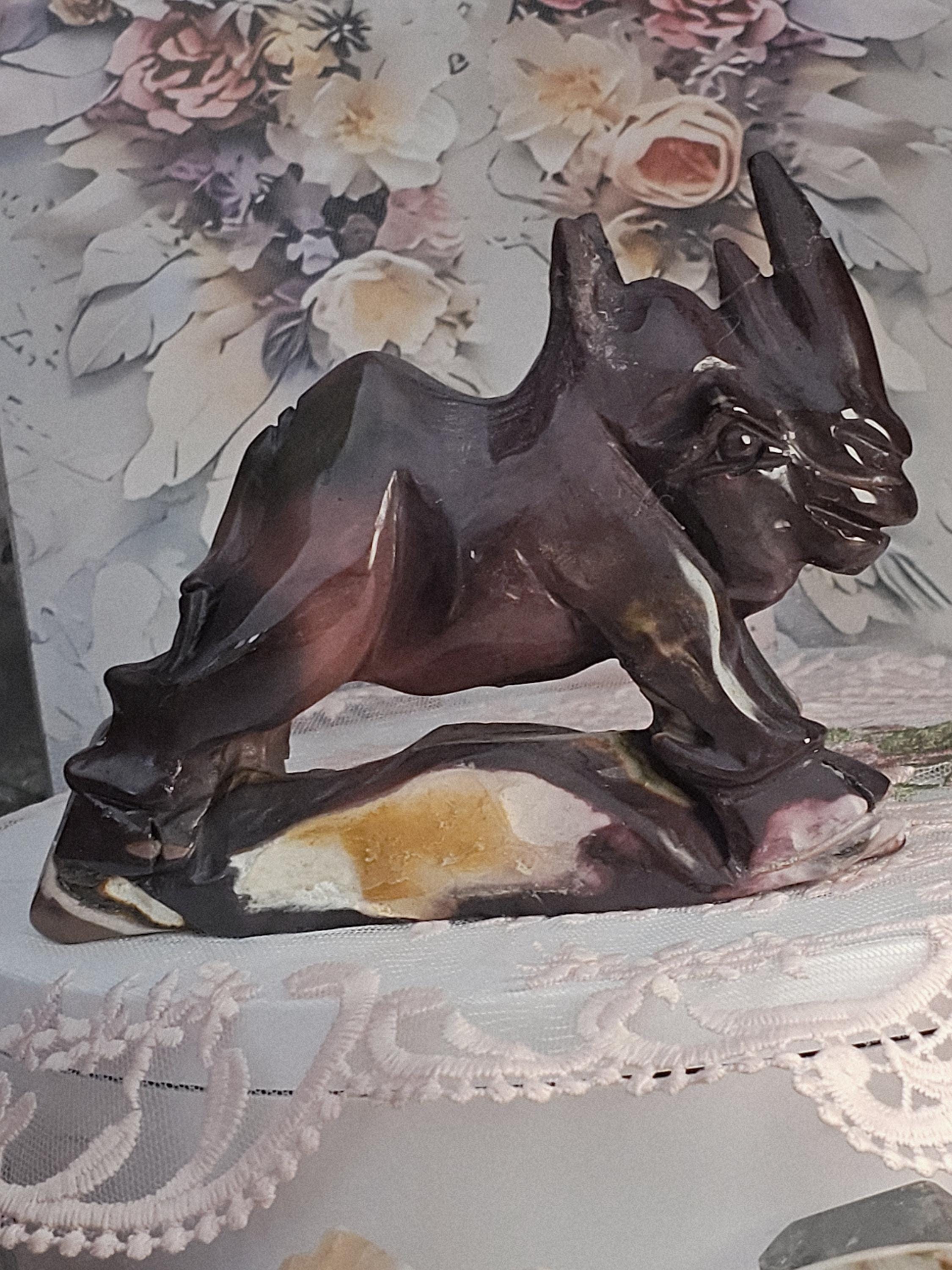 Gorgeous, colorful purple Mookaite Rhino with uniwue patterns of color. This sculpture is a great healing crystal with a peaceful yet powerful vibration.