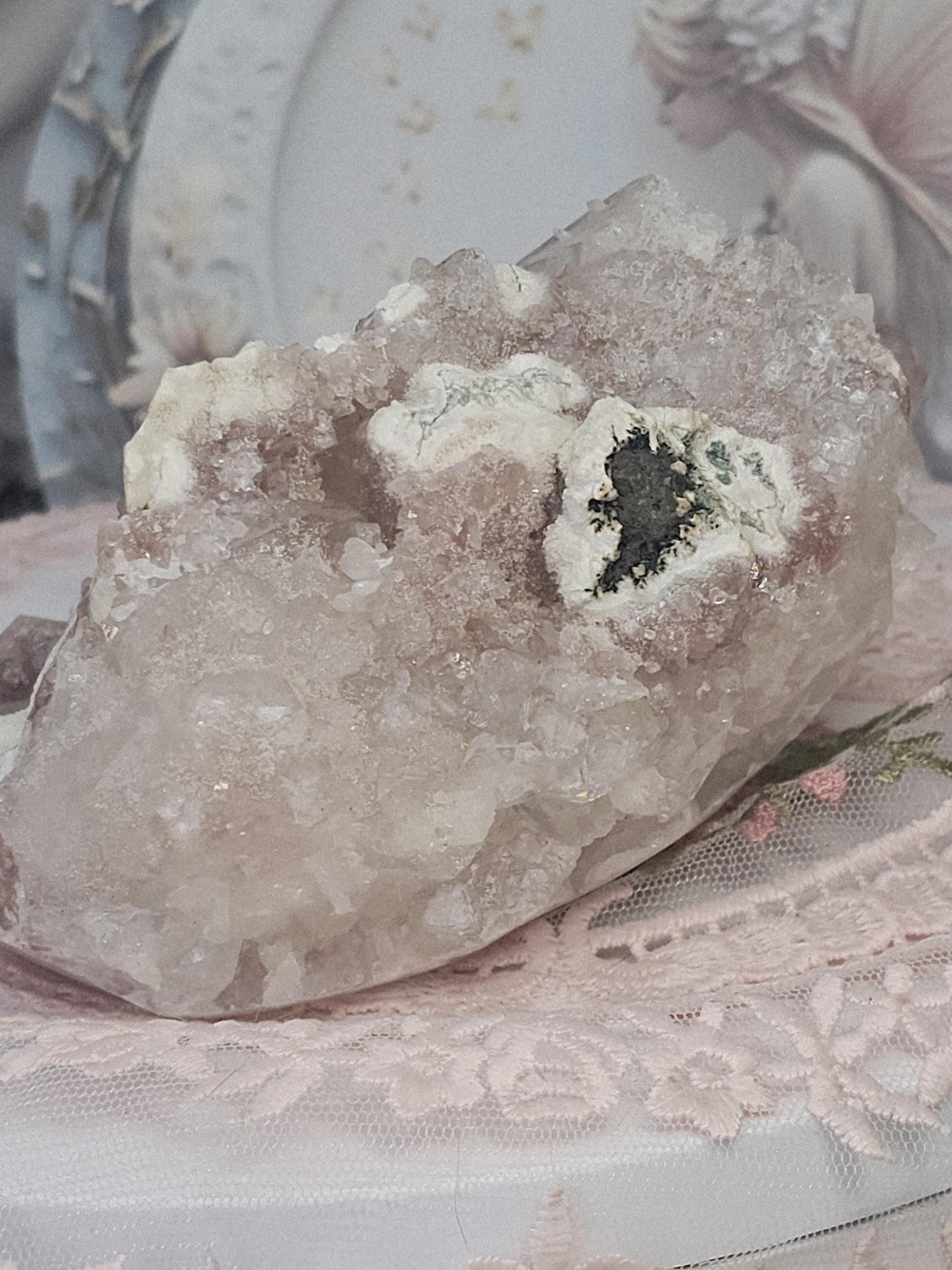 RARE Pink Sugar Apophyllite with Stillbite from India , Apophyllite, Crystal, Crystal