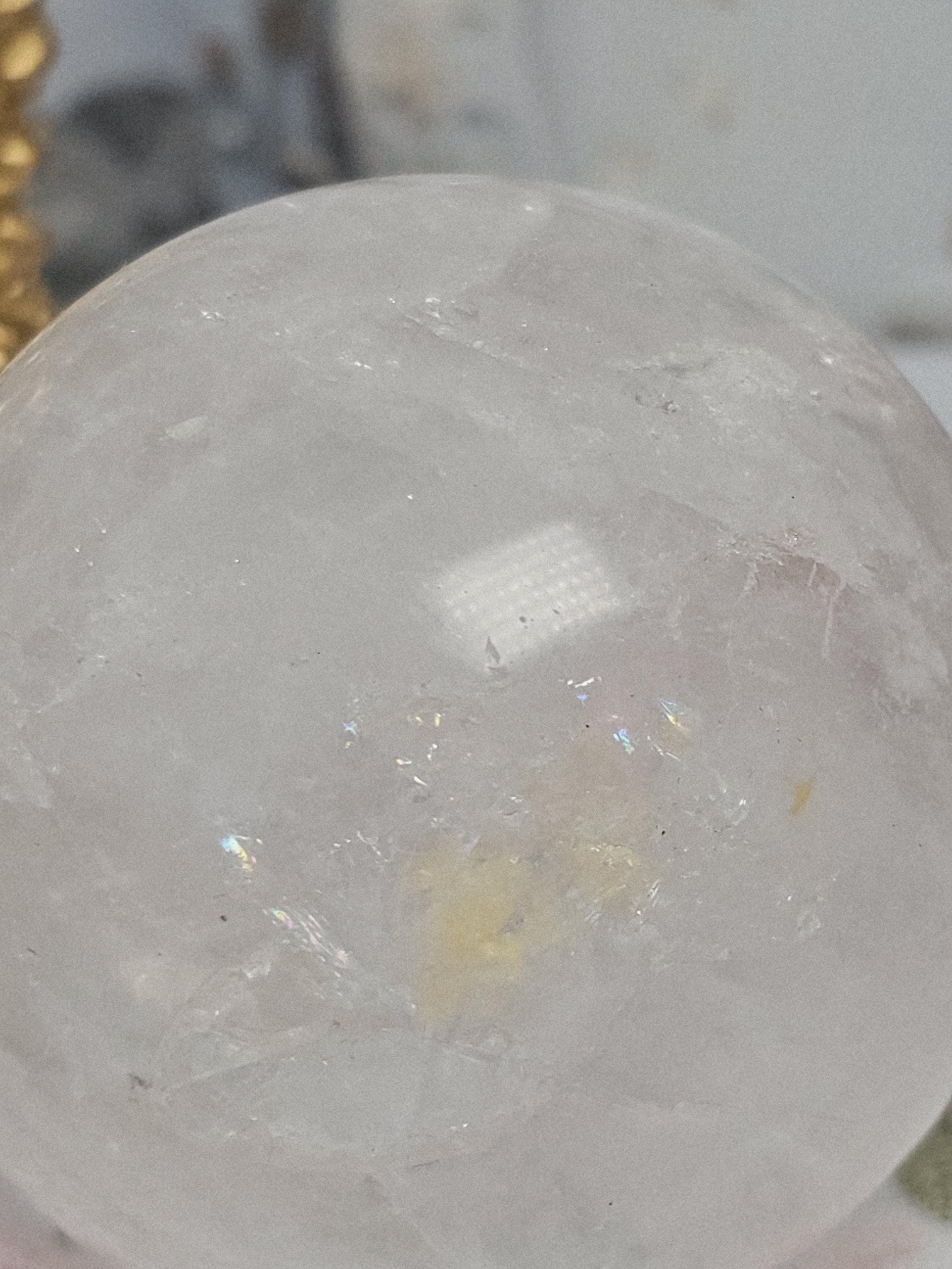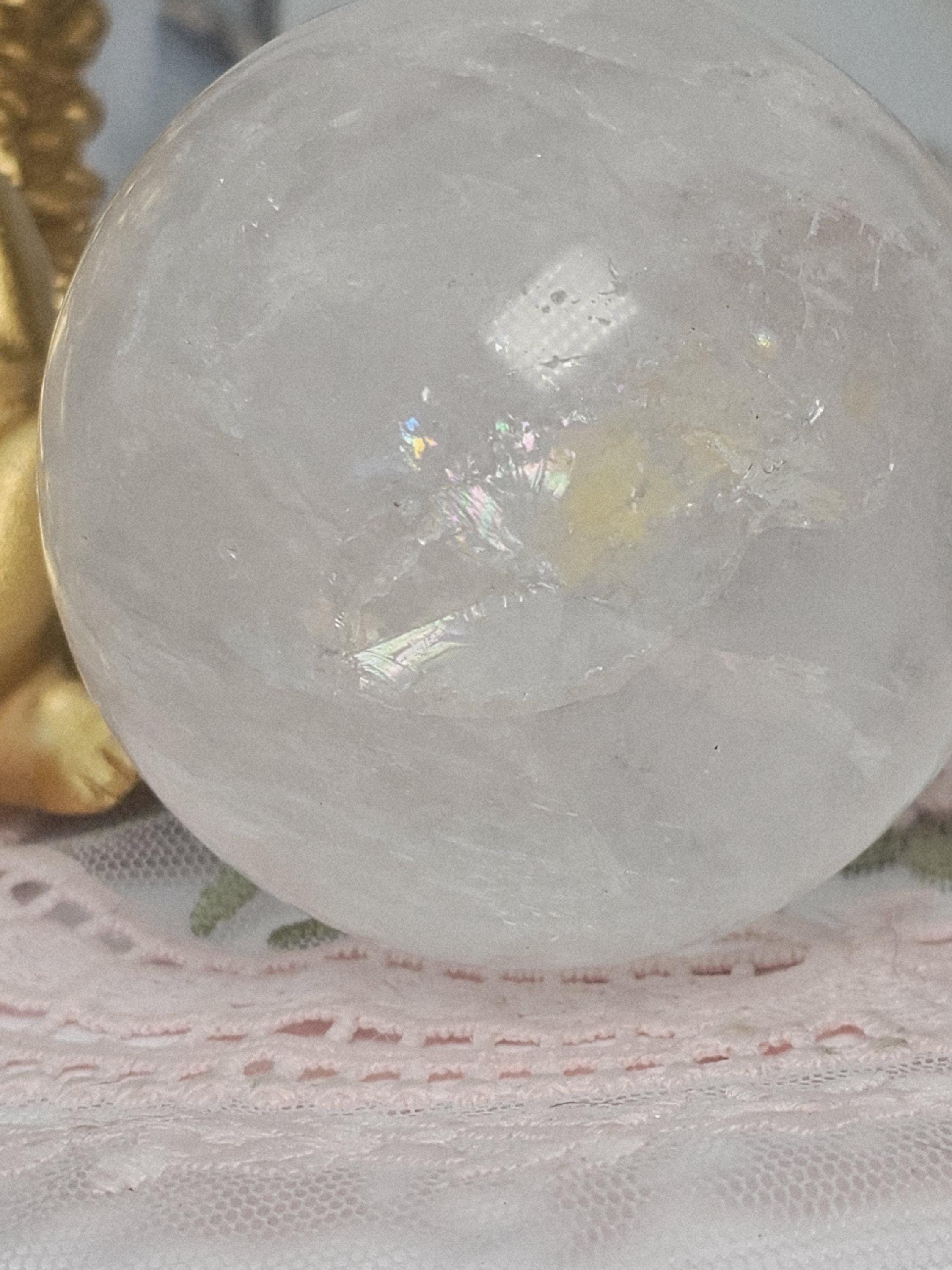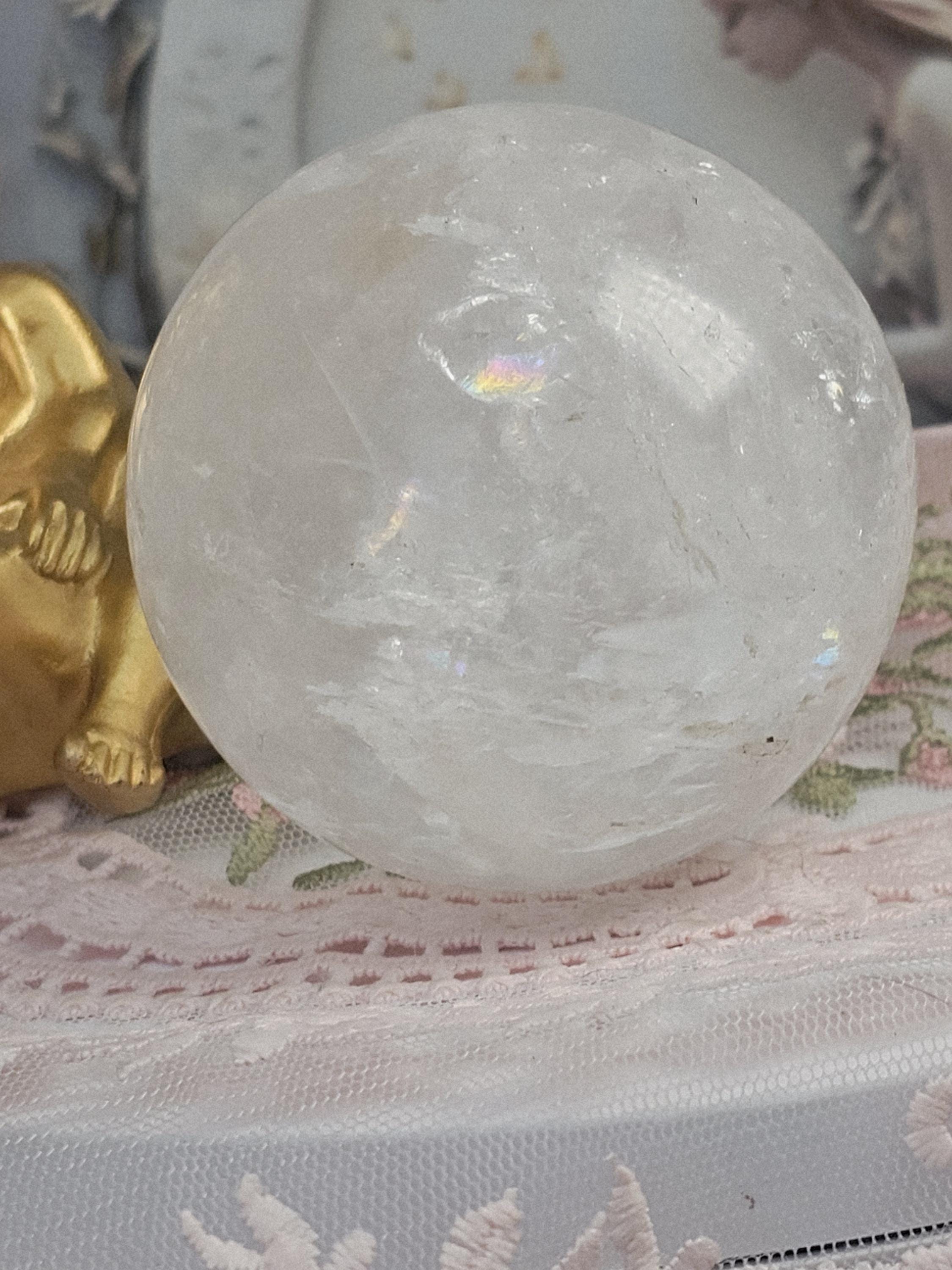 Gorgeous, unique flashes in this Clear Quartz Sphere. Beautiful rainbow colors surround the sphere. High quality clear quartz. Great gift for everyone on every occasion. Reiki Infused. It's a luxury, Statement Piece Crystal Ball with a very high vibration.