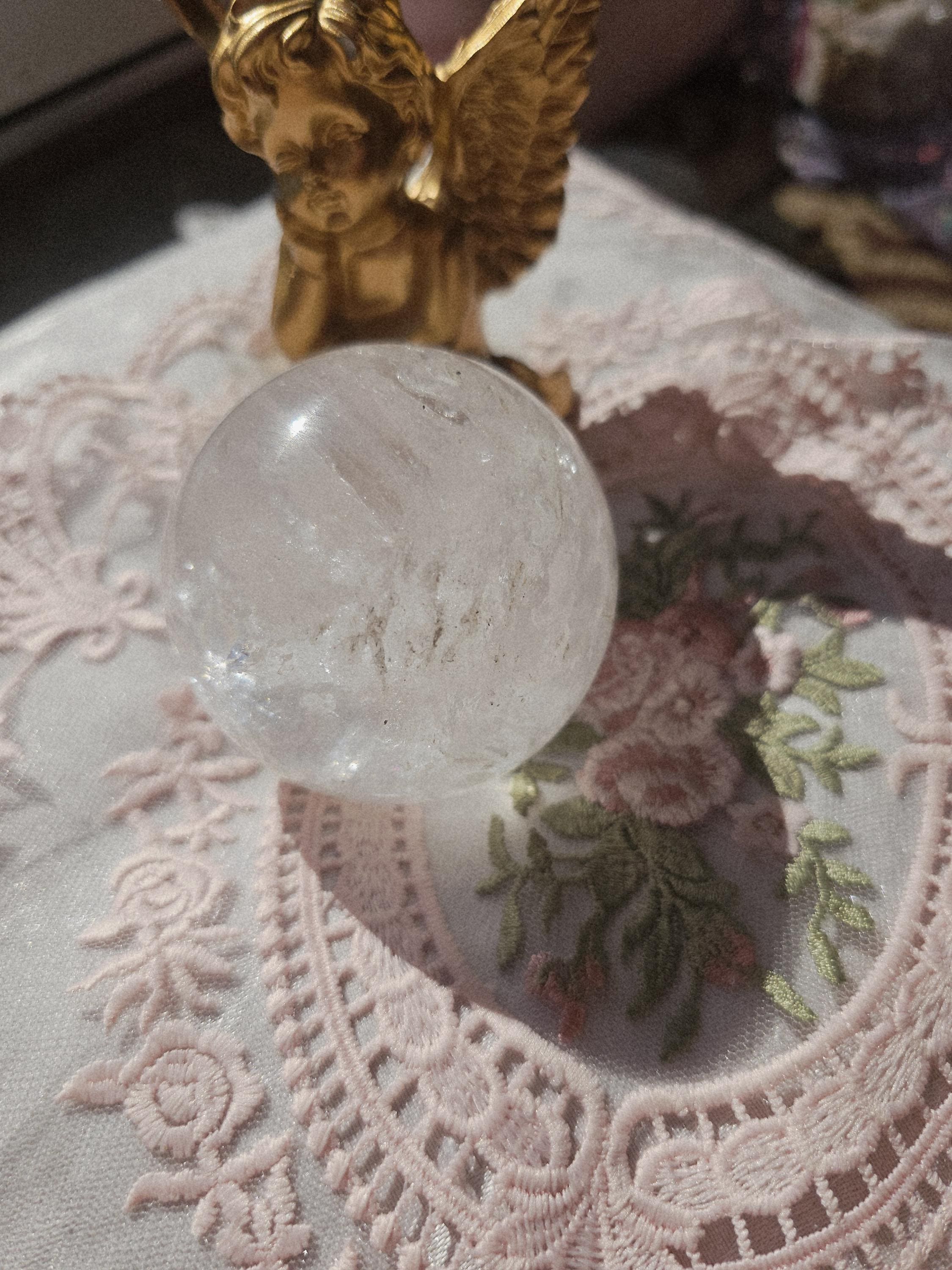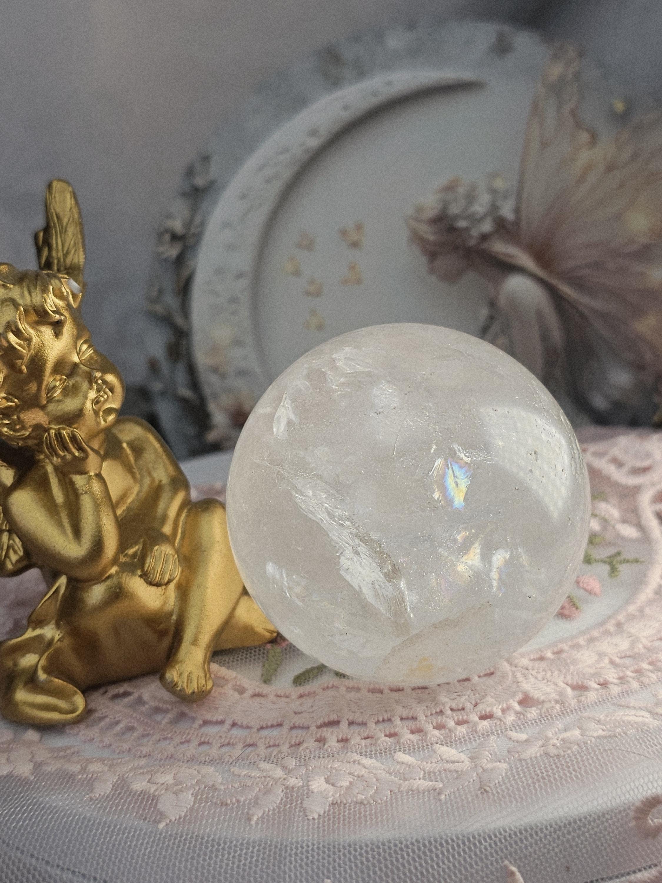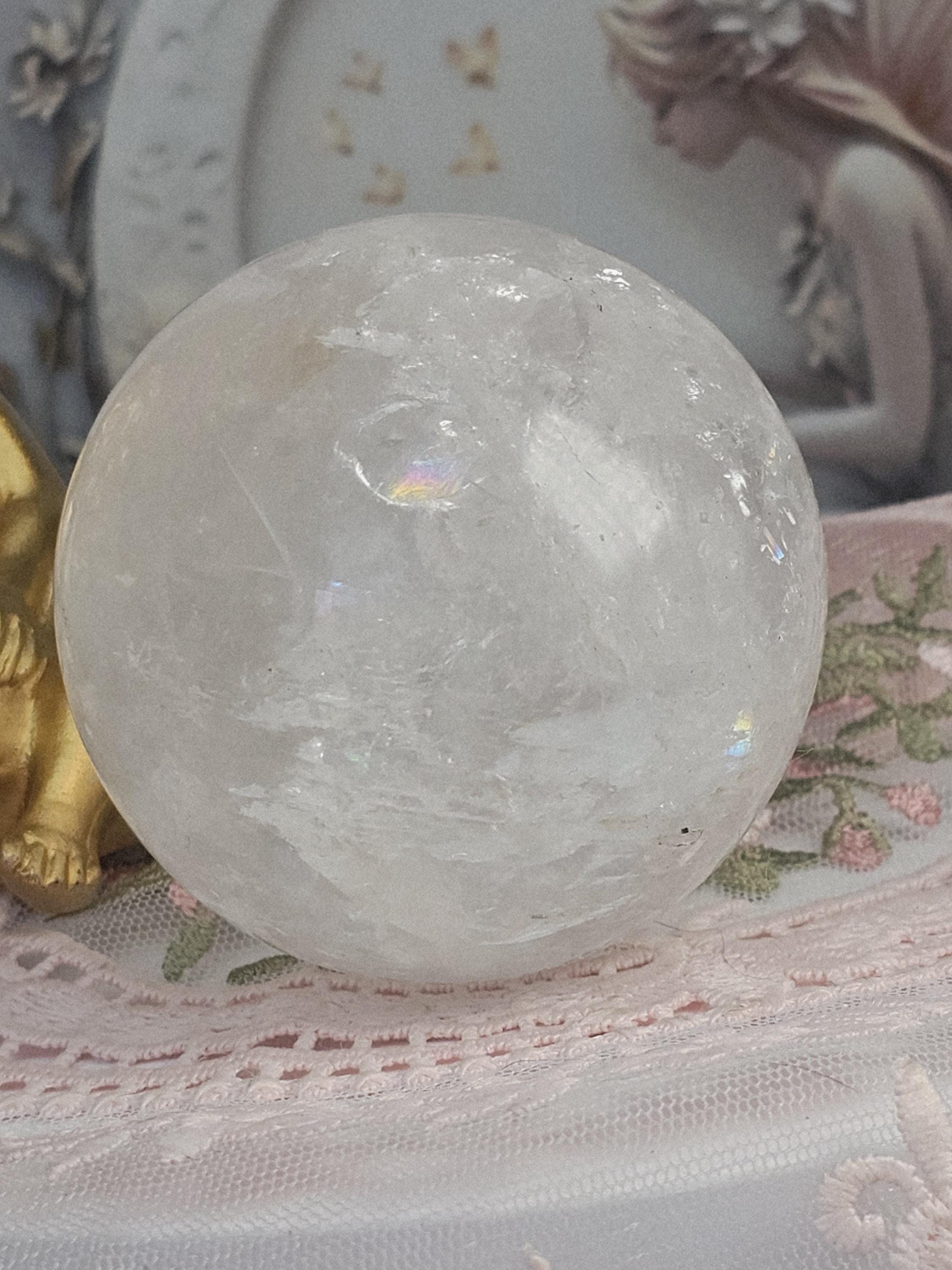 Gorgeous, unique flashes in this Clear Quartz Sphere. Beautiful rainbow colors surround the sphere. High quality clear quartz. Great gift for everyone on every occasion. Reiki Infused. It's a luxury, Statement Piece Crystal Ball with a very high vibration.
