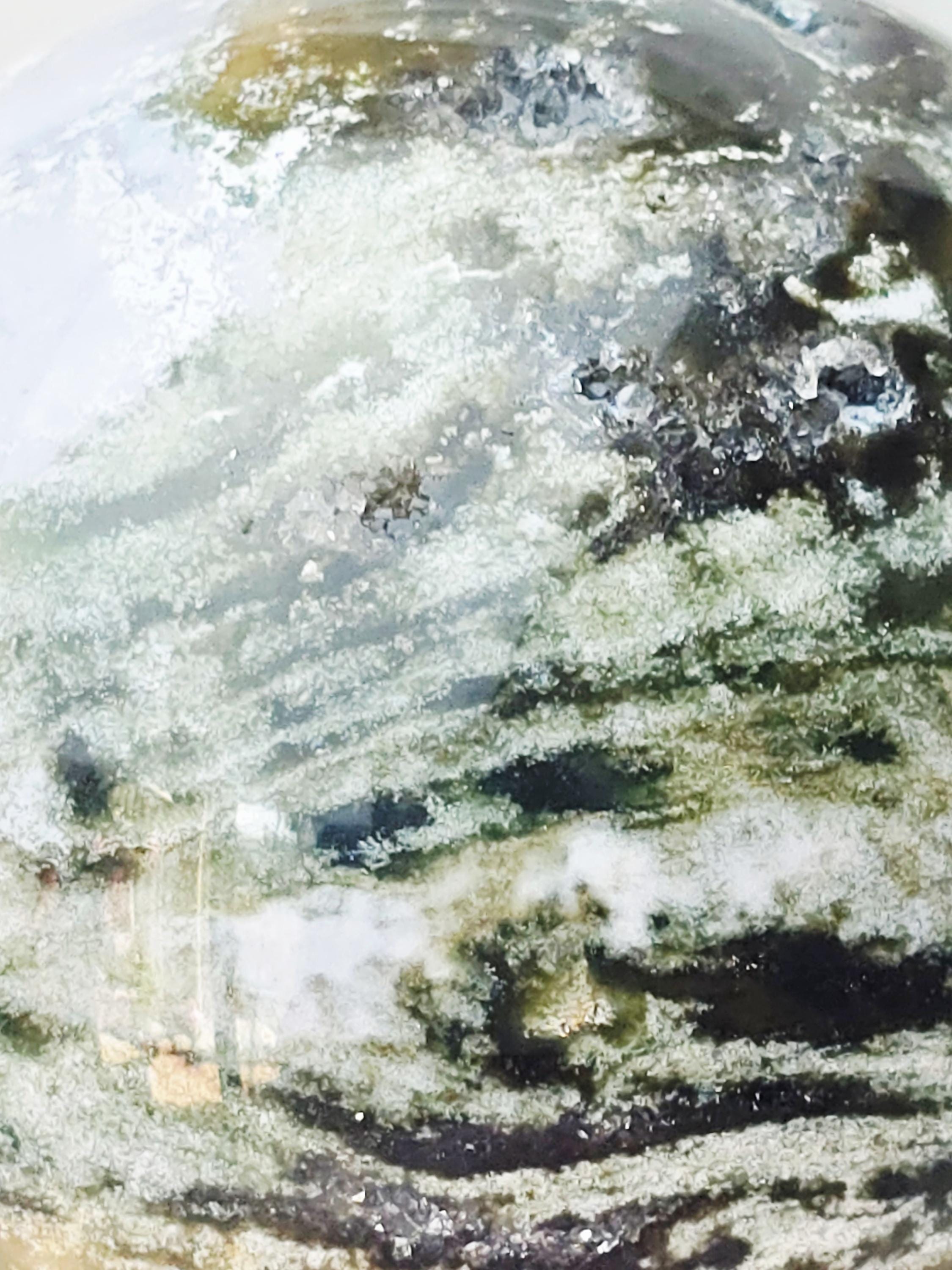 This rare and extremely beautiful Ocean Jasper Tower is 3 inches wide. It's a gorgeous statement piece for any collection with Green, Yellow, White and Clear Druzy throughout. The Ocean Jasper is a majestic colorful piece of art created by Mother Nature's hand. Purple, pink, peach, yellow and light blue with contrasting shades of green. It's a great gift for any crystal lover.