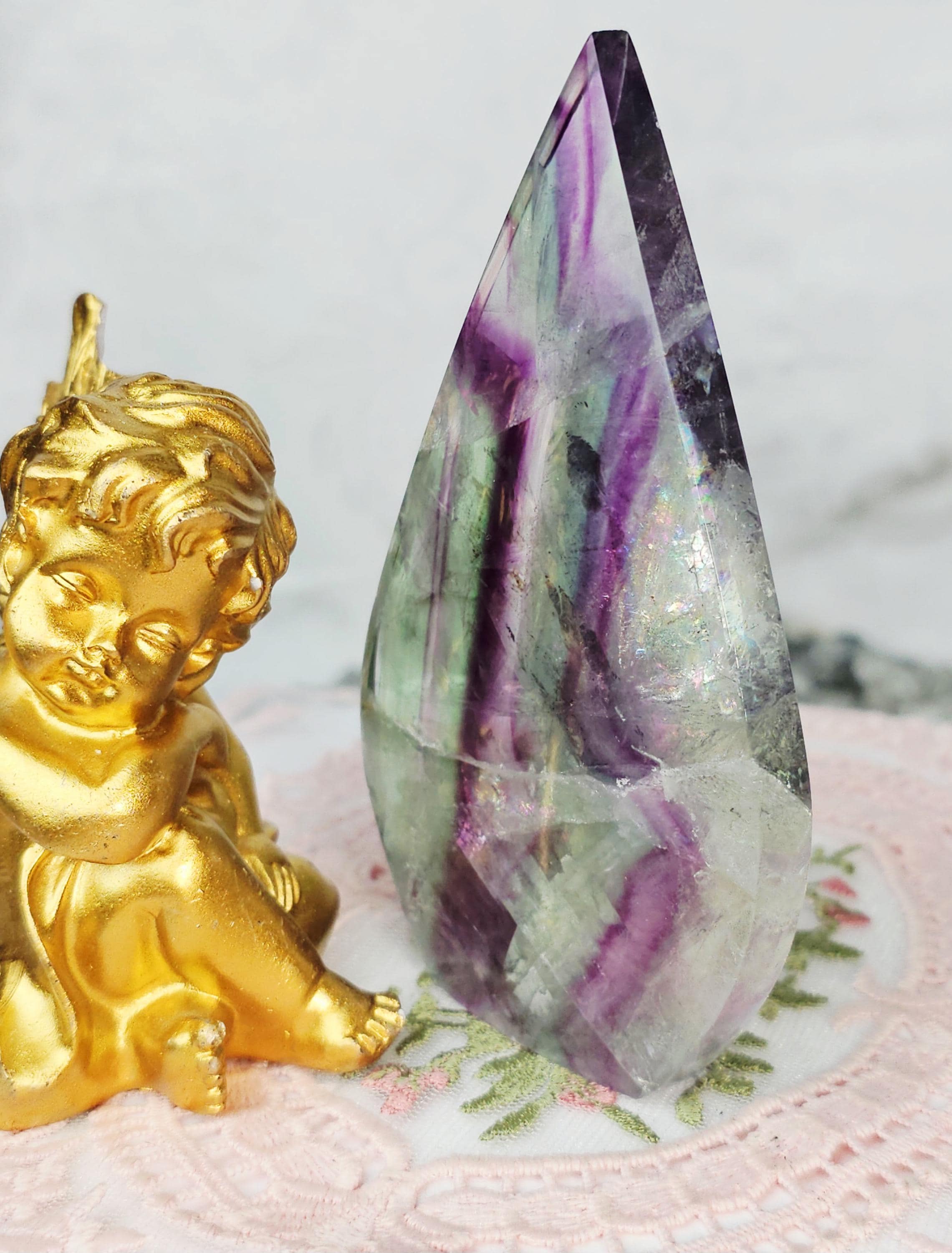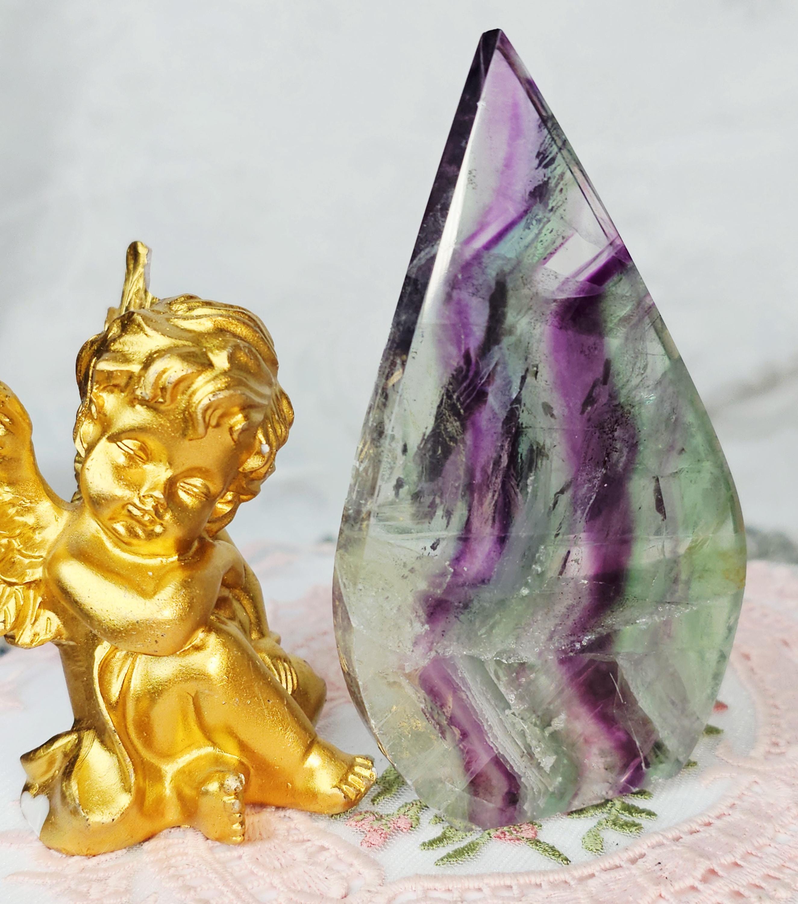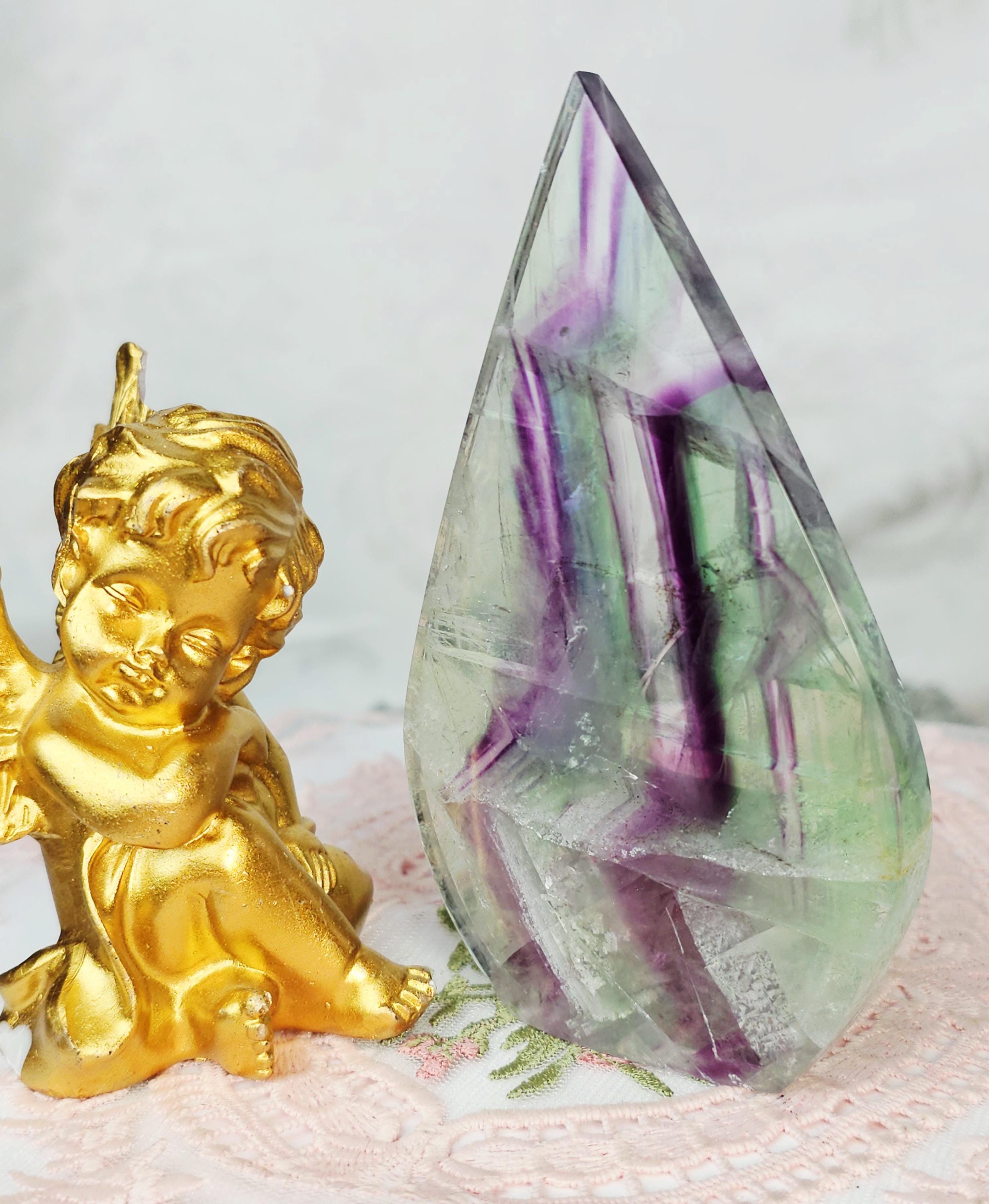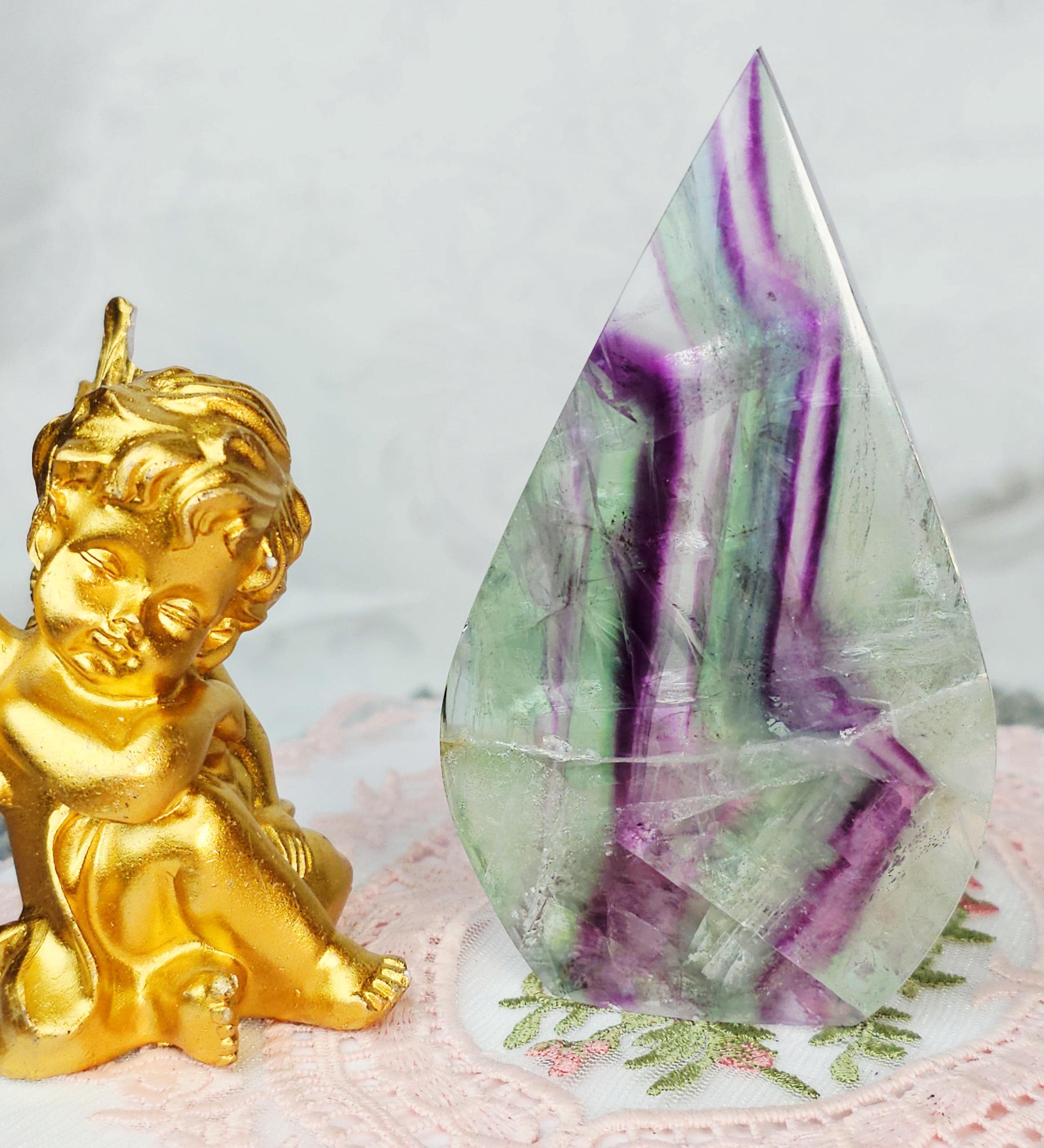 Flourite is grounding, protective, sends away bad energy, optimistic, changes negative energy into positive, brings good fortune in money and business, great for repelling negativity, calming and loving. Fantastic crystal for many spiritual purposes. It is one of my favorite crystals.