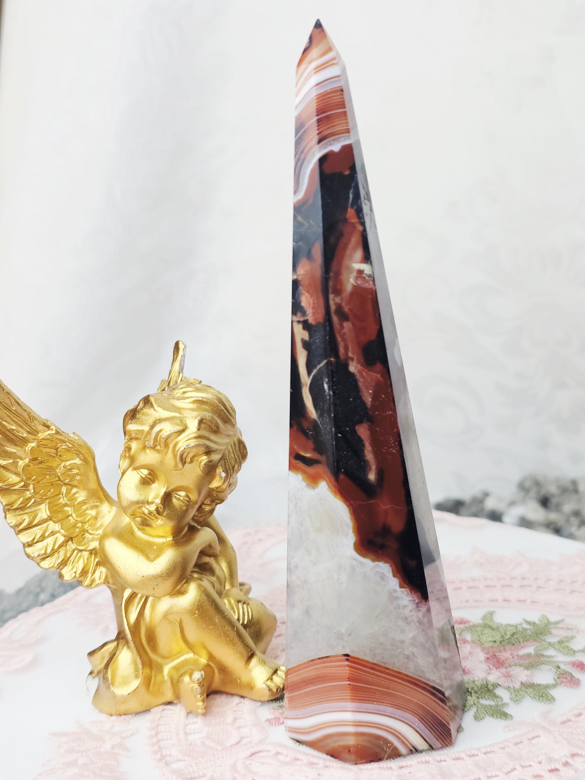 Sardonyx Carnelian Tower, Carnelian Towers , Orange and Black Sardonyx, Crystal Gift