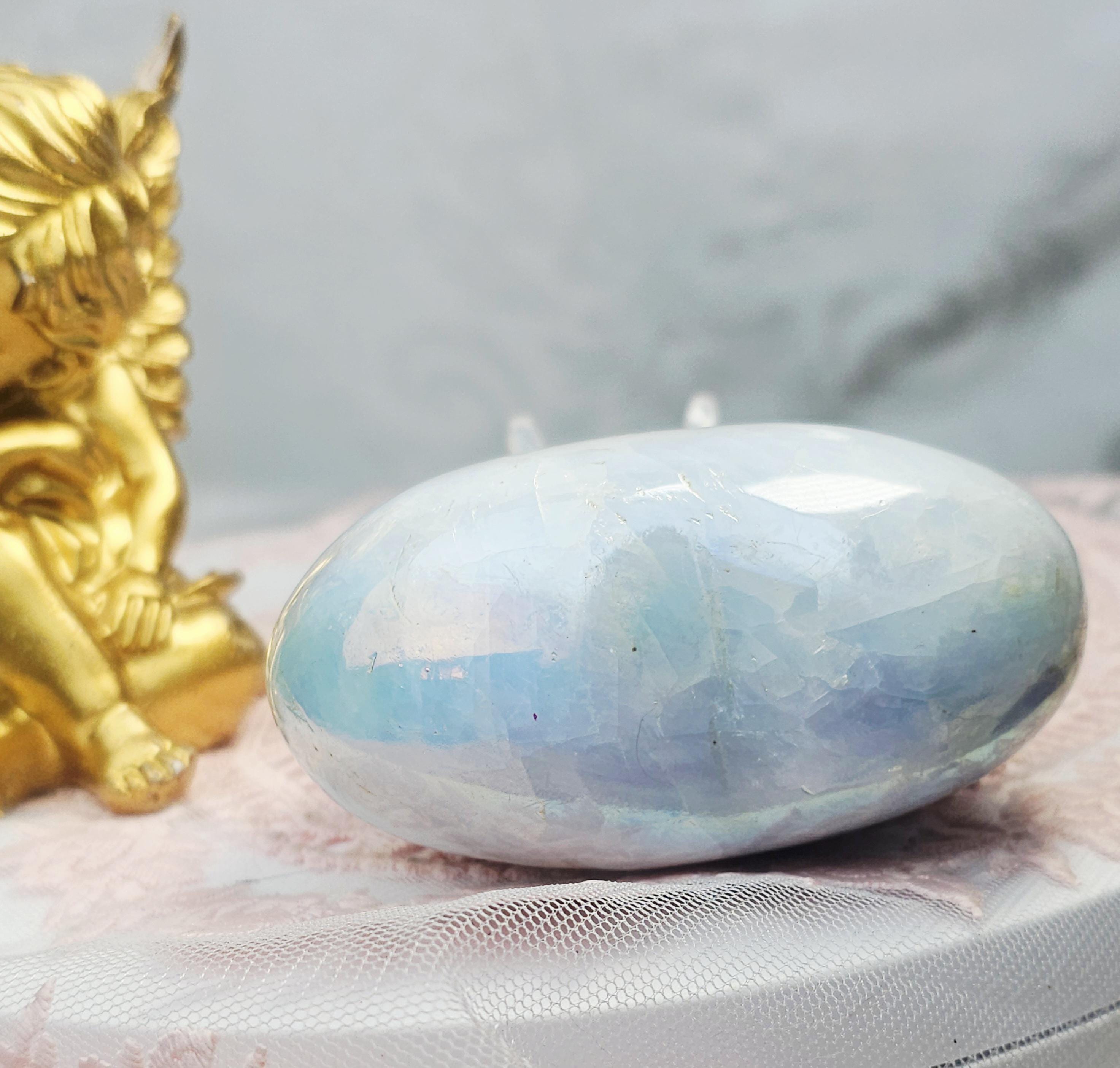 Angel Aura Blue Calcite has angelic and divine connections. It helps you communicate easily within the spiritual world with the Angels and Guardians around you. It is a very caring stone. It emparts a serenity that grows to a strong sense if well being. A favorite of the Archangels, it helps you reflect on what is truly important and self love grows as a result of self understanding. Communing with higher level beings always strengthens self love as well as self understanding.