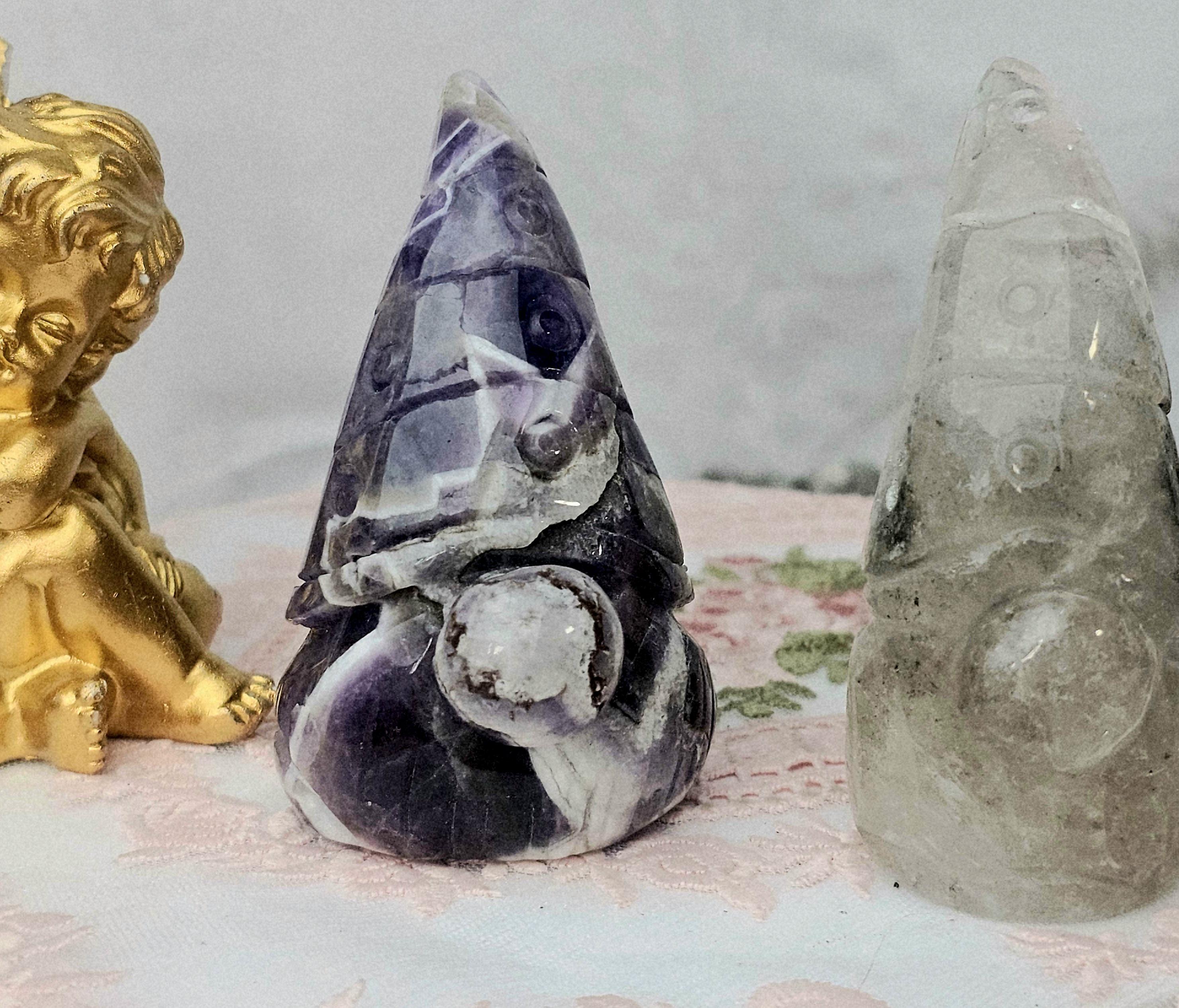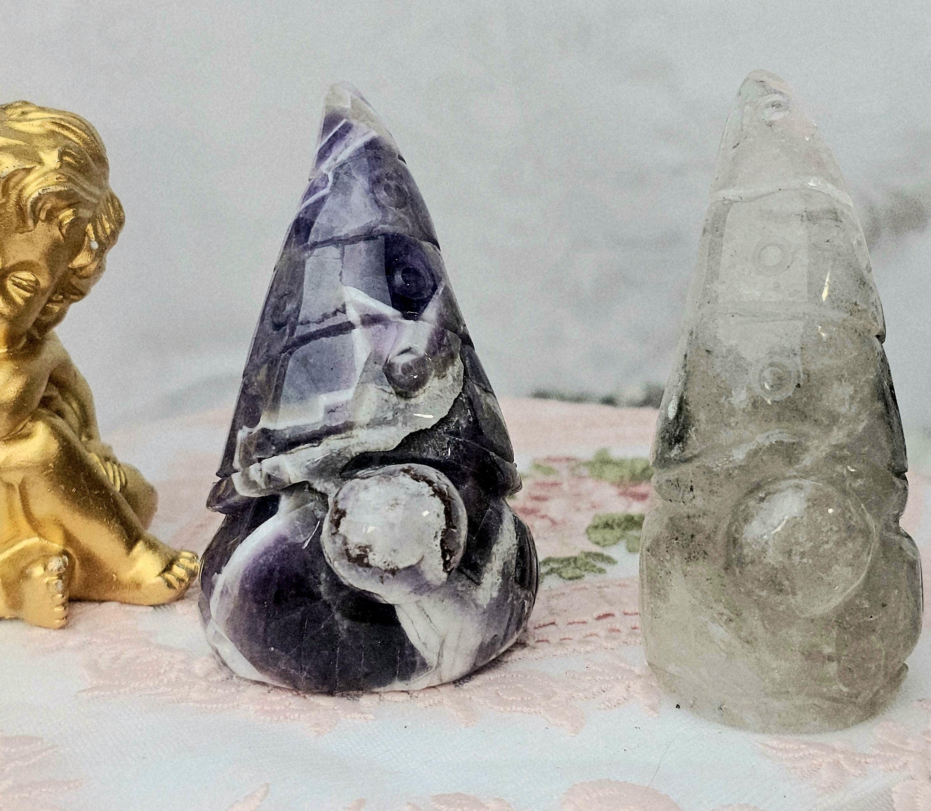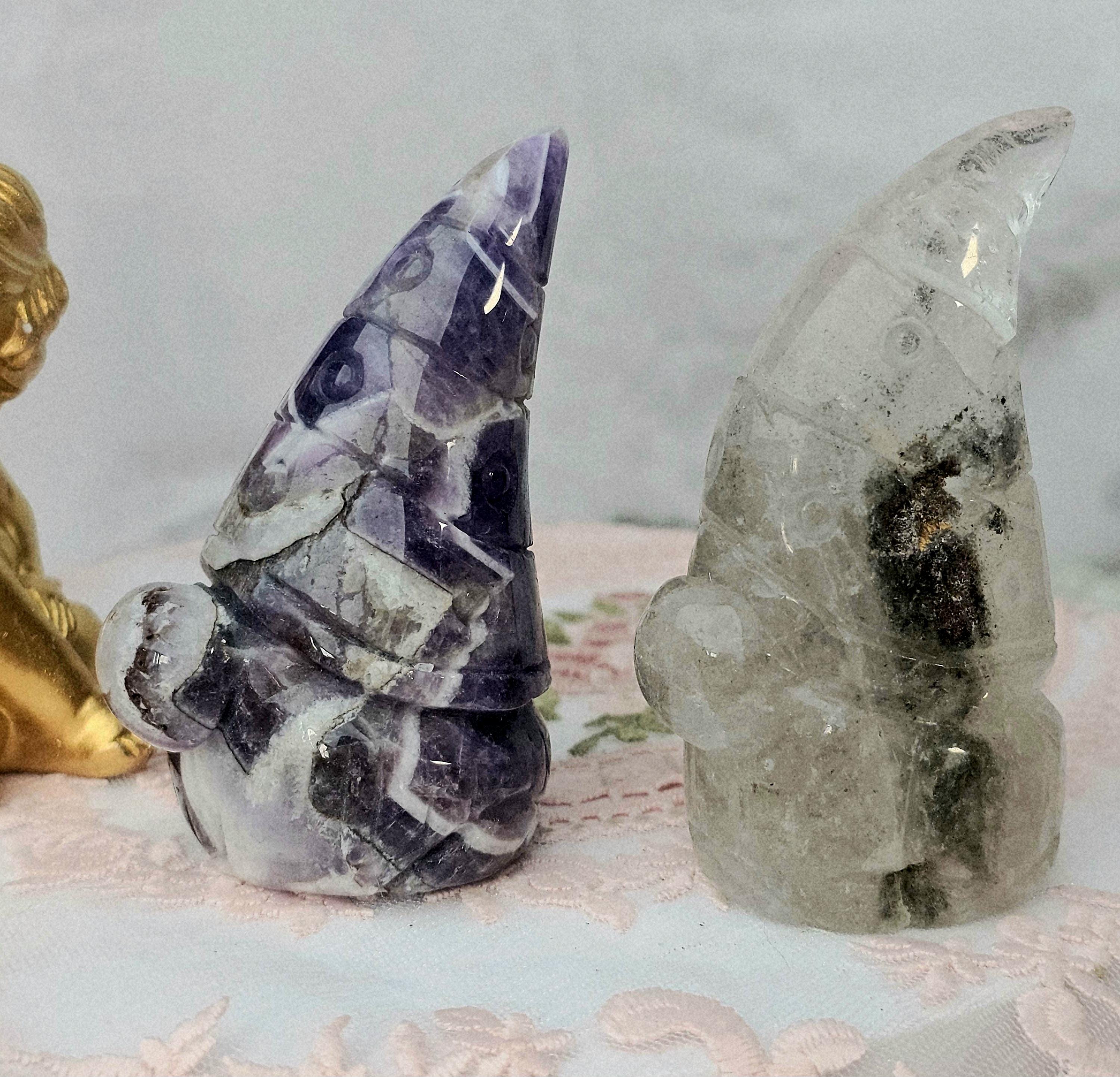 Gnomes are mystical spirits of good nature. They bring protection against theft and ill will. They are a home body sporit who likes to connect to the space you live in. These are larger sized gnomes.