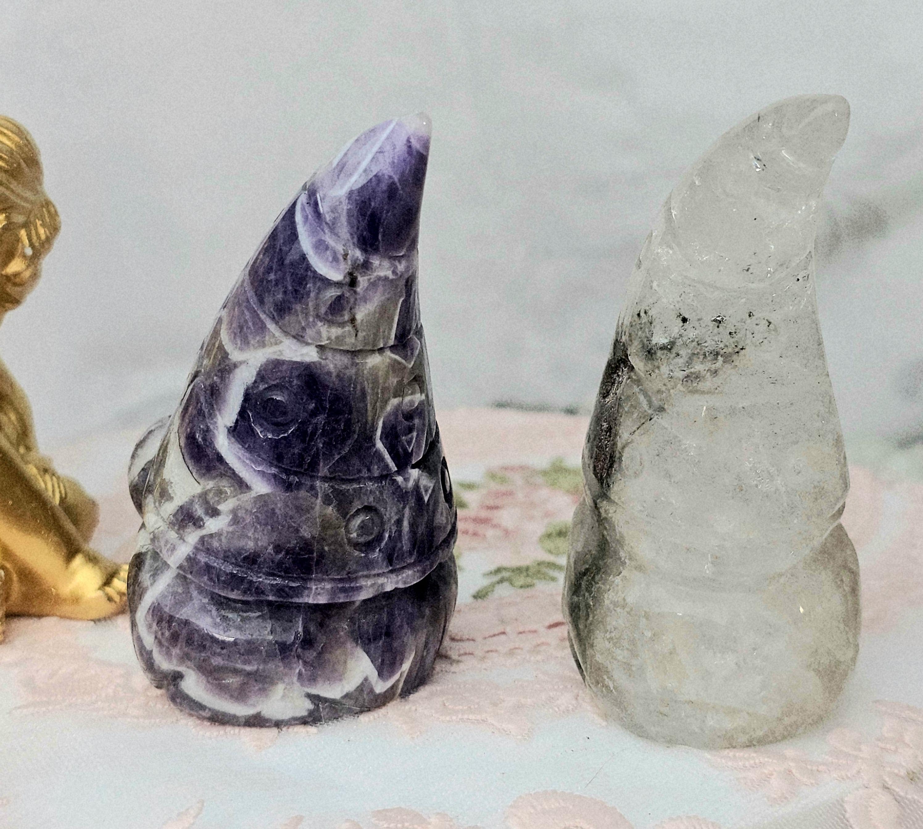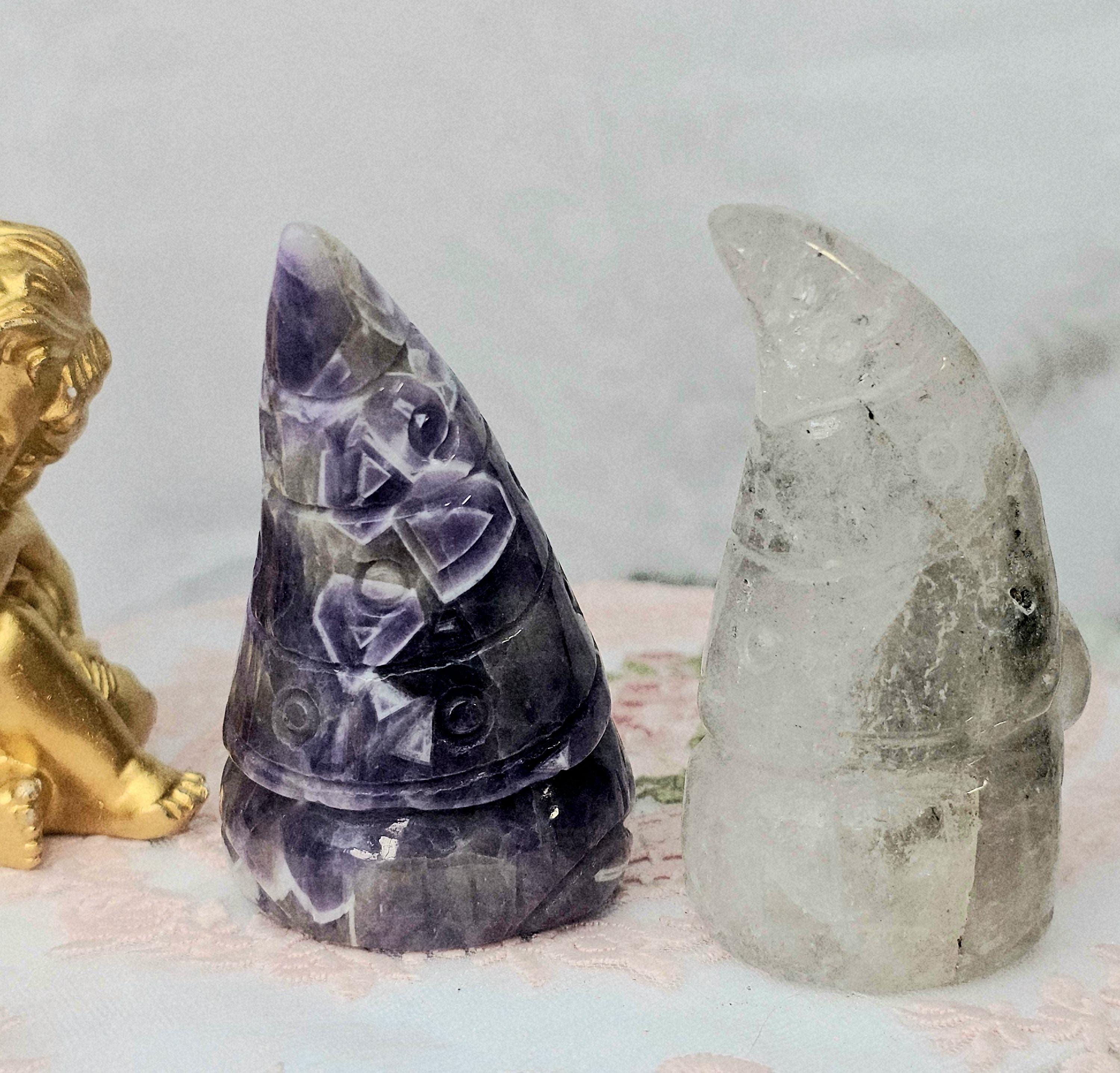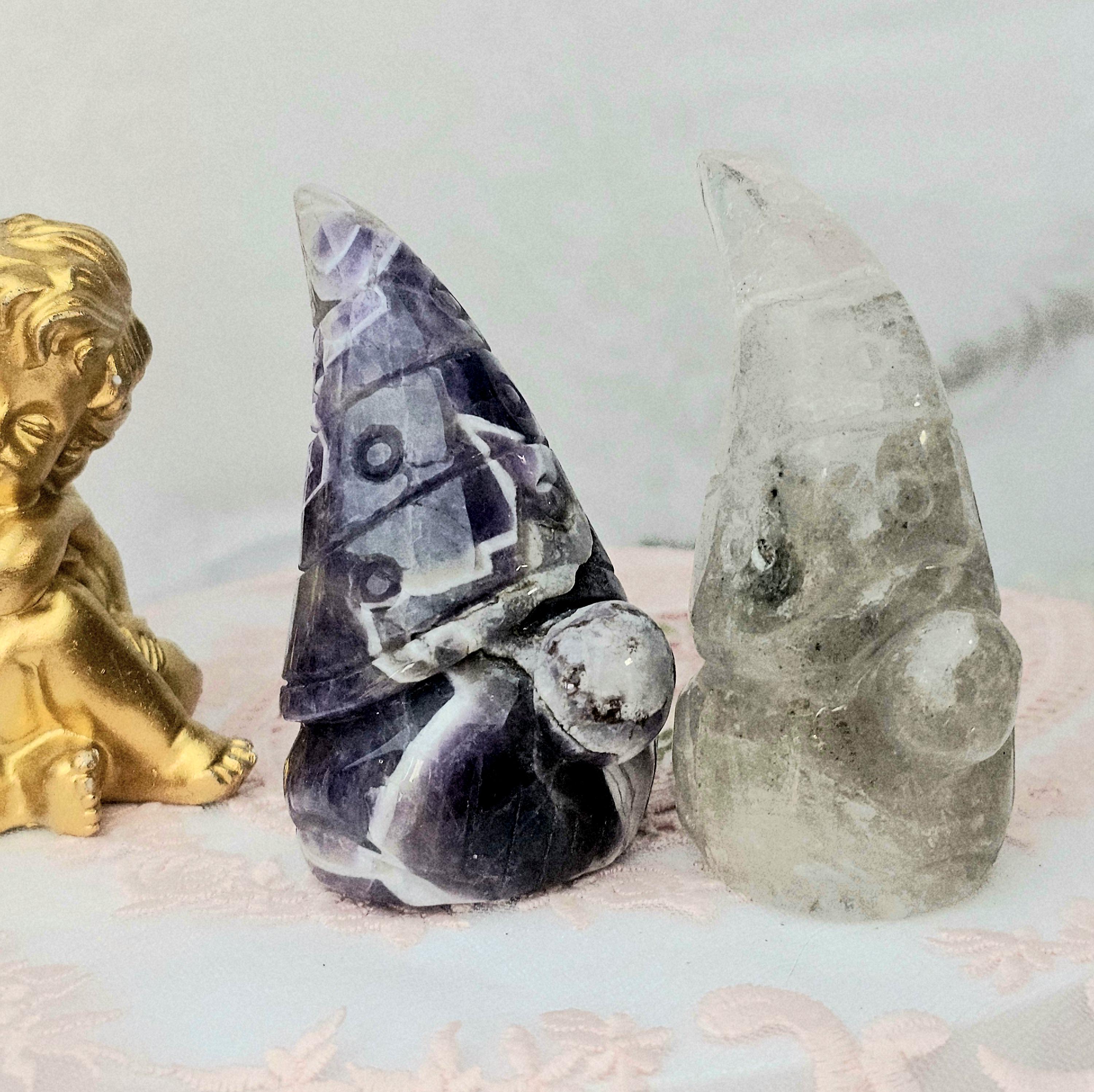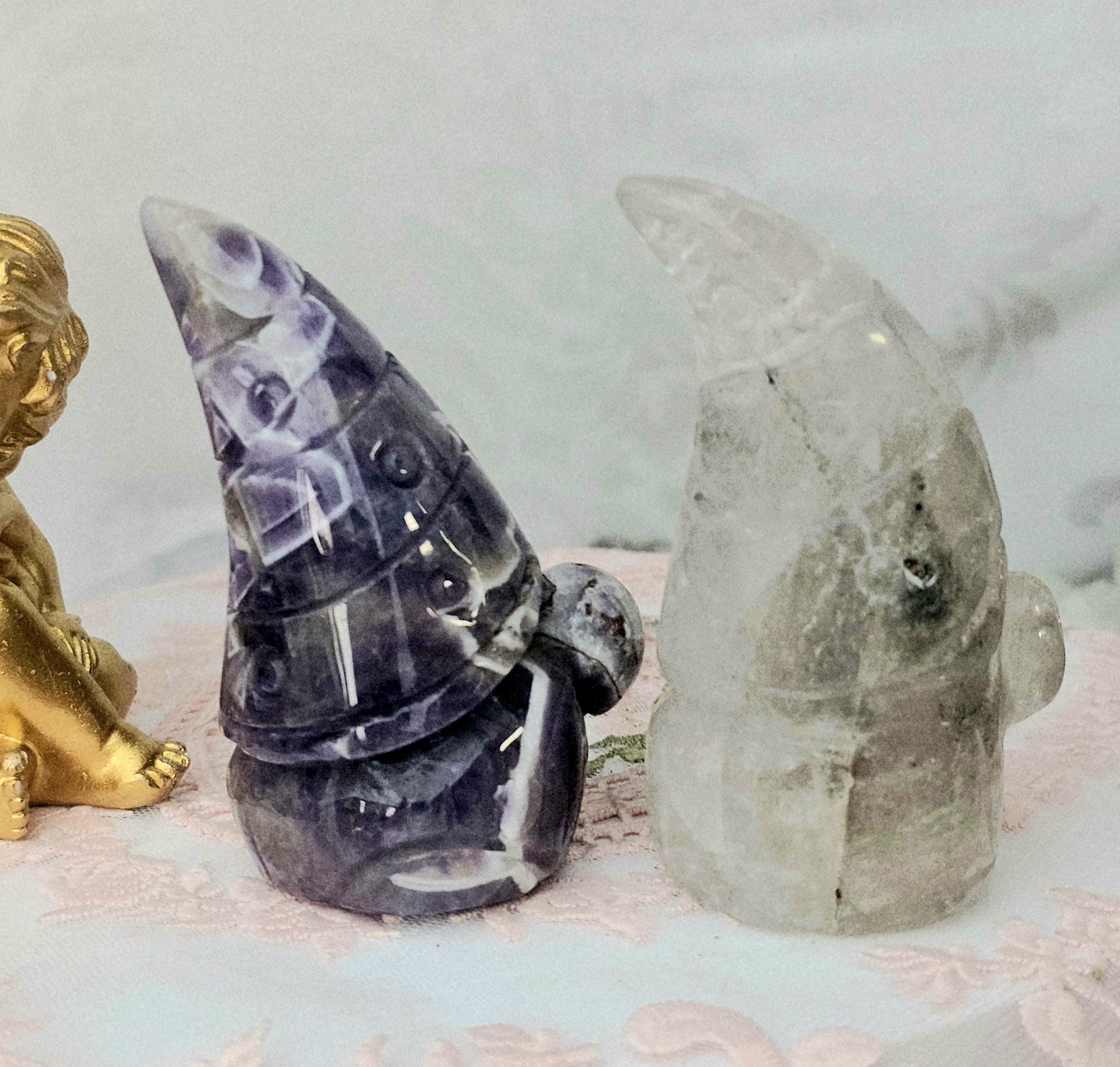 Gnomes are mystical spirits of good nature. They bring protection against theft and ill will. They are a home body sporit who likes to connect to the space you live in. These are larger sized gnomes.