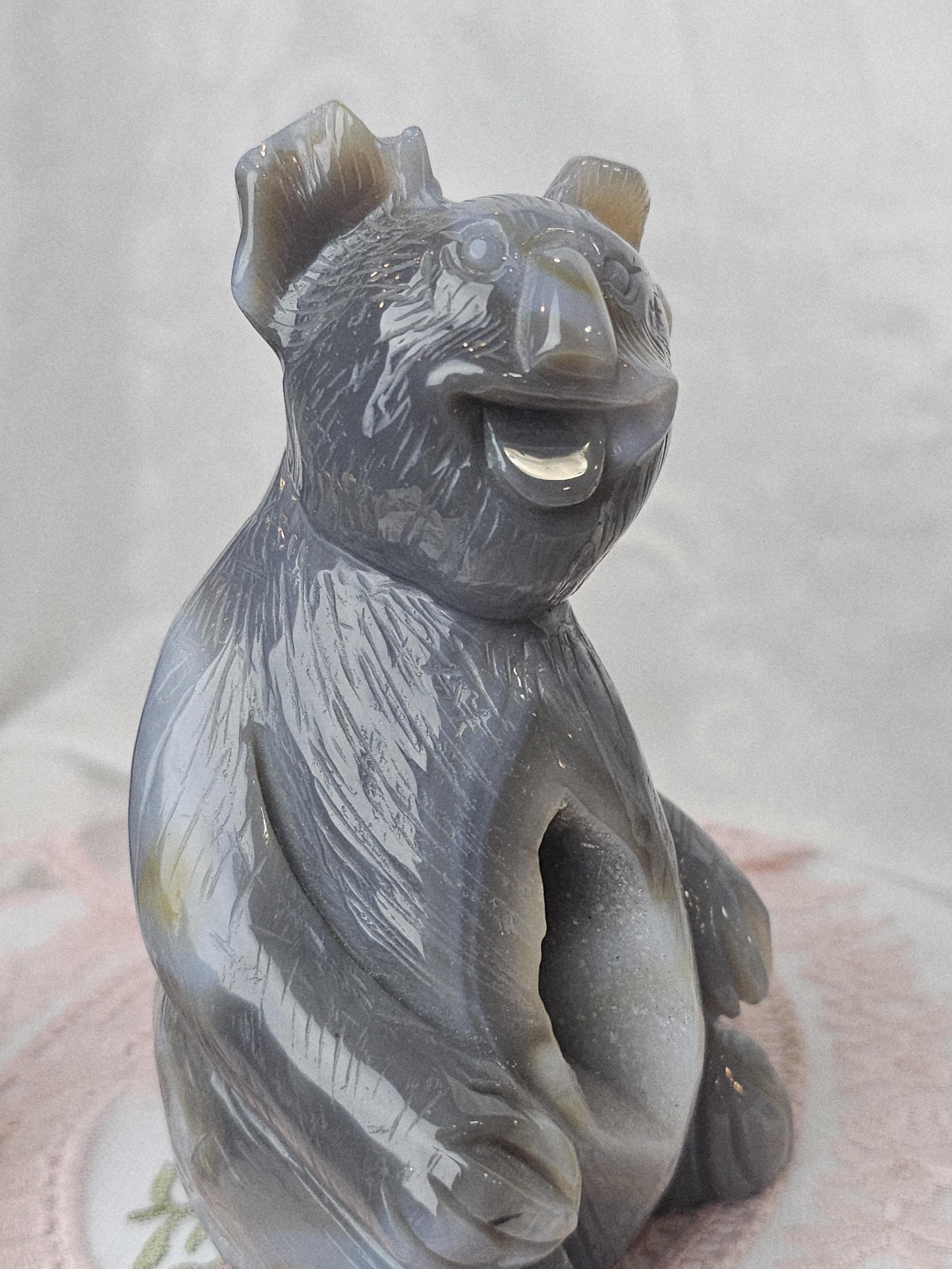 Banded Agate Koala, Bear Statue, Druzy Agate Crystal, Home Decor, Sculpture, Koala