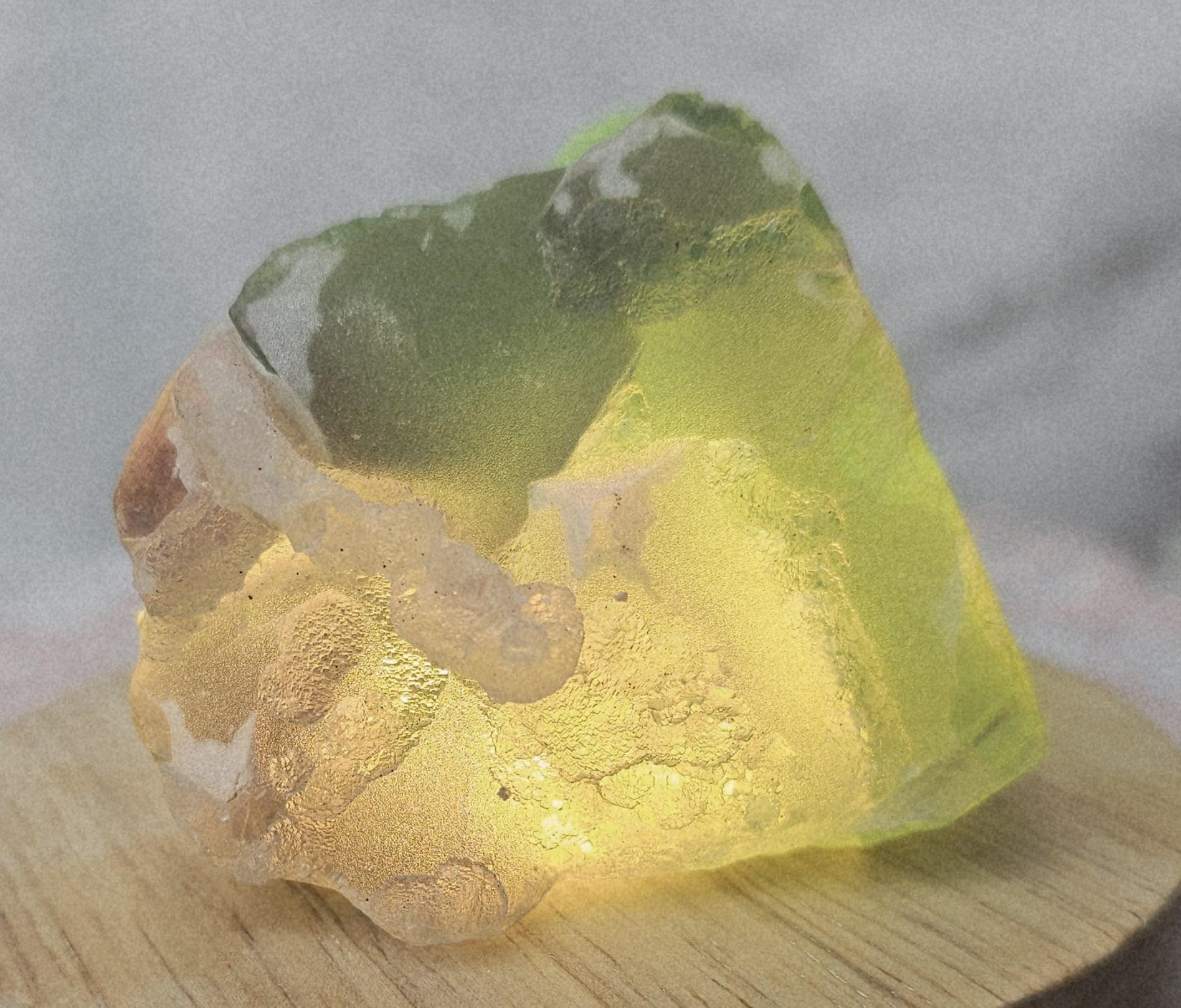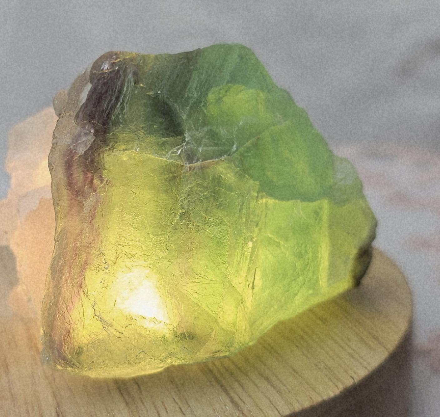Beautiful Fluorite with great lucky rainbows and sugar coating. It has windows and depth .Great gift for everyone on every occasion. This crystal has vibrant green and purple colors. I love the purple stripes. Let this bring sunshine into your space. Perfect for any Fluorite or crystal lover.