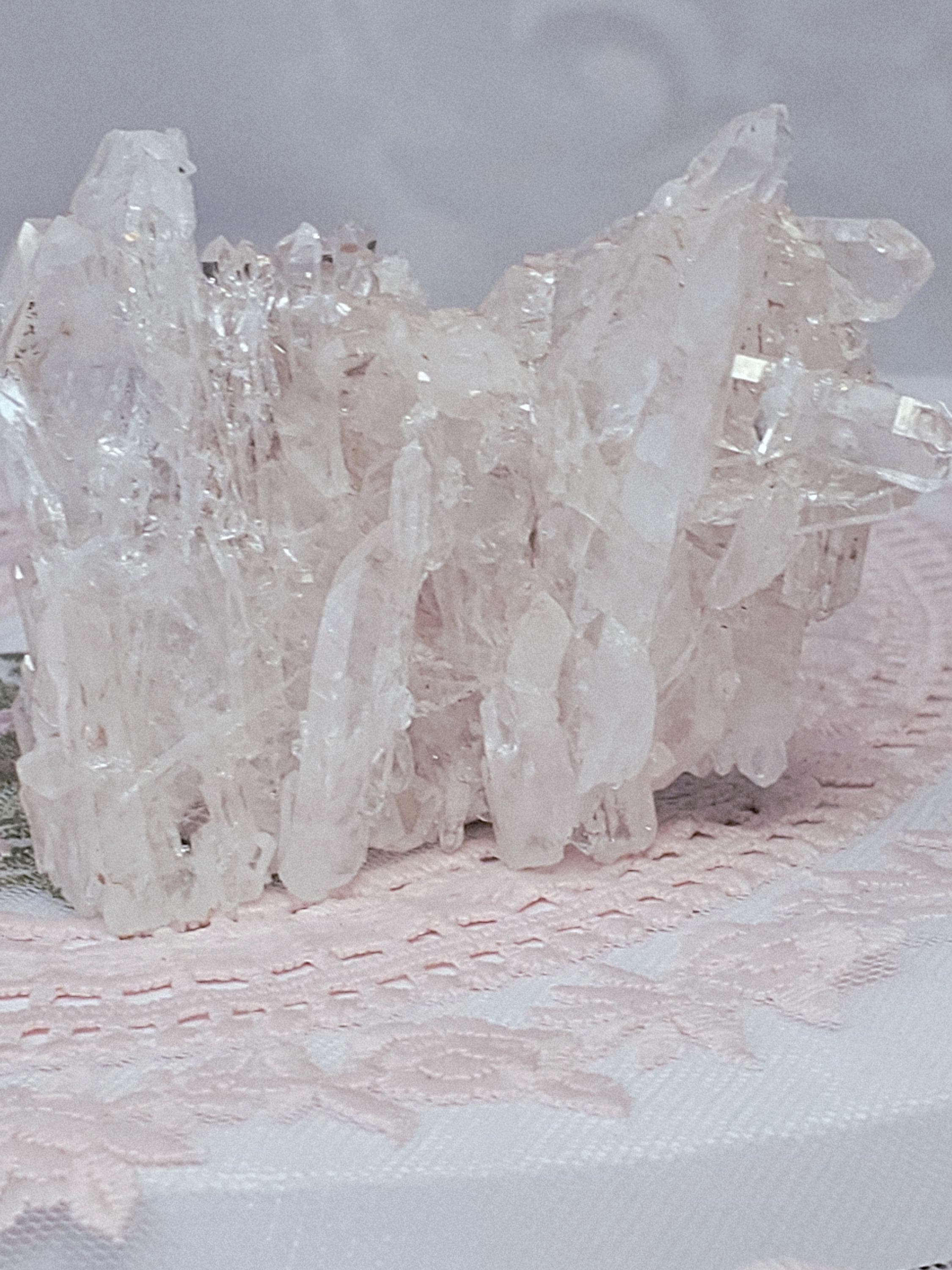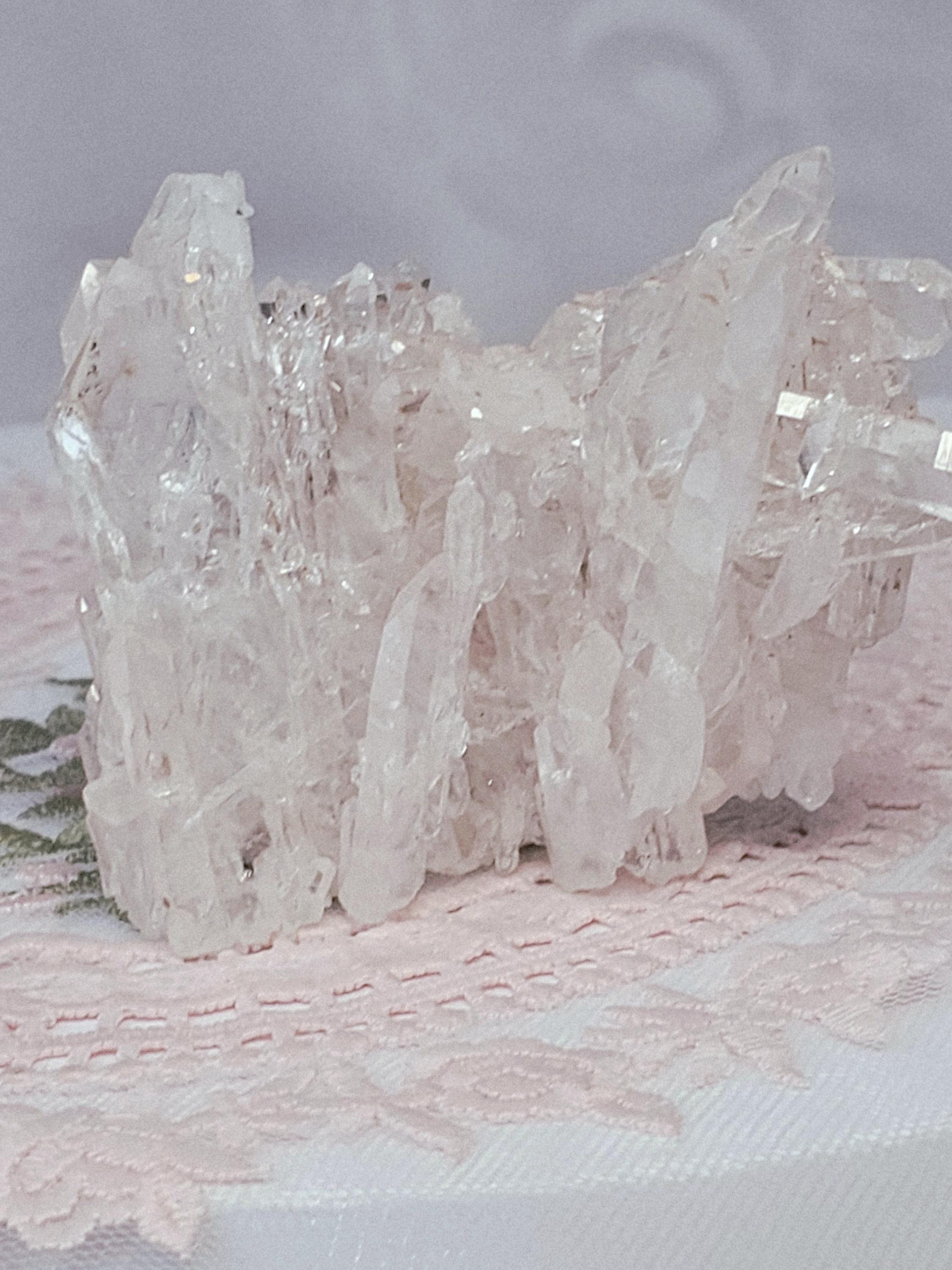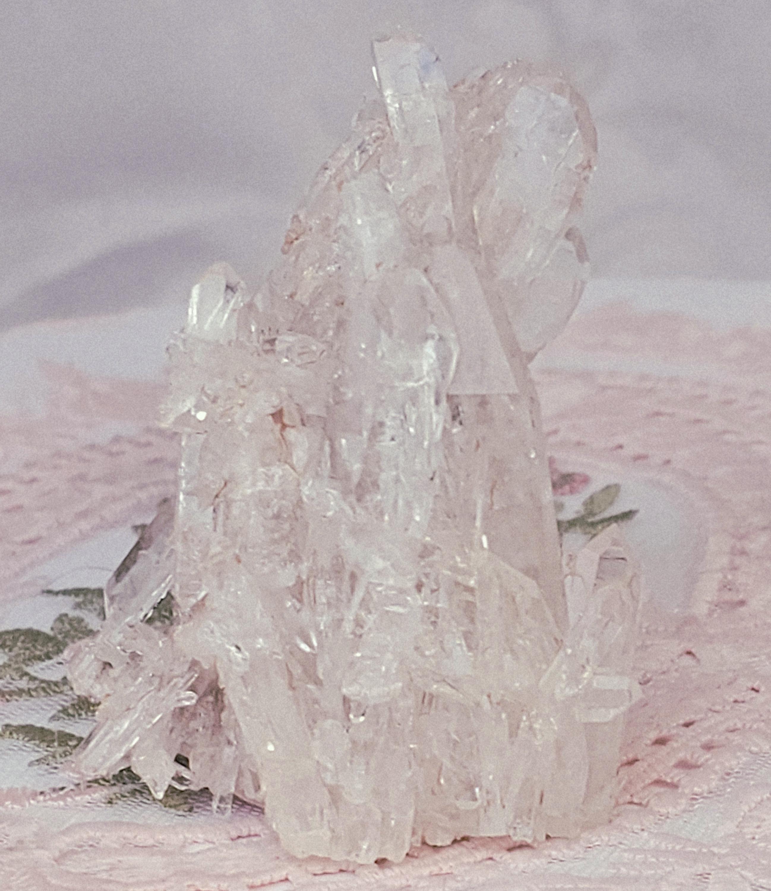 Pink Lemurian promotes calmness and a sense of peace. It us a cluster and cluster formations help with community cooperation. They are great for the heart. The presence of Lithium alone makes this crystal great for serenity and love. This statement pieces are 4.2 oz all covered with rainbows.