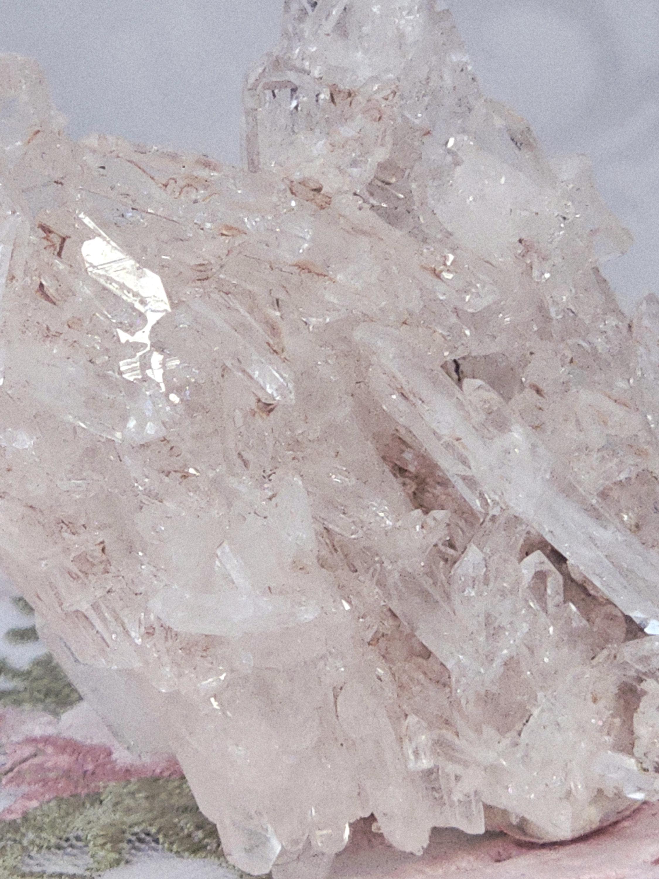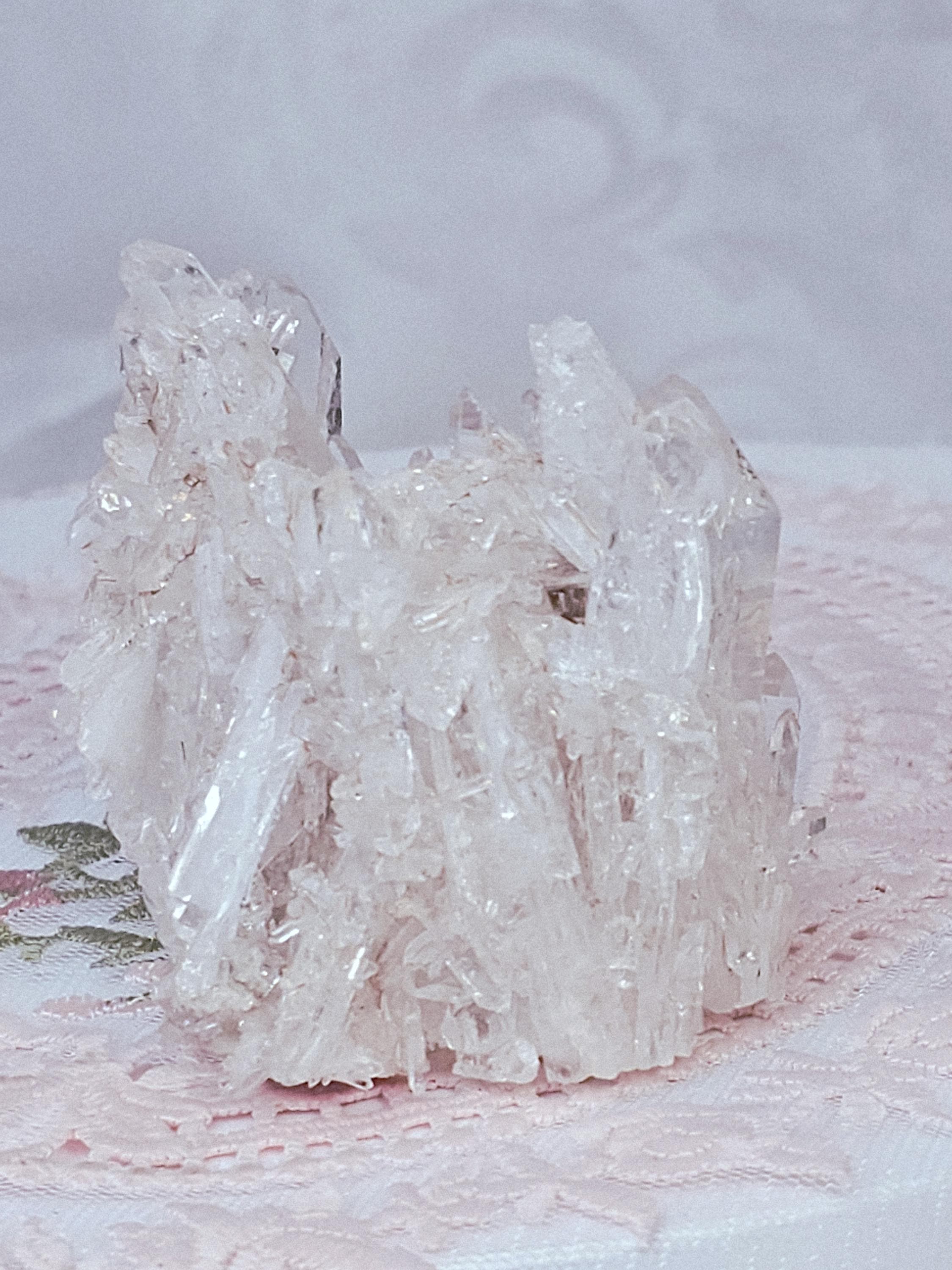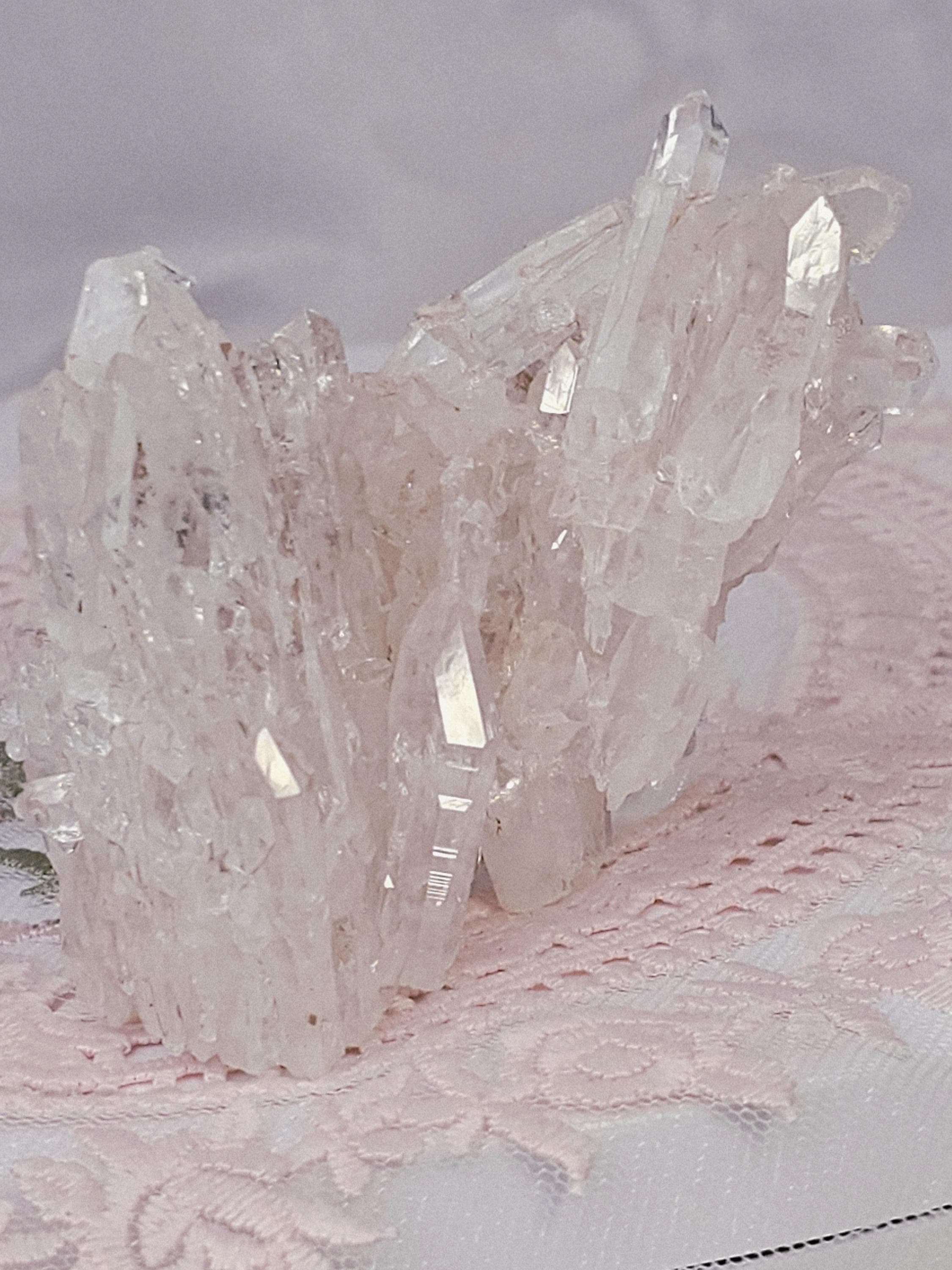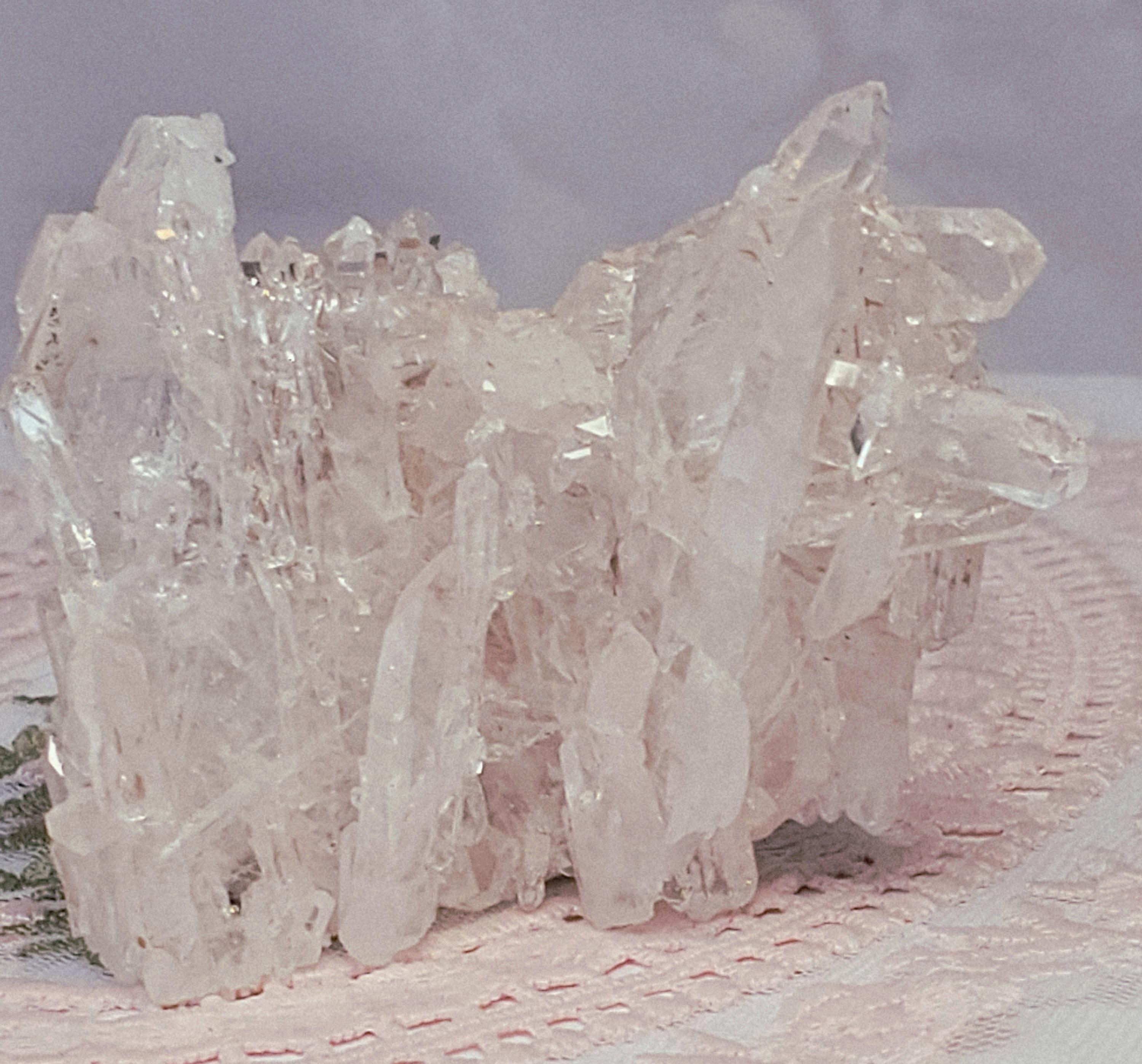 Pink Lemurian promotes calmness and a sense of peace. It us a cluster and cluster formations help with community cooperation. They are great for the heart. The presence of Lithium alone makes this crystal great for serenity and love. This statement pieces are 4.2 oz all covered with rainbows.