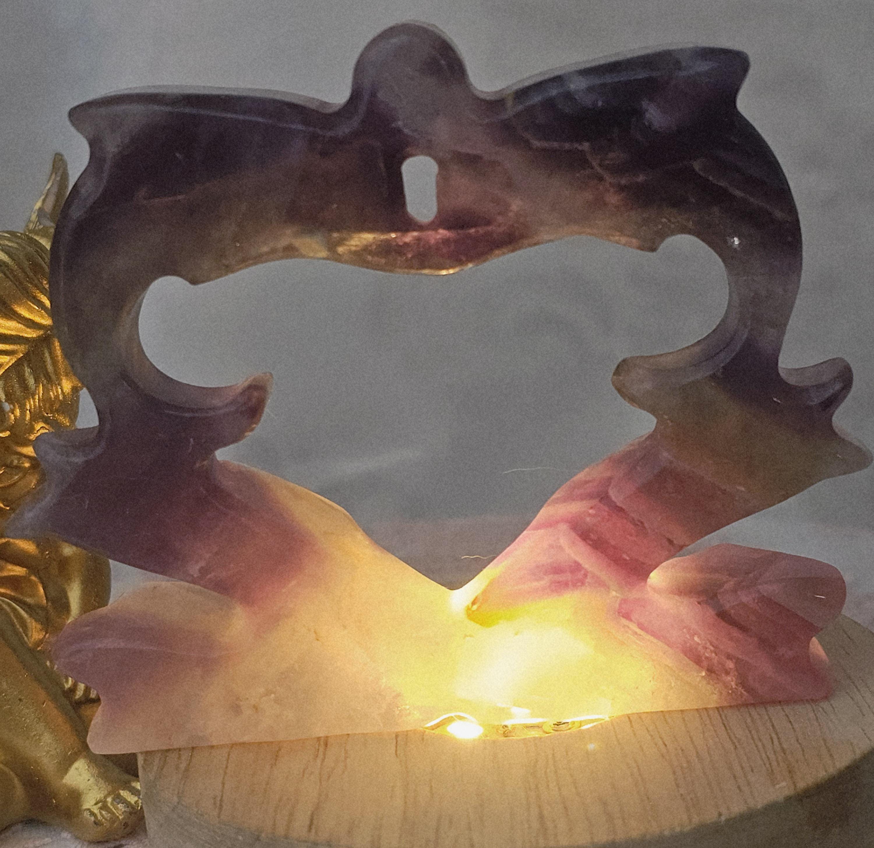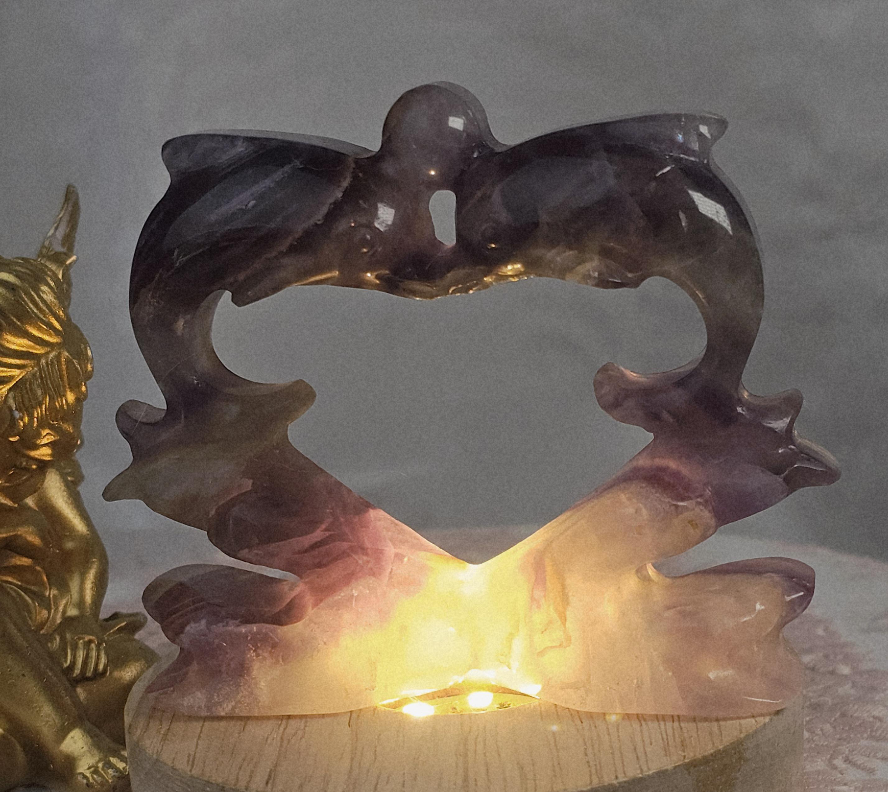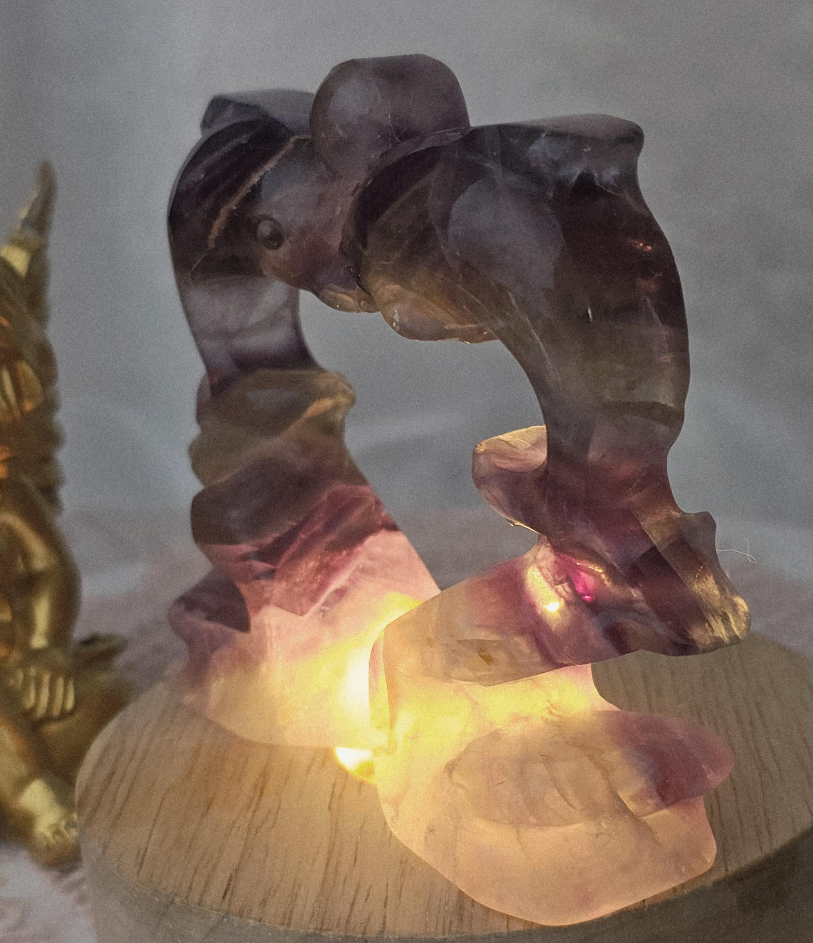 Fluorite Dolphins , Crystal Dolphins Handmade, Crystal, Dolphin Sculpture