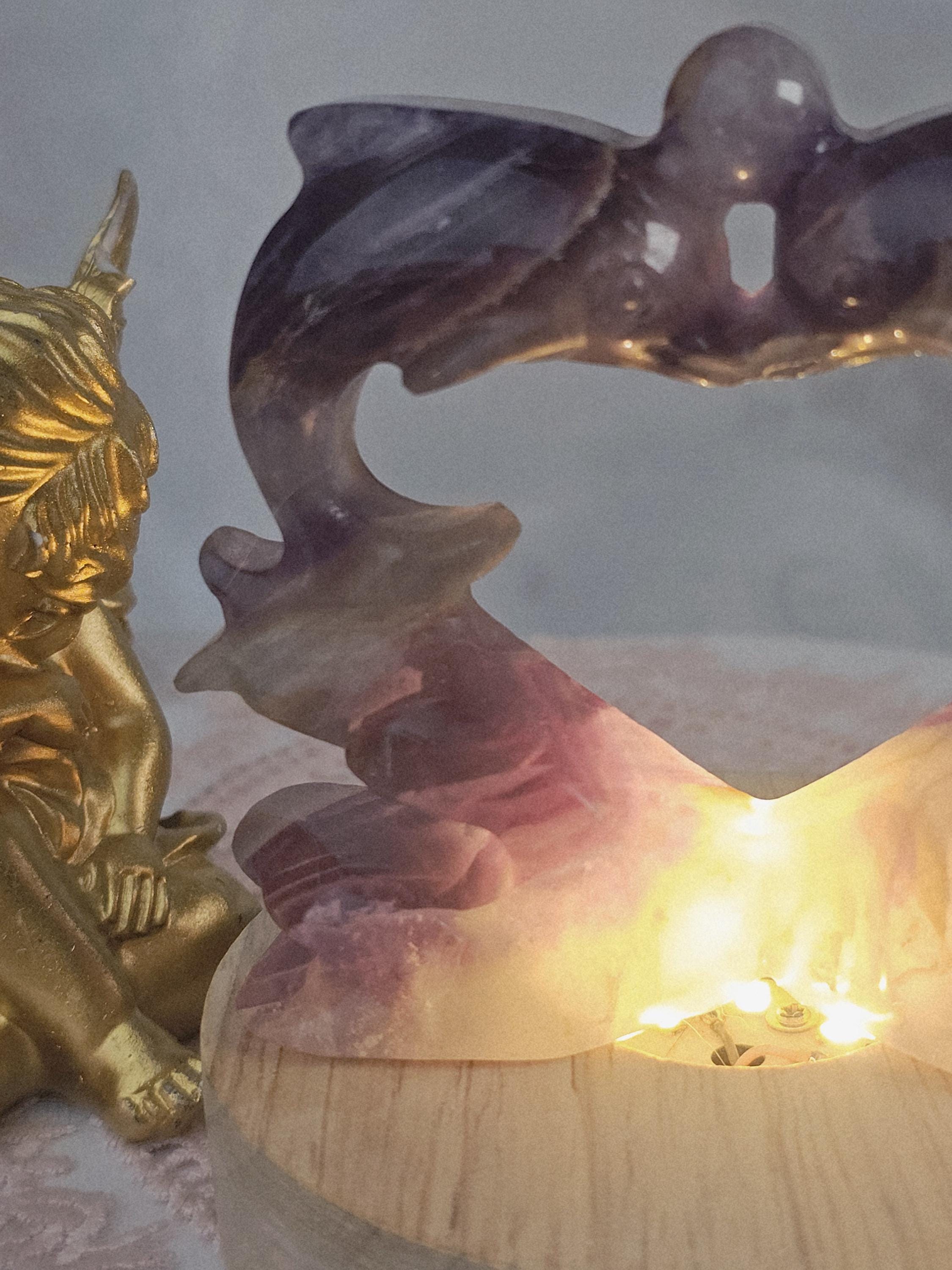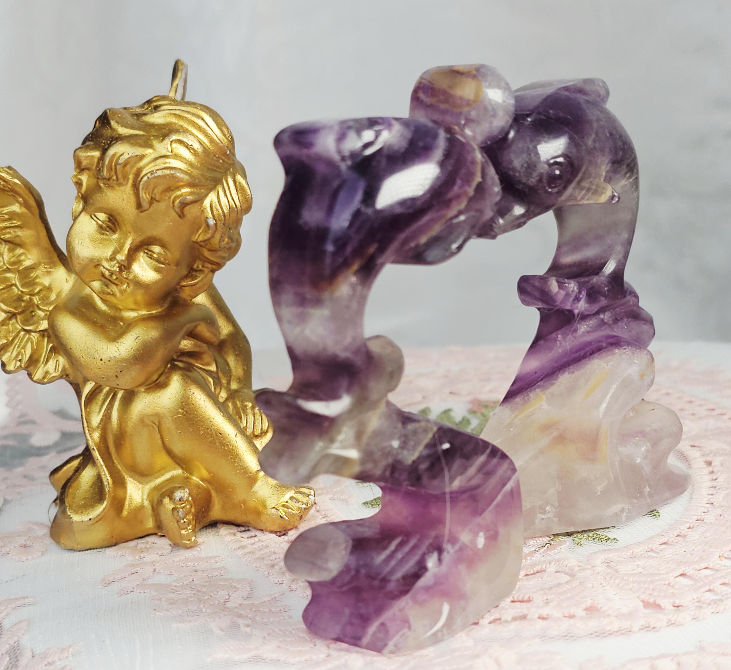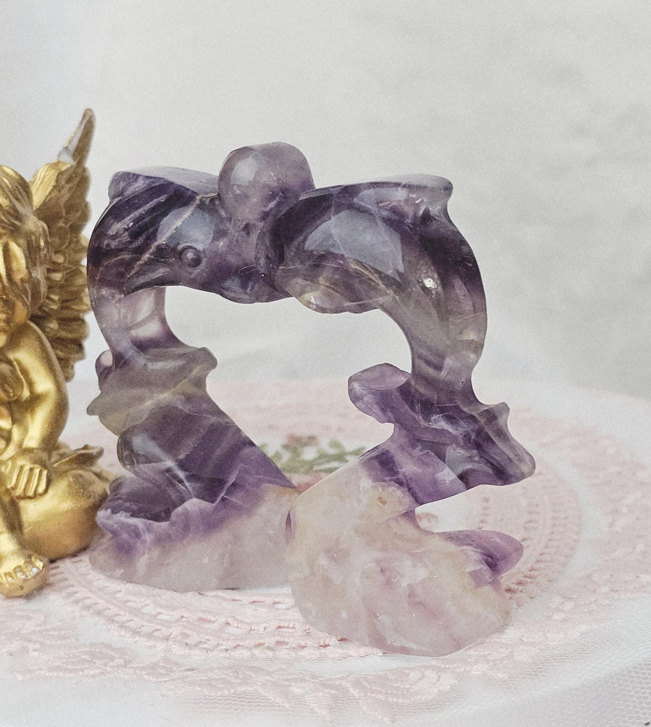 Fluorite Dolphins , Crystal Dolphins Handmade, Crystal, Dolphin Sculpture