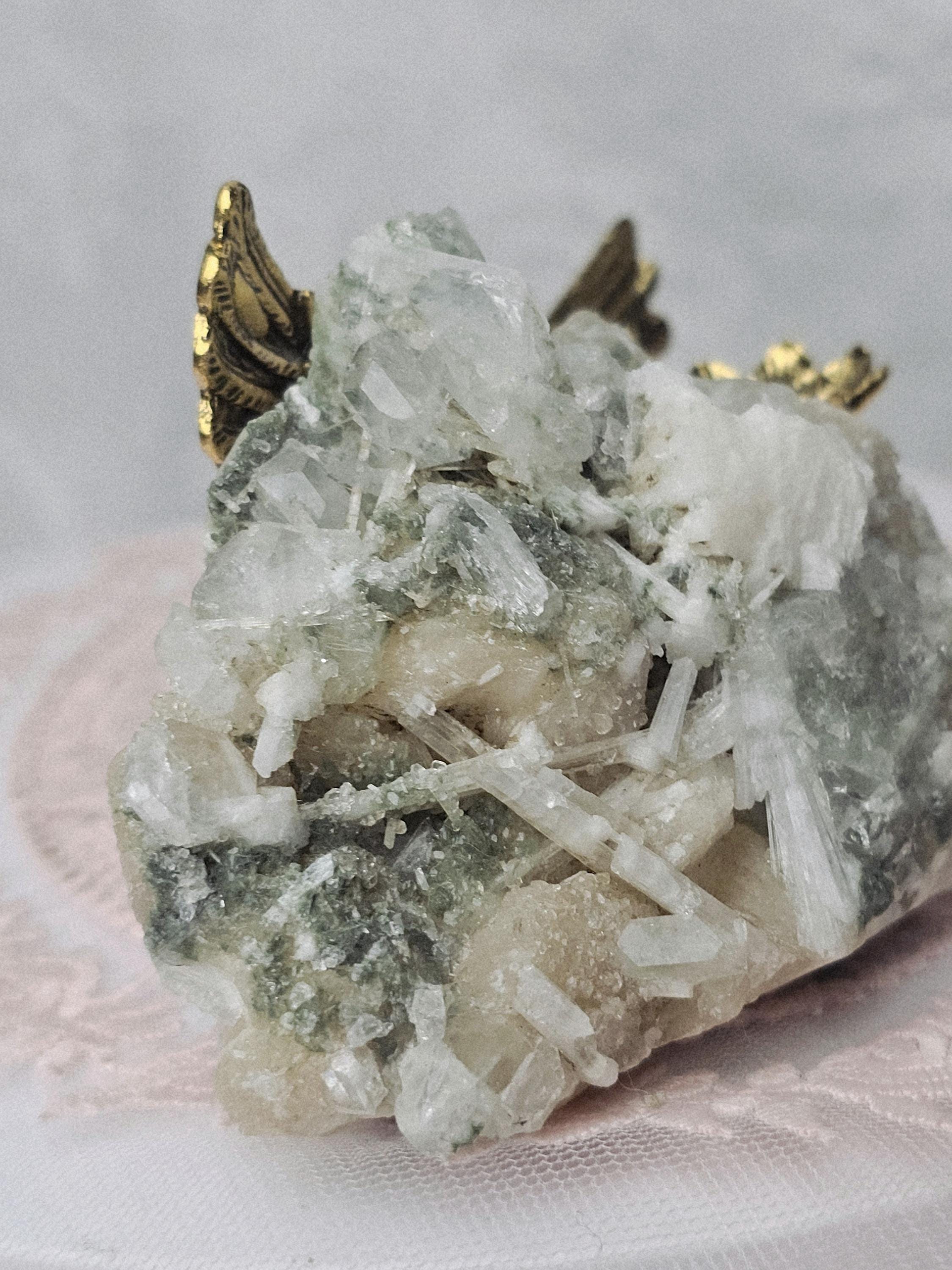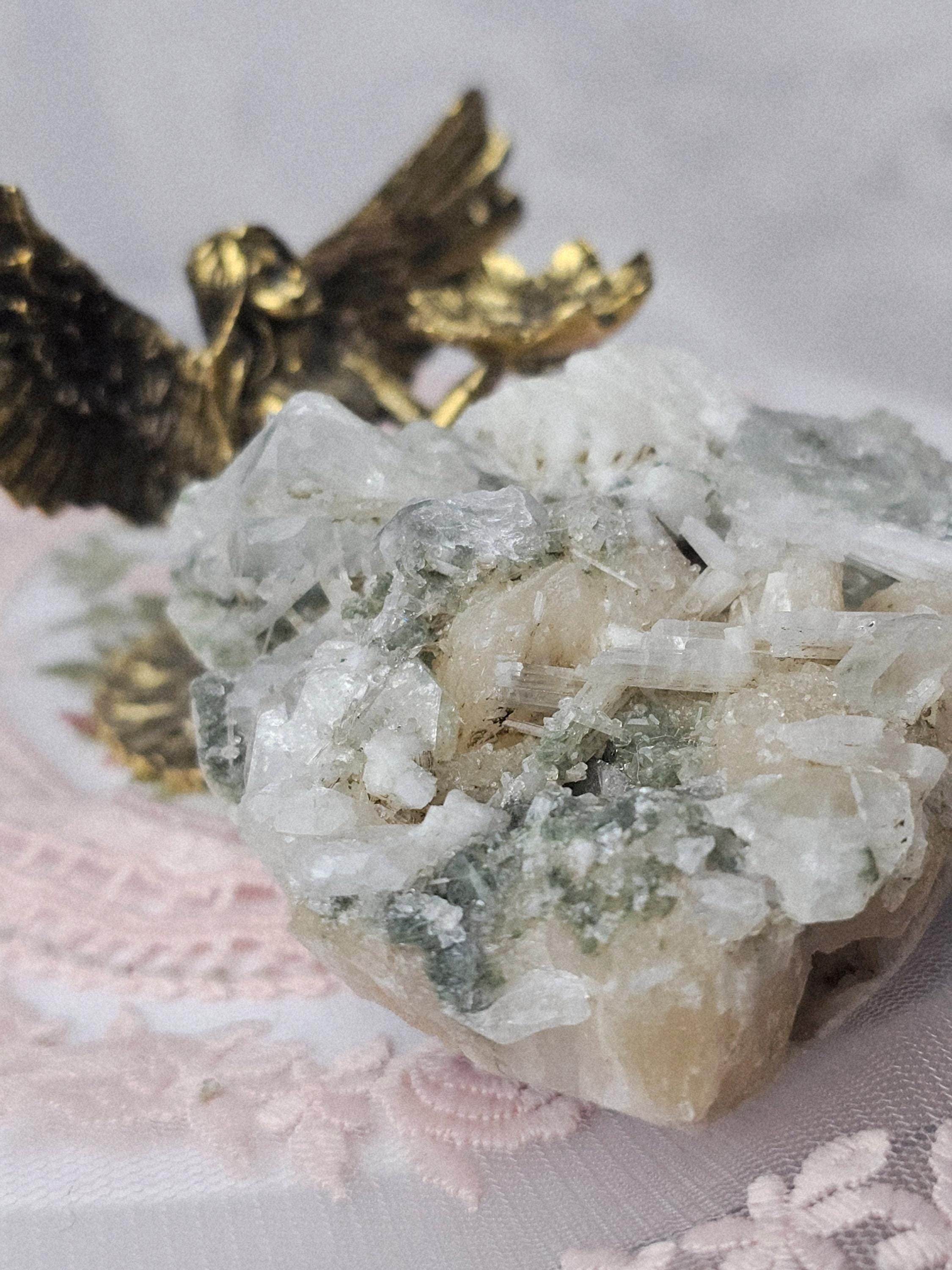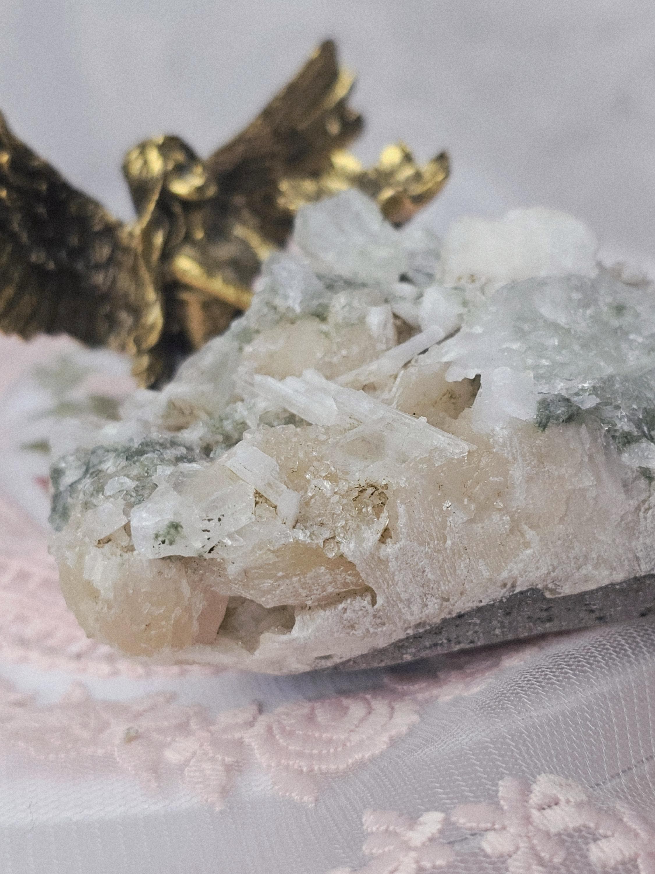 RARE Candy Apple Green Apophyllite with Scolecite and Stillbite from India , Apophyllite, Crystal, Crystal