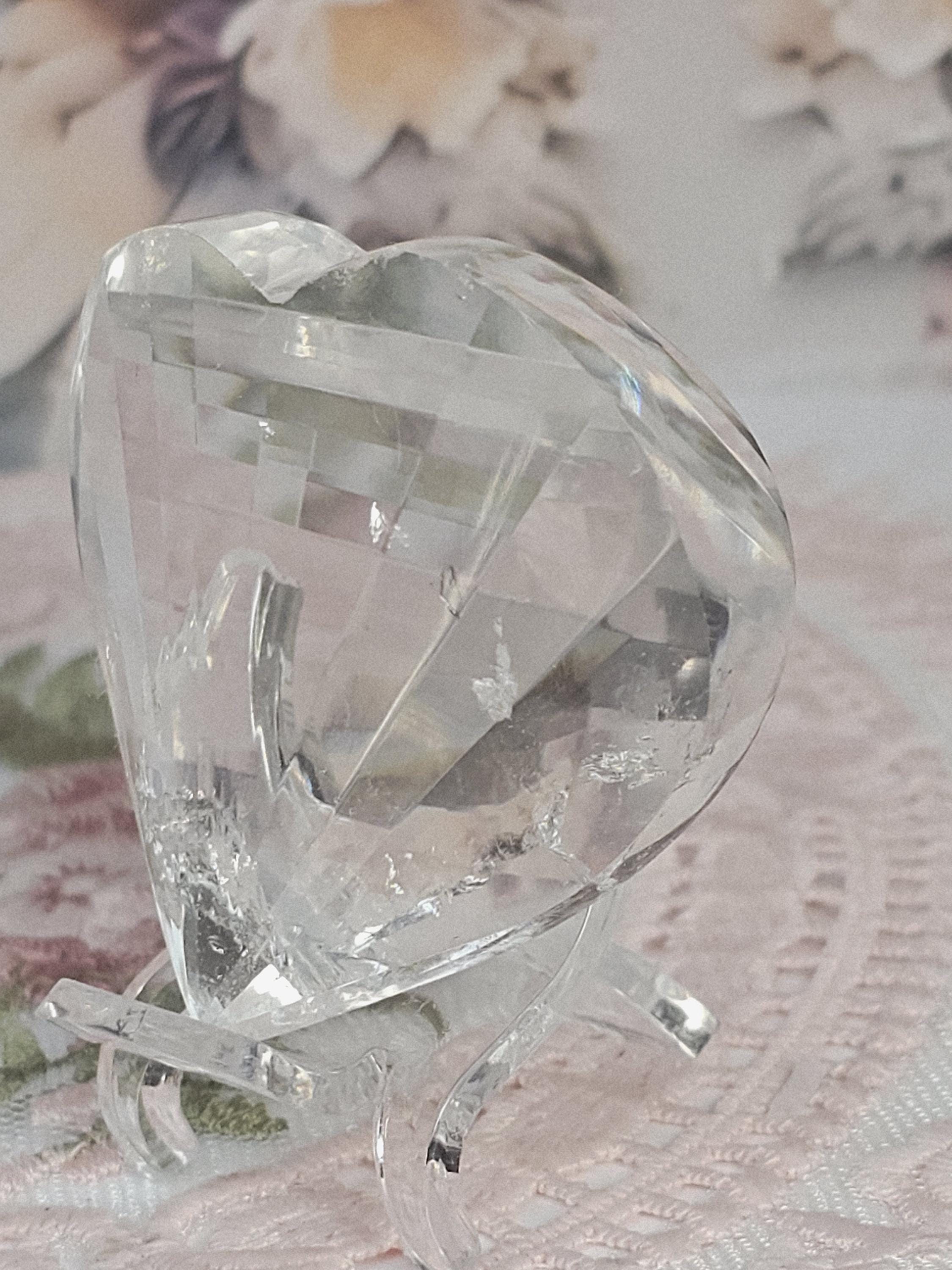 RARE Lemurian Faceted Heart, Crystal Heart , Sacred Geometry, Crystal Grid, Brazil