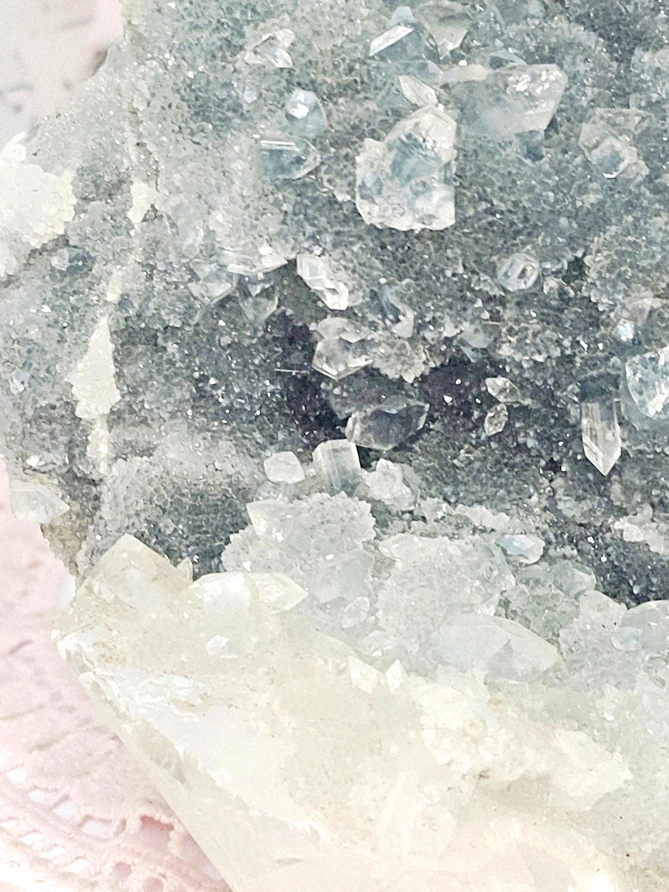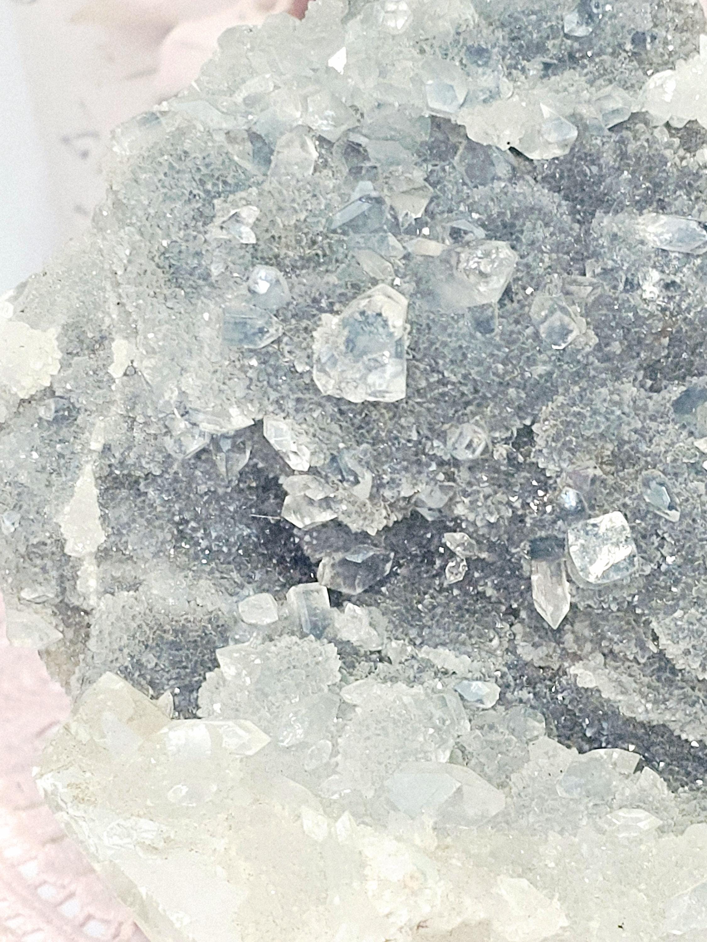 Blue Chalcedony woth Diamond Apophyllite and Calcite from India , Apophyllite, Crystal, Crystal