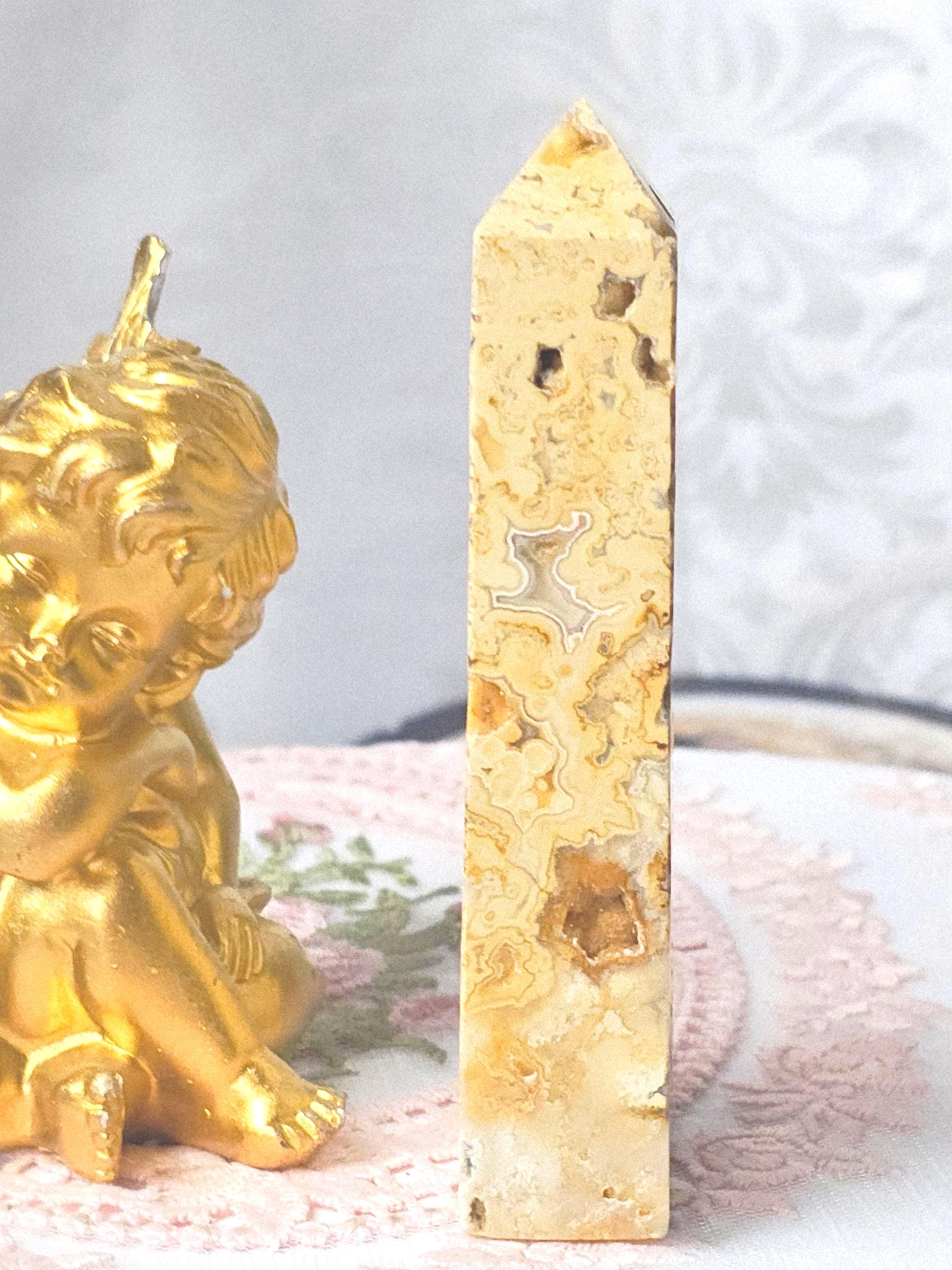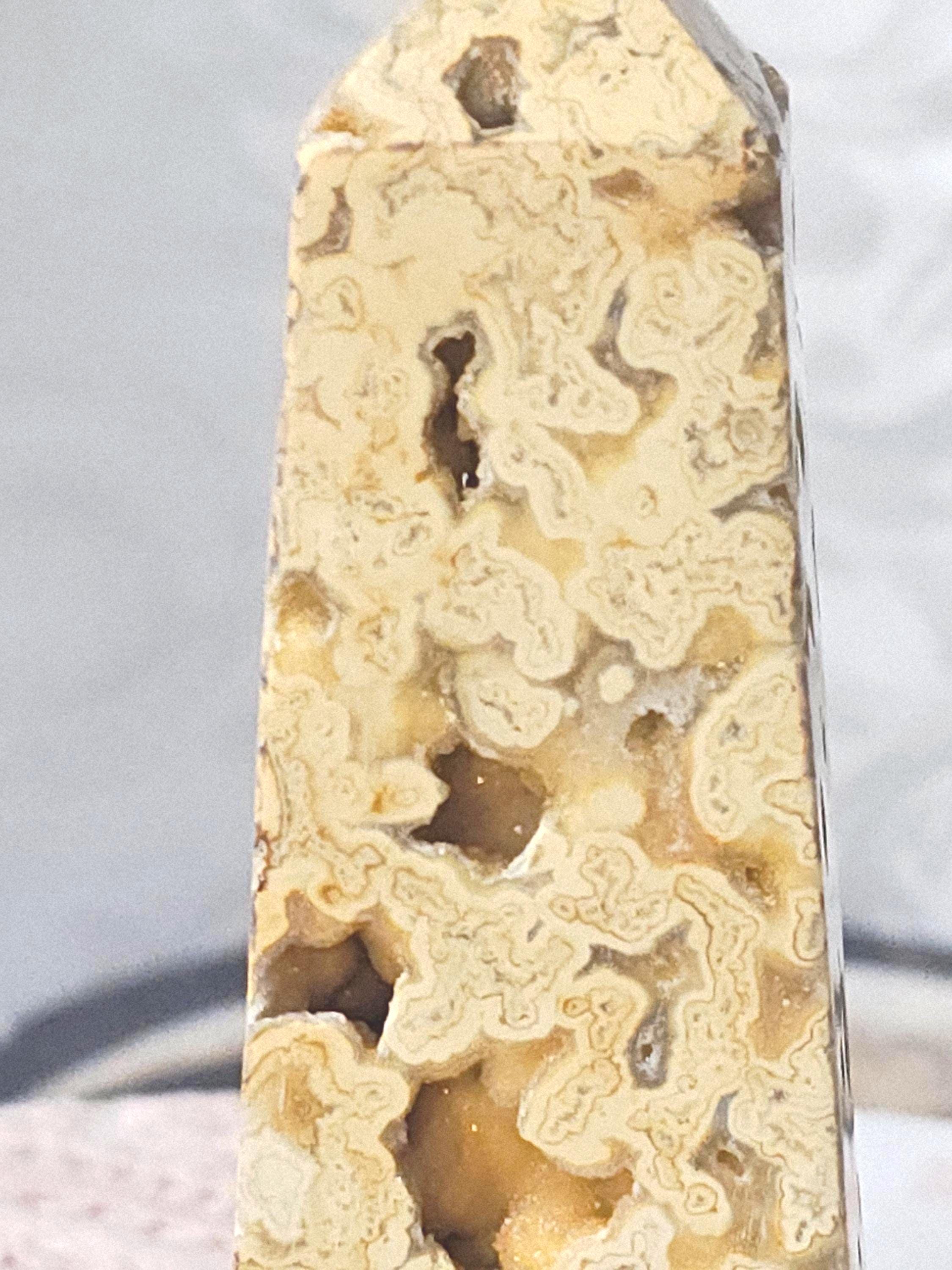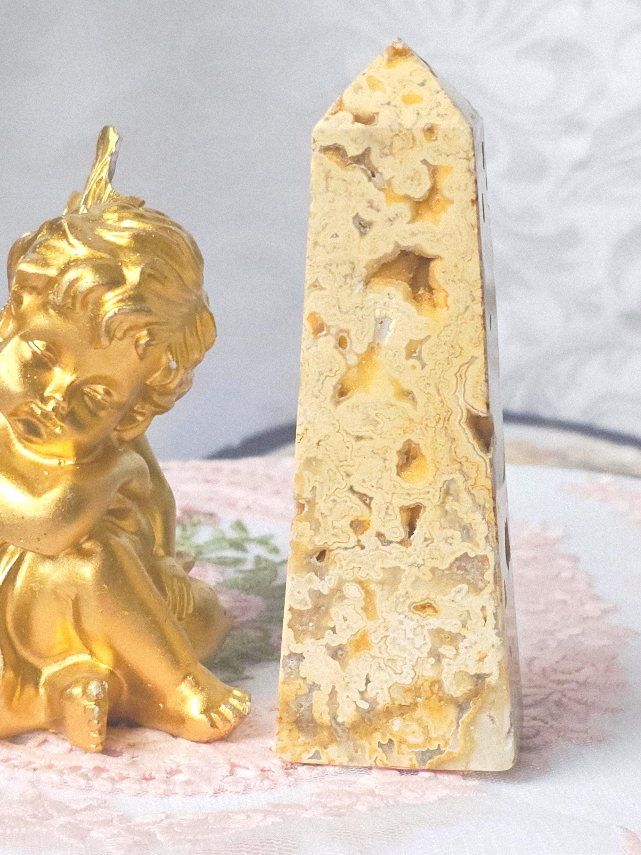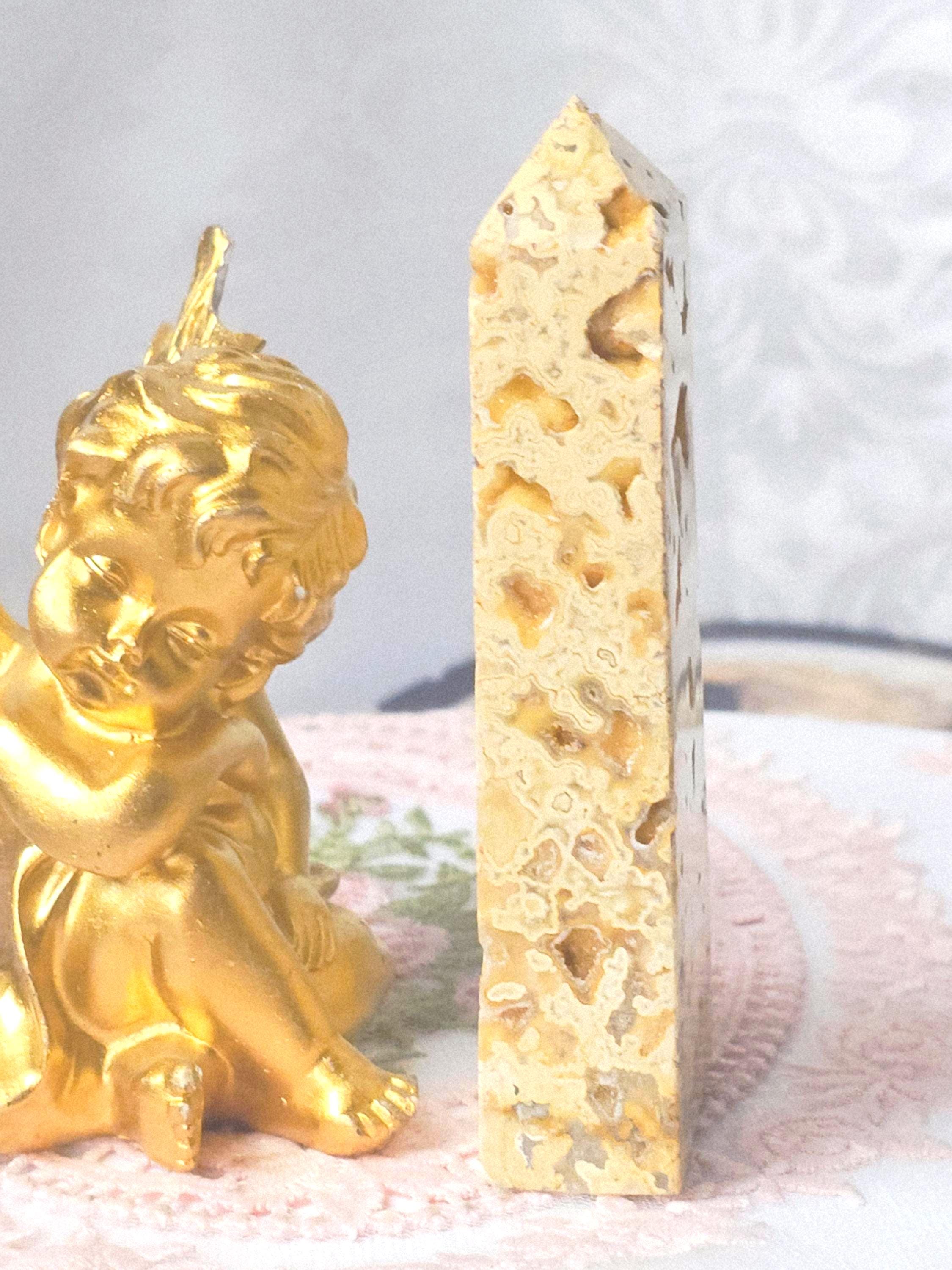 Yellow Crazy Lace Tower with beautiful, sugar druzy and wonderful stripes.