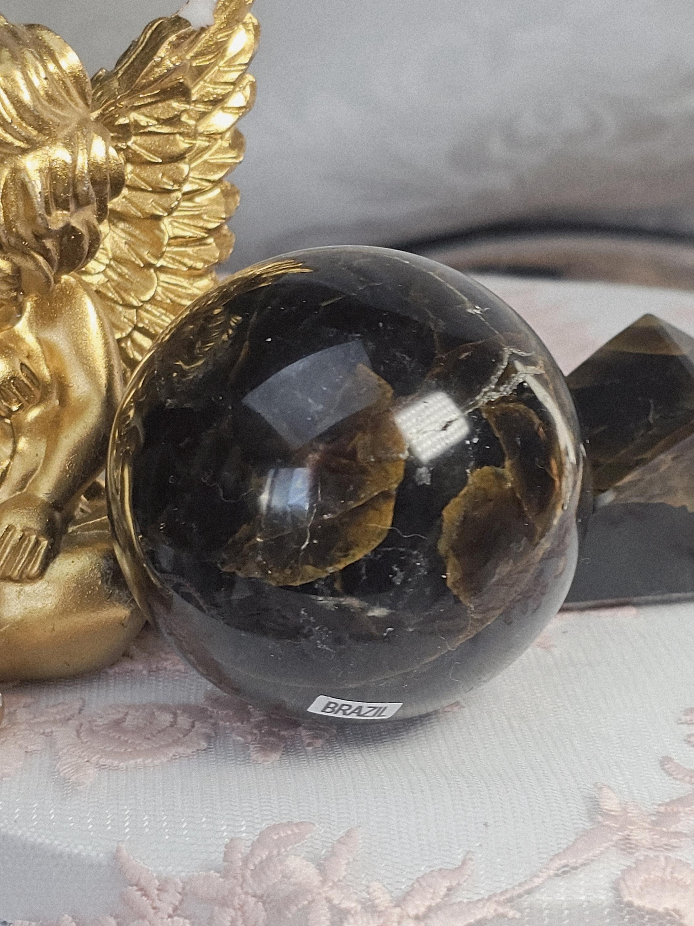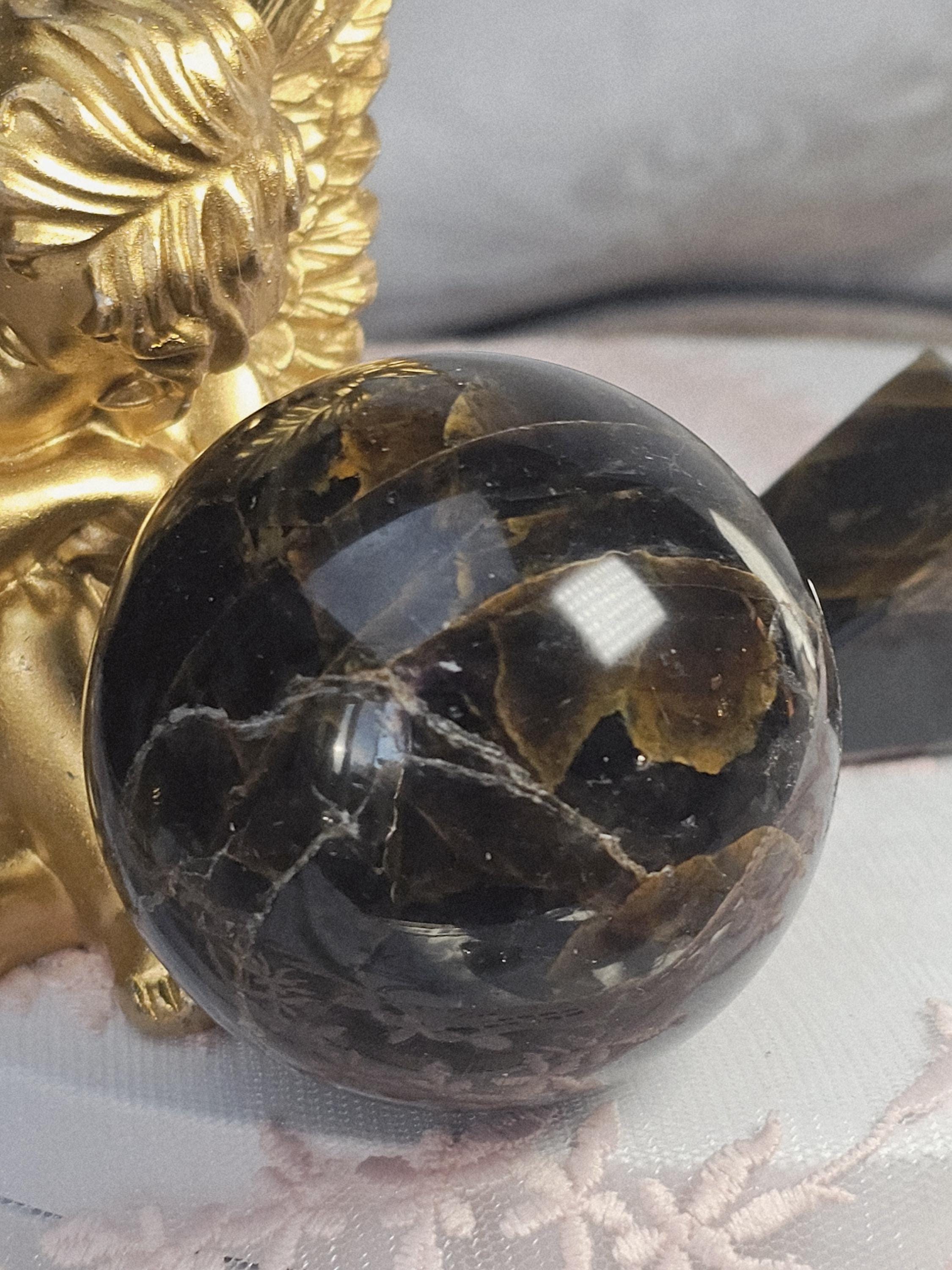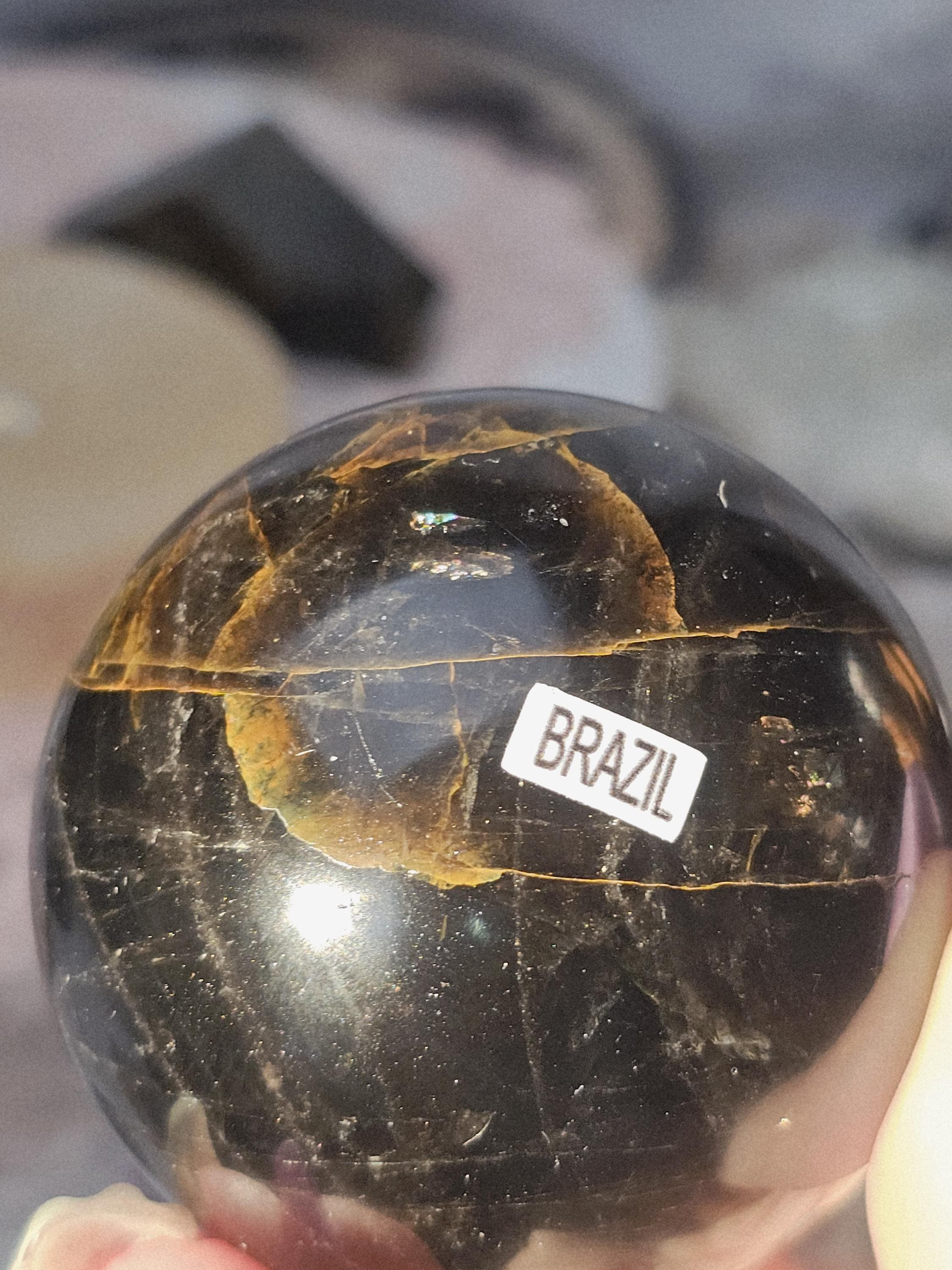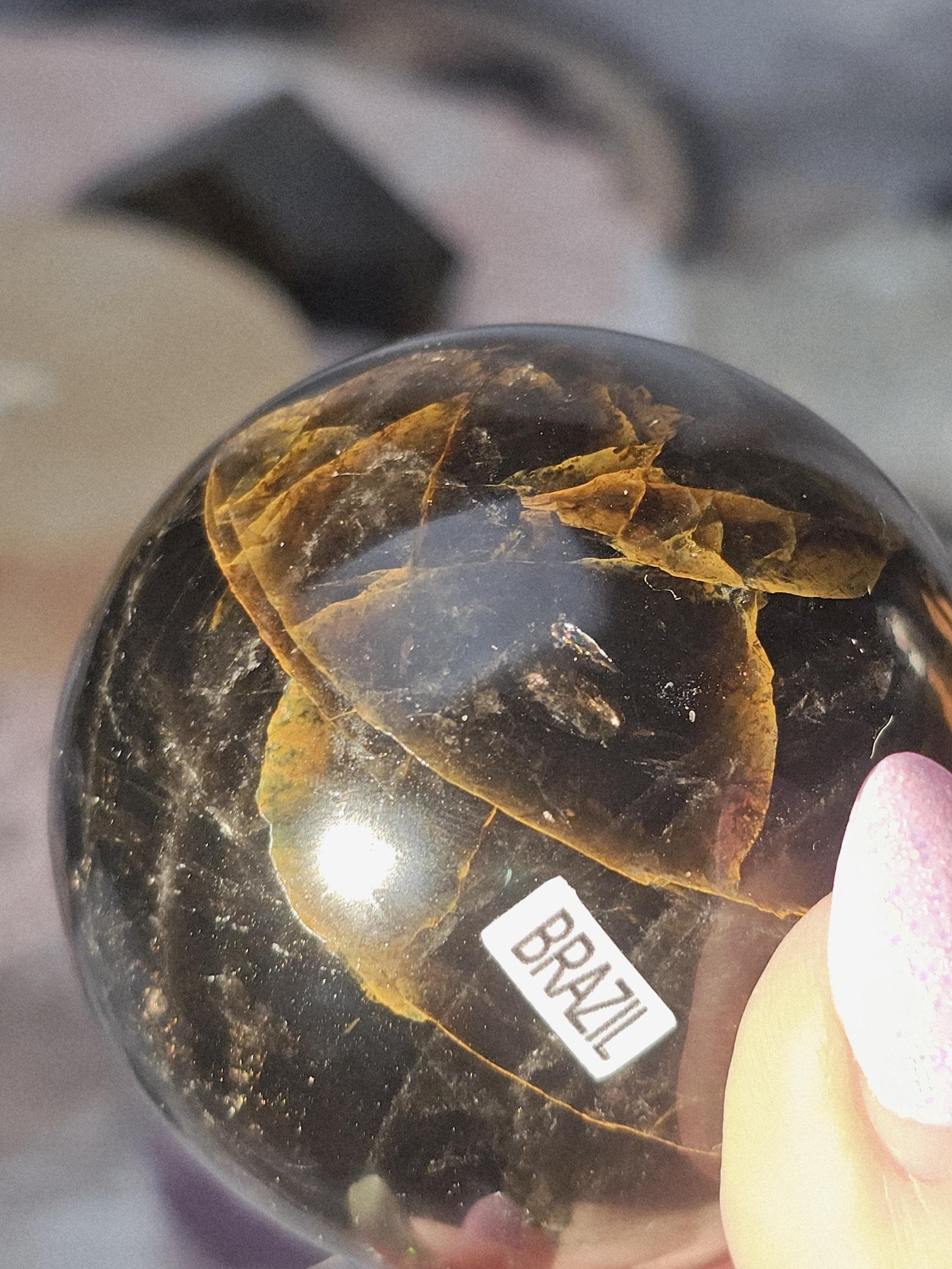 Smoky Quartz Golden Healer, Non Heat Treated Dark Smoky Quartz and Golden Healer Sphere, Crystal Ball, Crystal Sphere