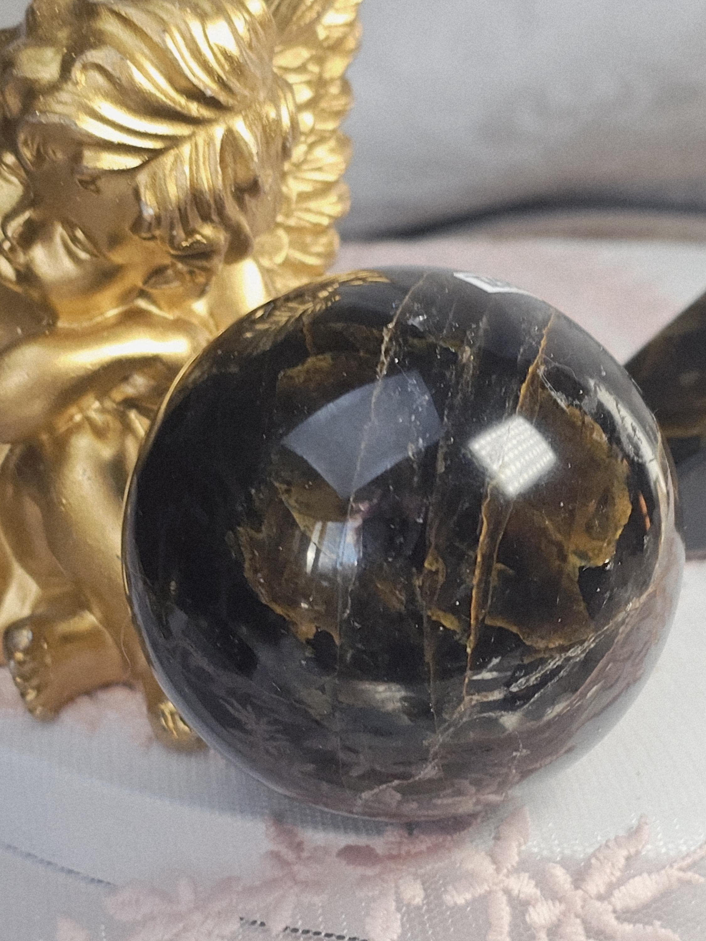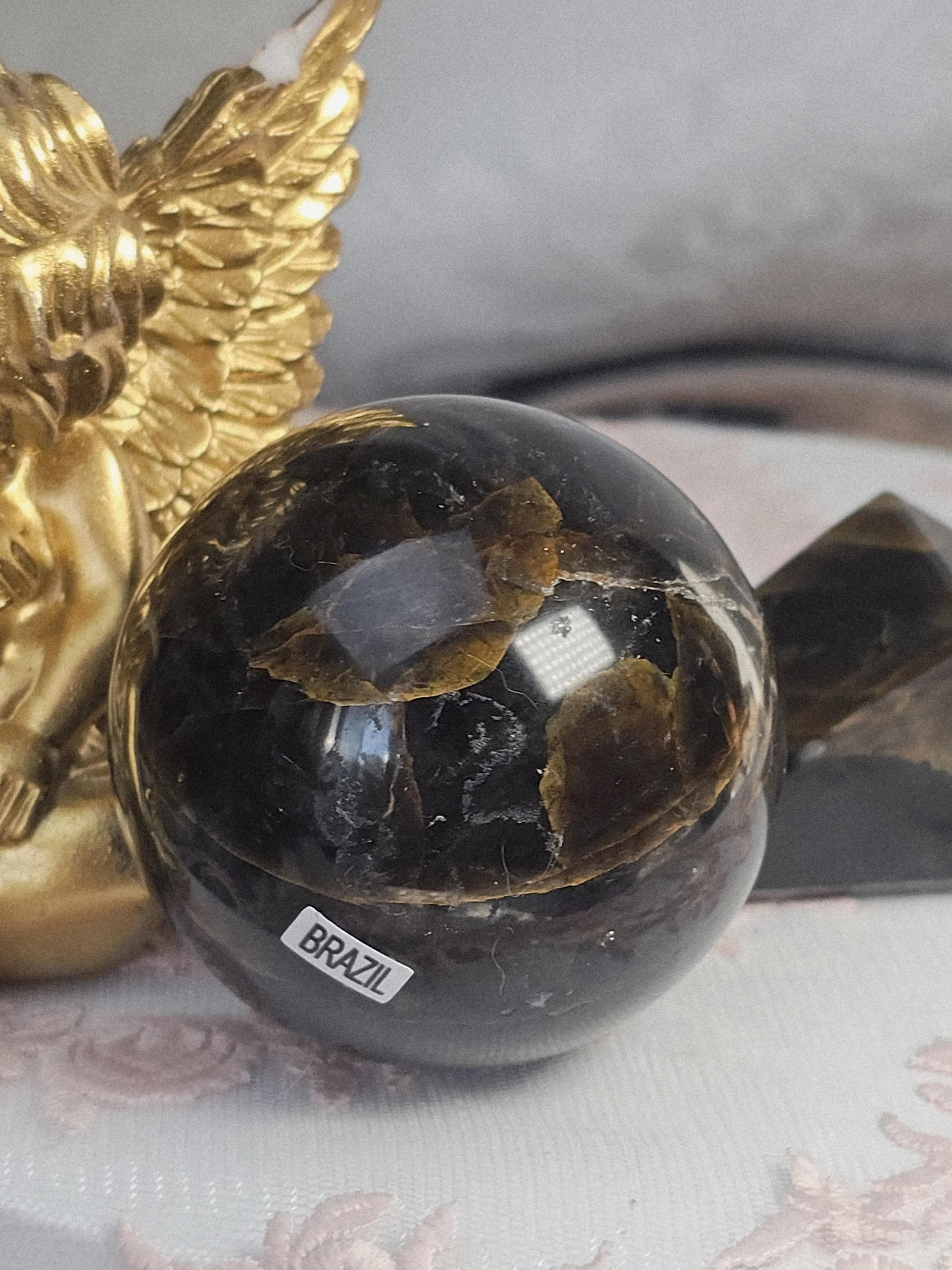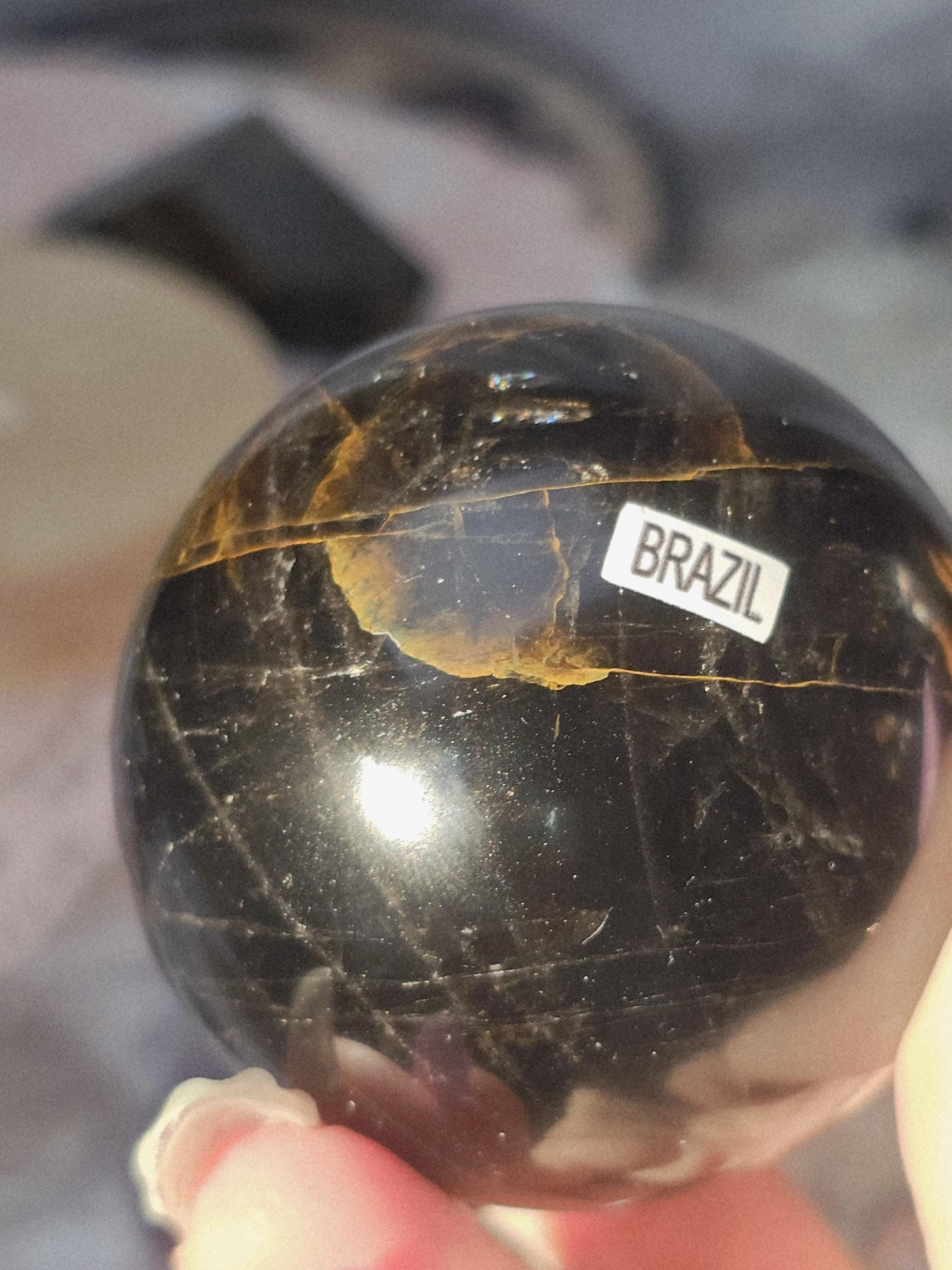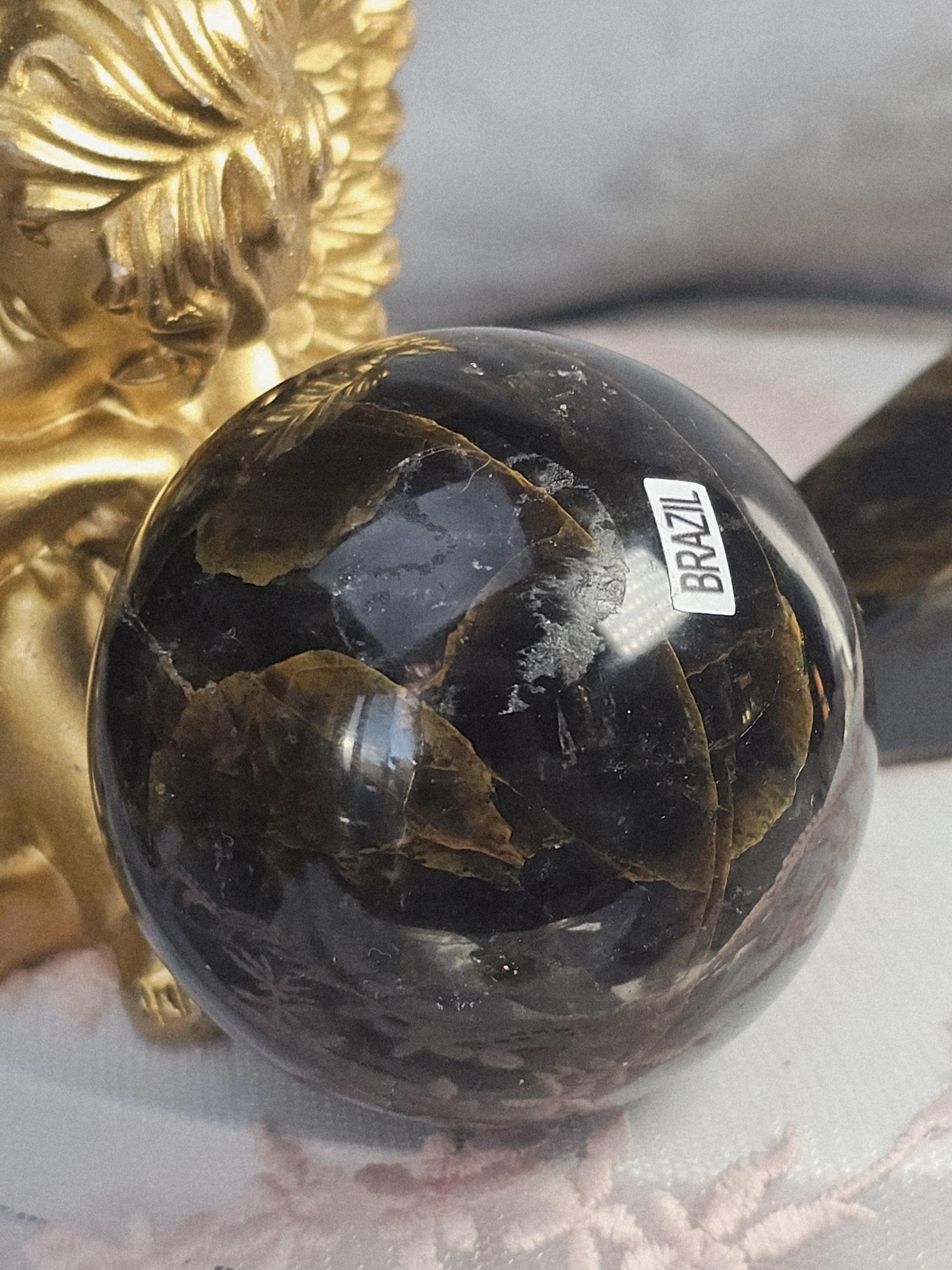 Smoky Quartz Golden Healer, Non Heat Treated Dark Smoky Quartz and Golden Healer Sphere, Crystal Ball, Crystal Sphere