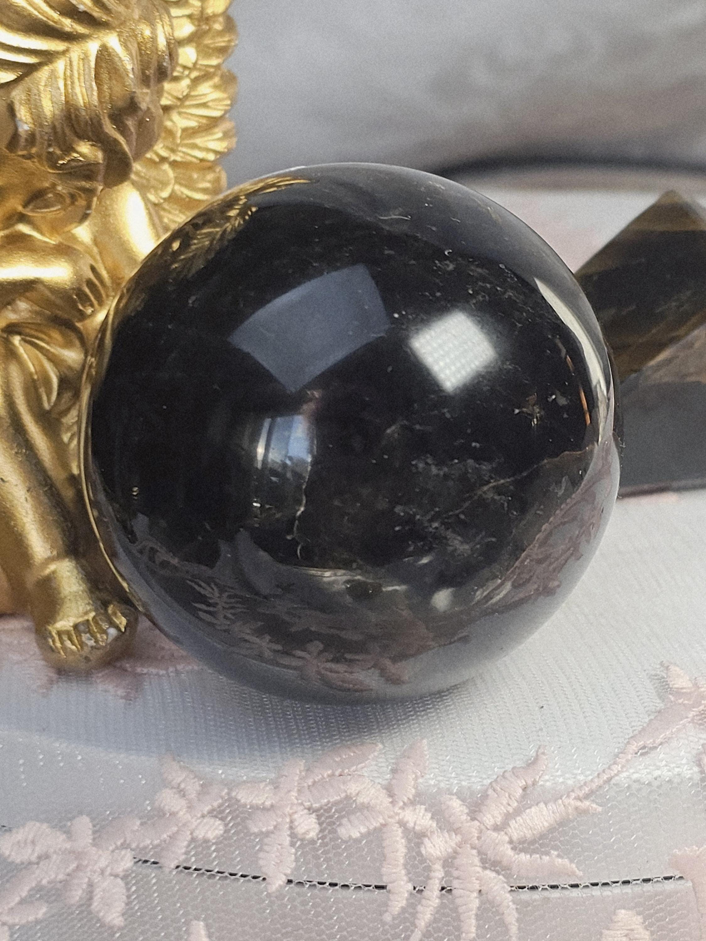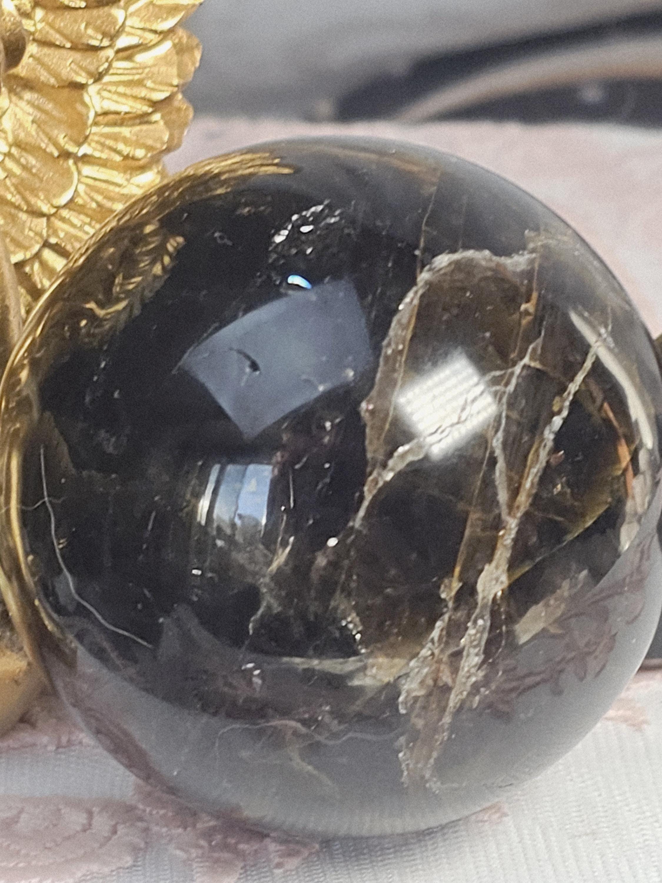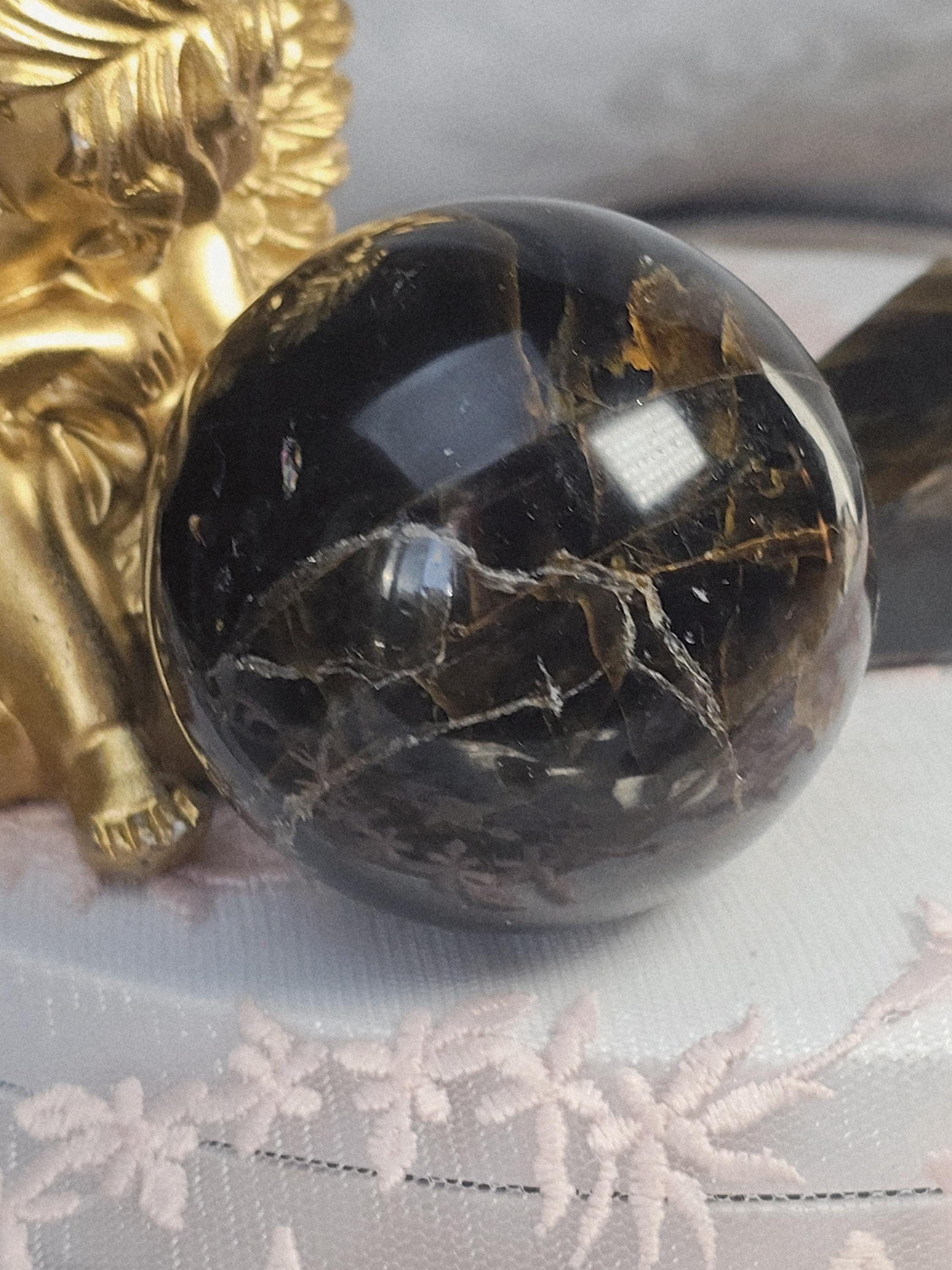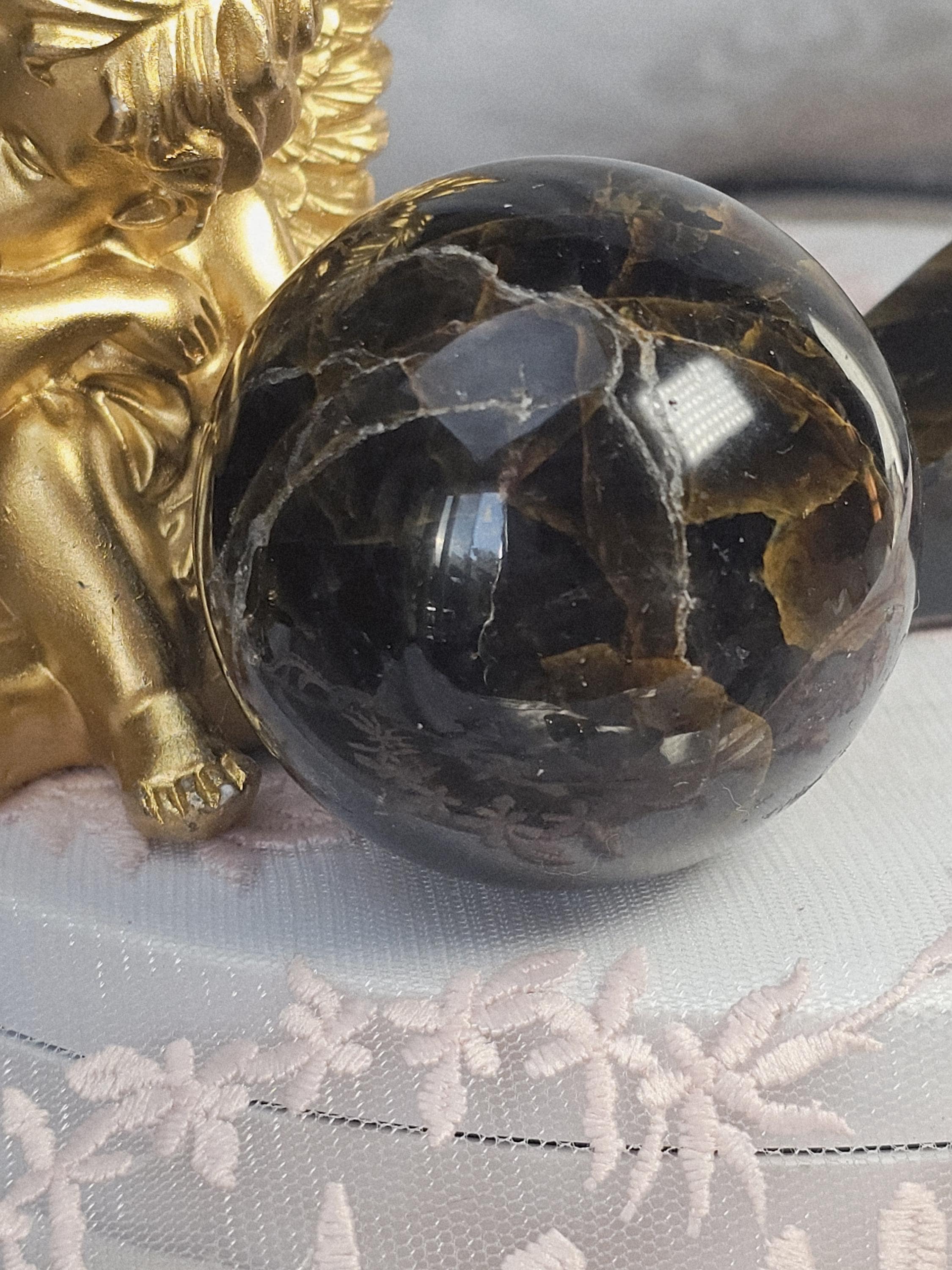 Smoky Quartz Golden Healer, Non Heat Treated Dark Smoky Quartz and Golden Healer Sphere, Crystal Ball, Crystal Sphere