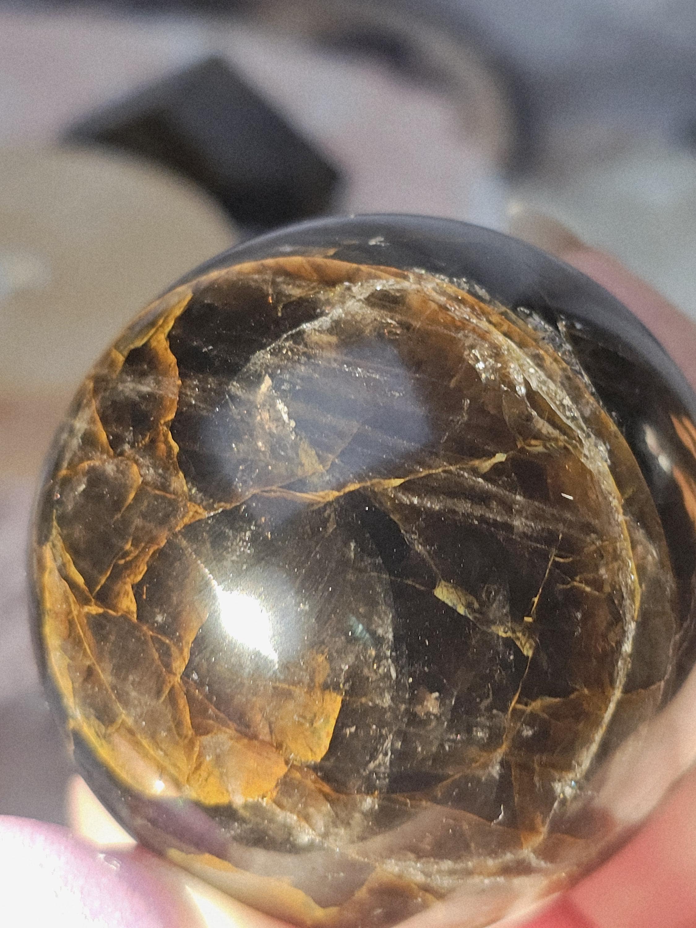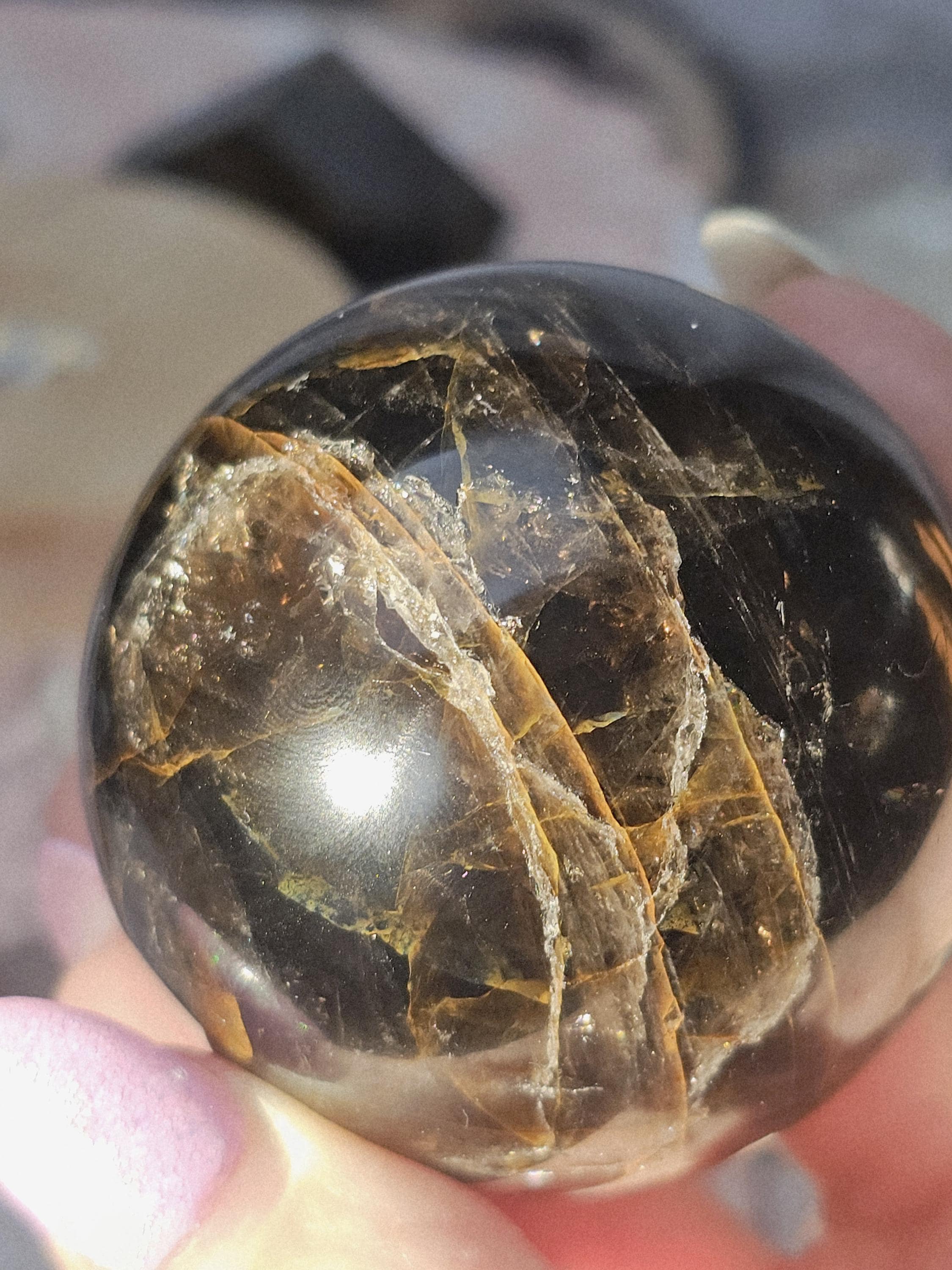 Natural Non Heated Smoky Golden Healer Sphere with rainbows. It has an incredible healing energy.